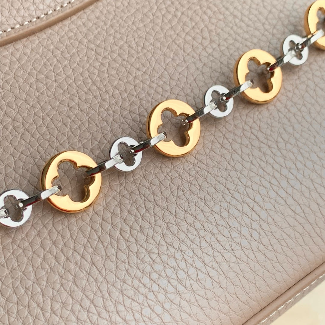 The bag features a chic jewelry-style double-plated chain adorned with elegant Monogram flowers, while the distinct rounded LV letters and polished hardware enhance its sophisticated allure. With versatile carrying options—cross-body, hand-held, or shoulder strap—this mini bag effortlessly elevates any outfit.