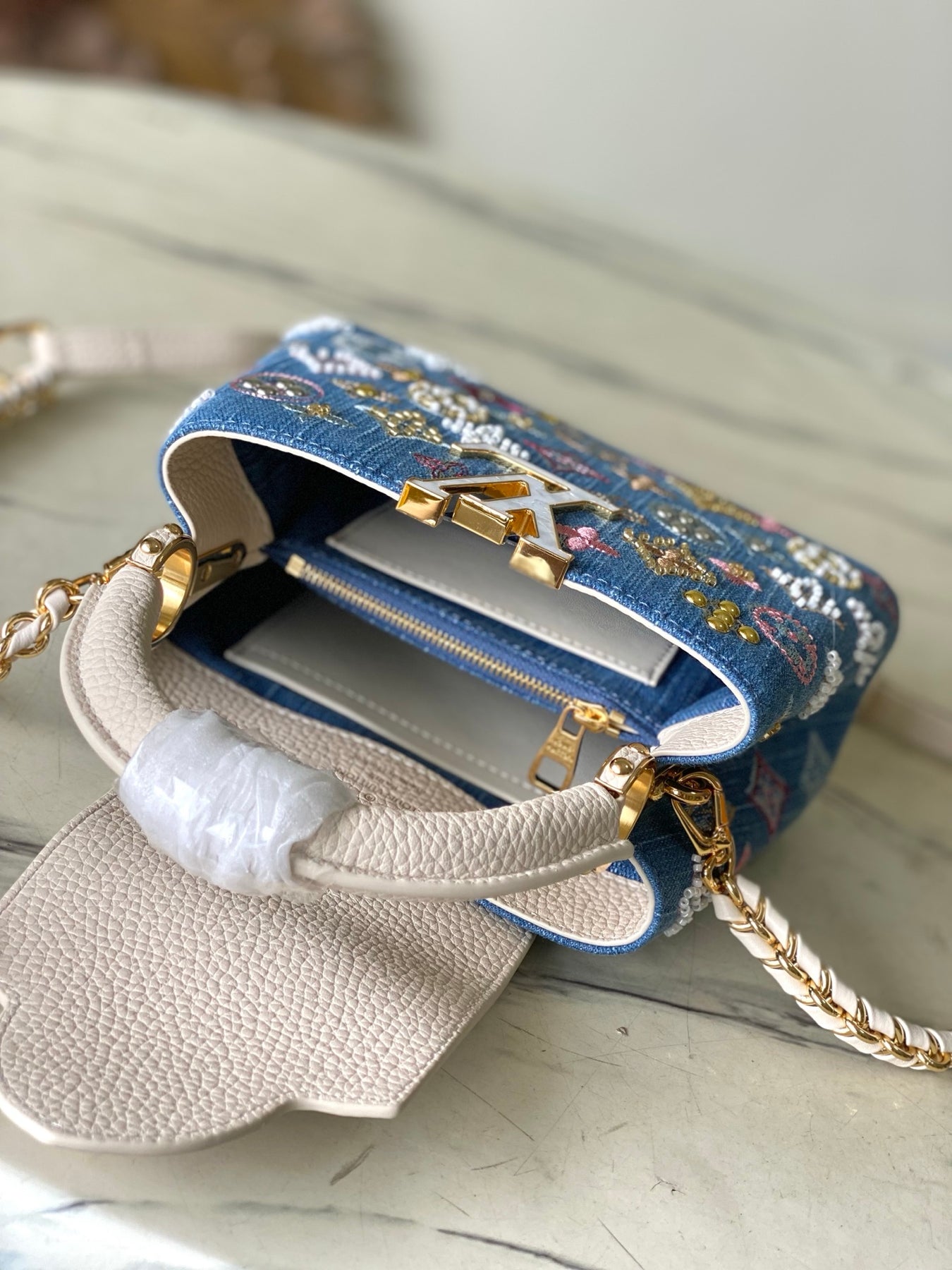 LV Capucines Mini Handbag - White Denim Leather