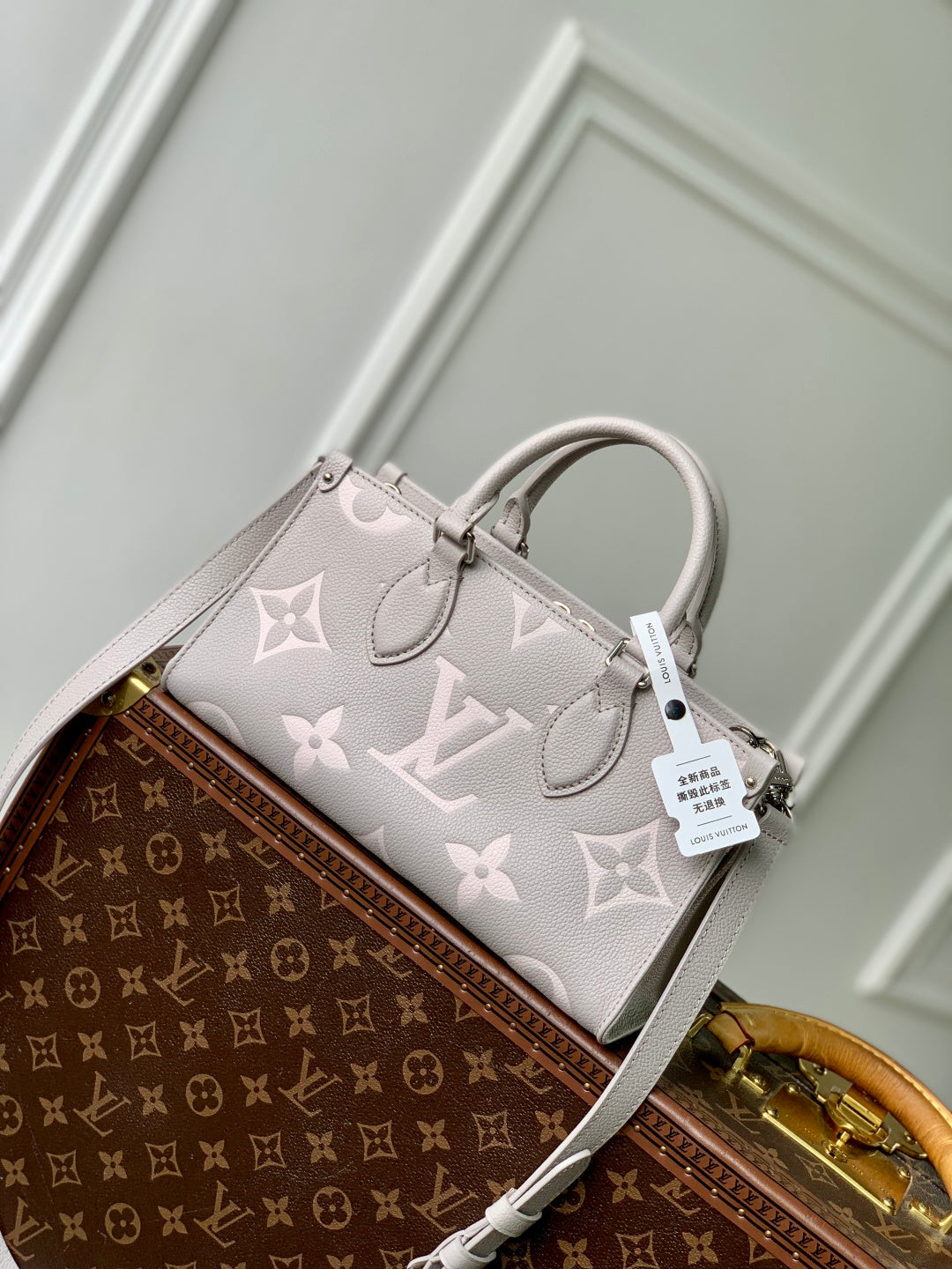 Introducing the LV Milky Way OnTheGo East West Bag in a stunning Taro Purple, crafted from luxurious Monogram Empreinte leather and featuring eye-catching glossy hardware. This stylish bag includes a detachable woven chain for versatile carrying options. Its thoughtfully designed compartments—both inner and outer—provide organized storage for your daily essentials, all while maintaining a sleek, compact profile. With dimensions of 13 x 10 x 25 cm (height x width x length), this bag effortlessly combines function with elegance. Elevate your accessory game with this must-have piece from Louis Vuitton.