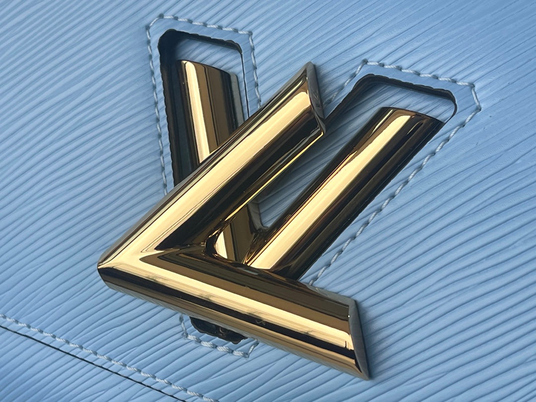 Elevate your accessory collection with the LV Twist Medium Handbag in Sky Blue. This stunning piece features a double chain adorned with handcrafted enamel Monogram flowers, exuding a distinct feminine charm. Versatile in style, it can be worn as a decorative element or adapted to suit your carrying preferences. The iconic LV Twist lock beautifully merges traditional elegance with modern flair. Dimensions: 23 x 17 x 9.5 cm. Perfect for any occasion.