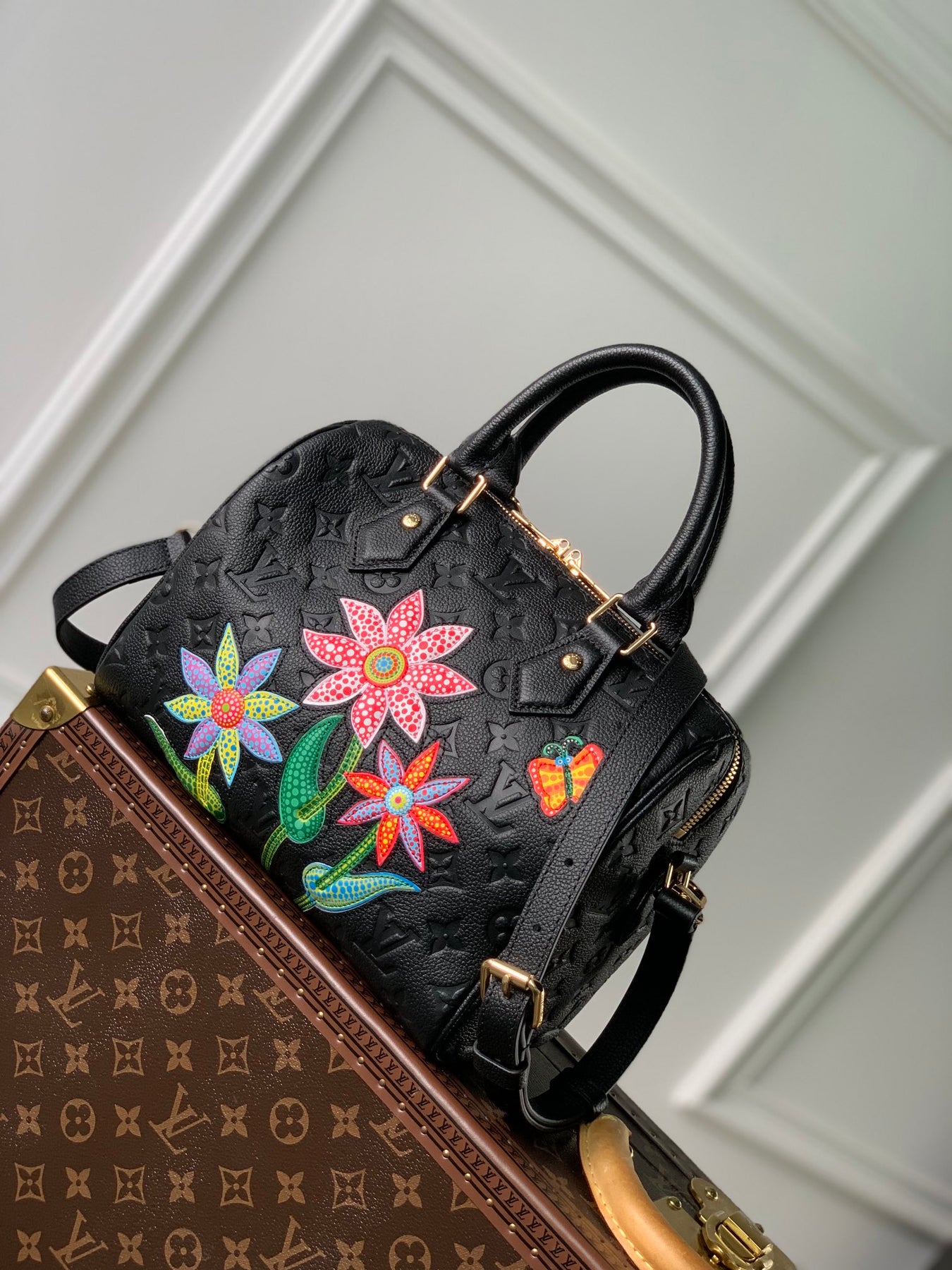 LV x Yayoi Kusama Speedy Bandoulière 25 Handbag - Black Flower Leather