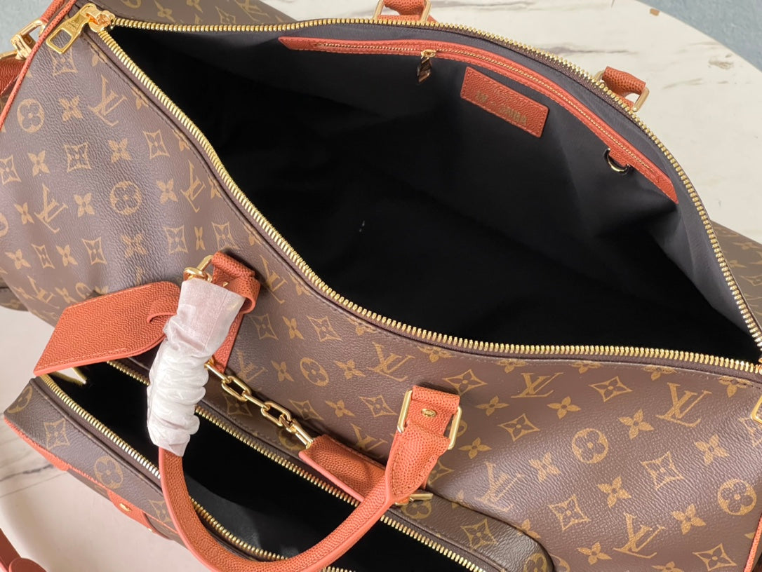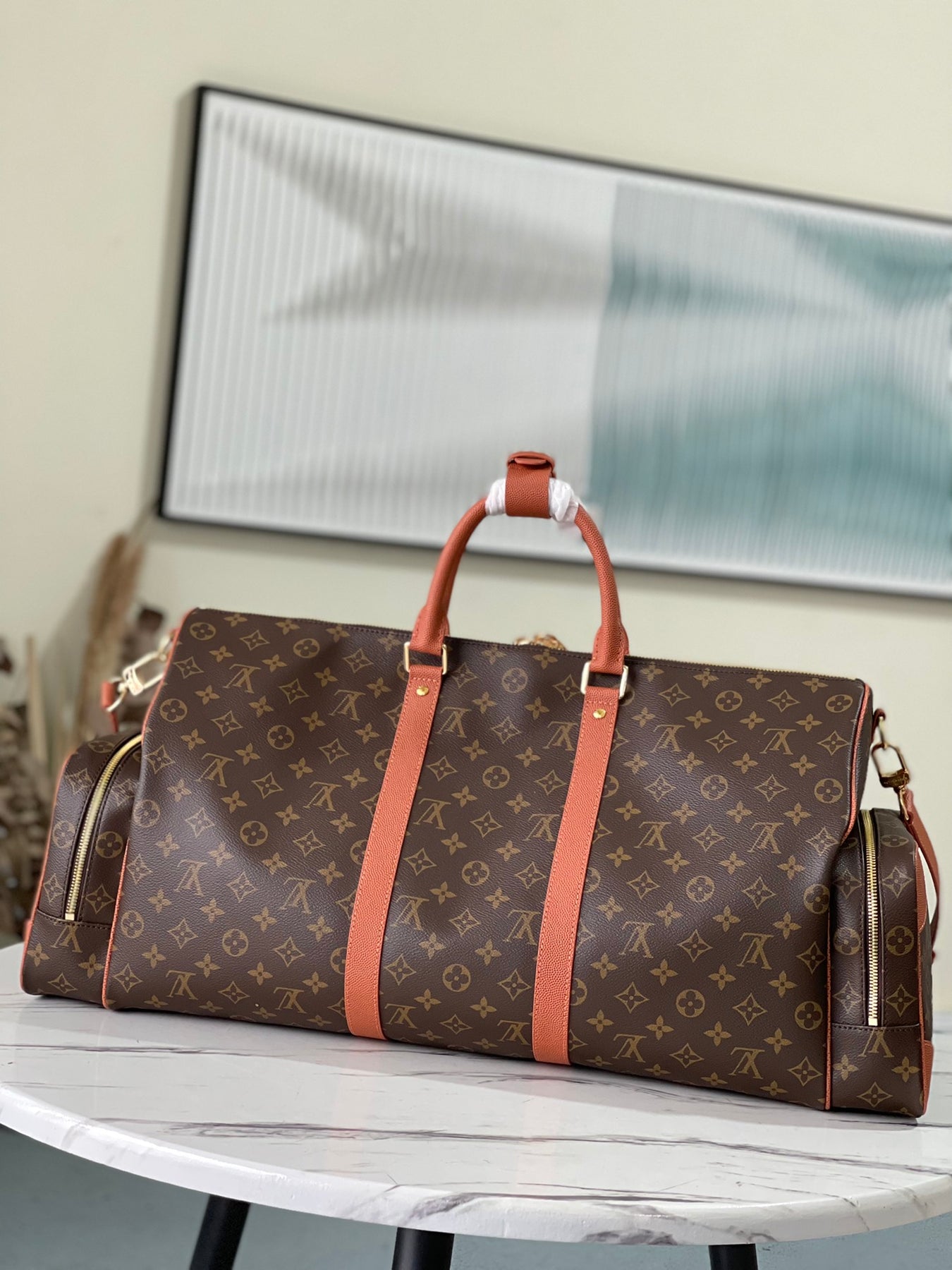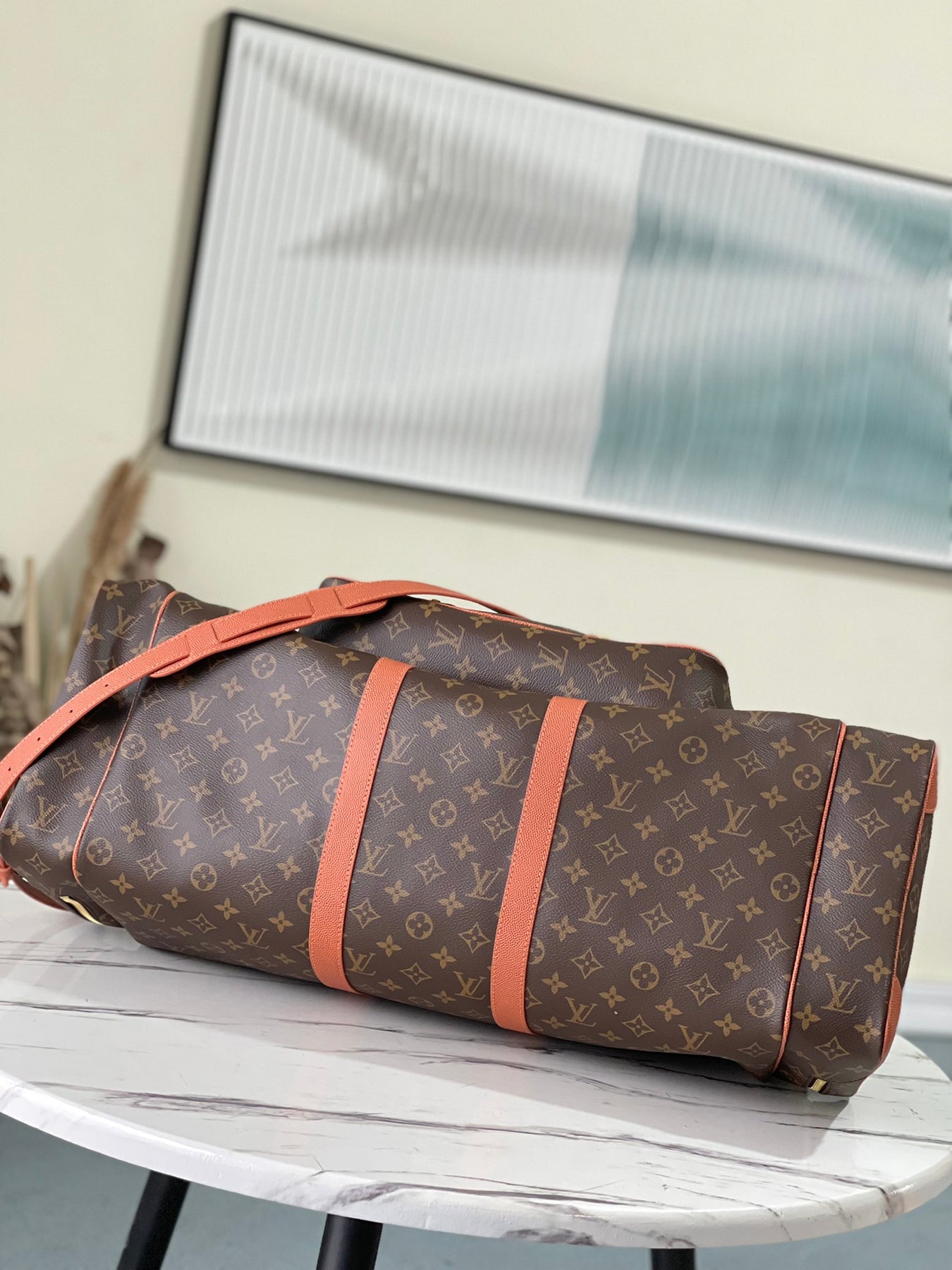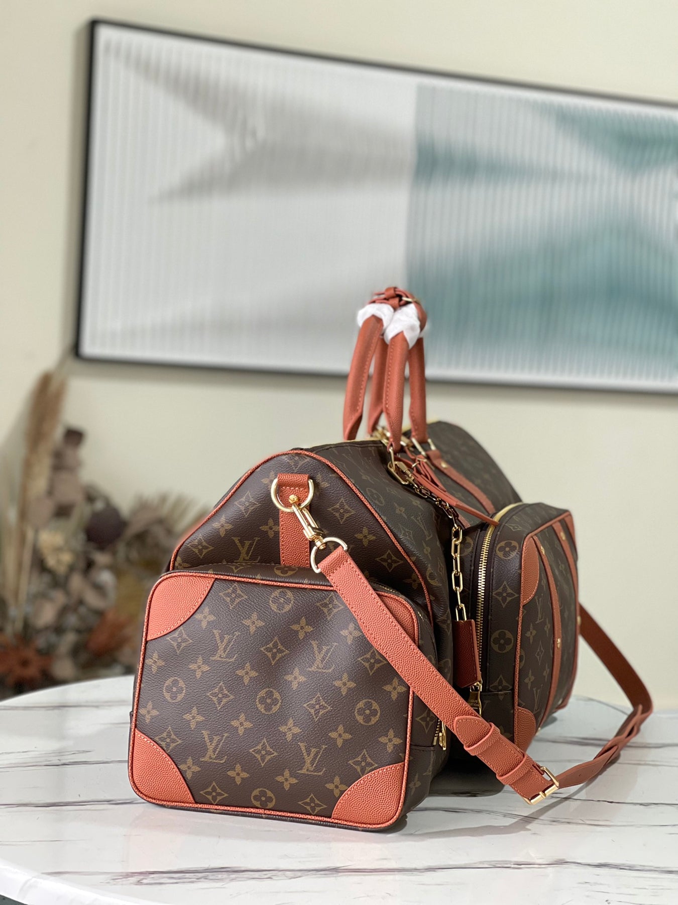 Introducing the M45794 Keepall Trio Pocket Travel Bag from the exclusive xNBA SEASON 2 capsule collection. Crafted from premium Monogram canvas, this stylish travel bag features embossed basketball texture leather trim for a sporty look. The zippered outer compartment and spacious main compartment make it perfect for organizing and storing your sports gear. Thoughtfully designed with leather corners and rivets, it pays homage to the brand’s iconic hard-case design. Dimensions: 65 x 35 x 29 cm. Elevate your travel experience with this versatile and fashionable accessory.