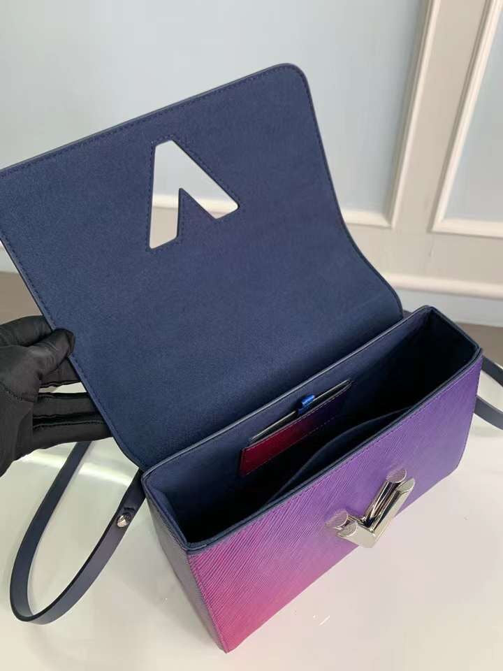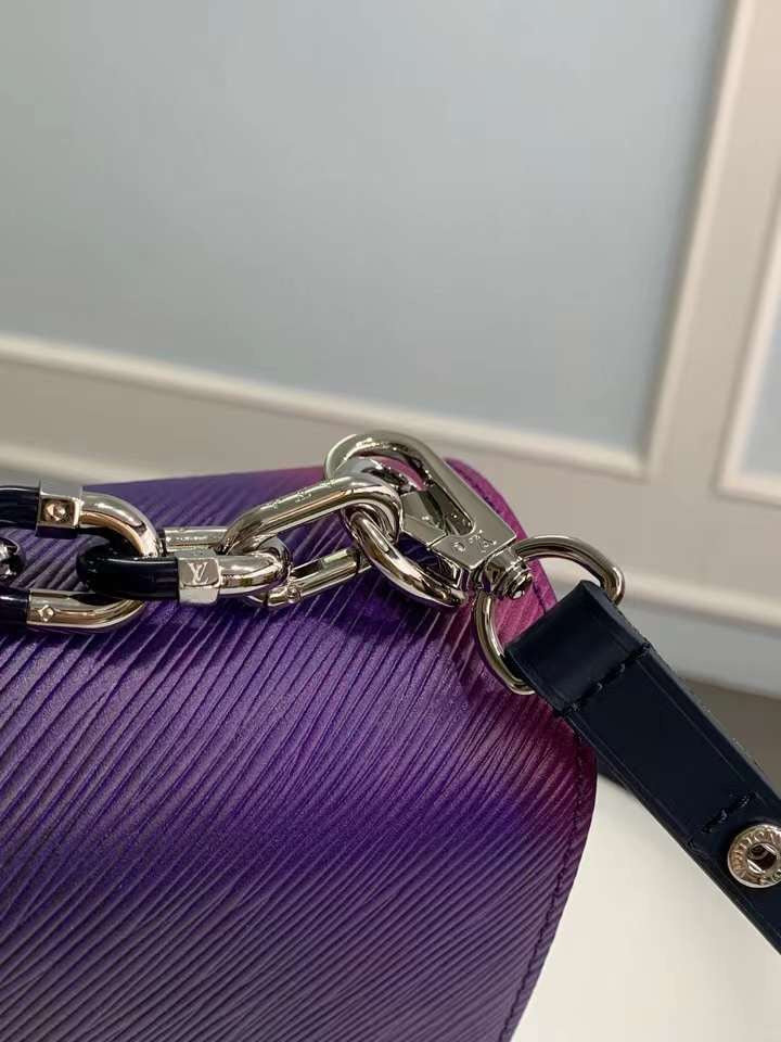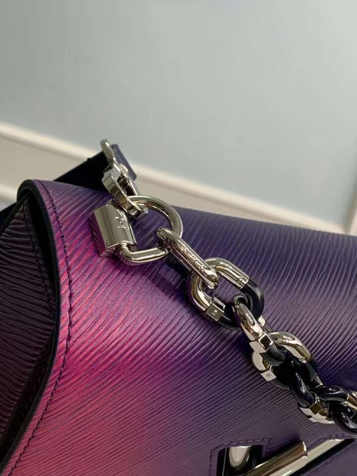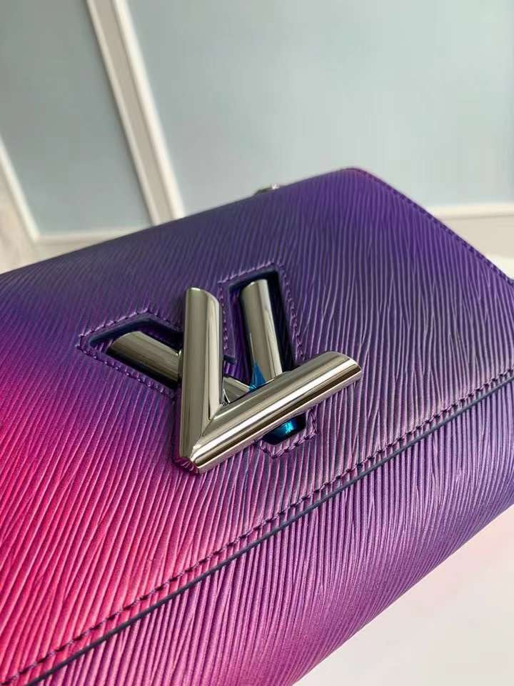 Elevate your accessory collection with the M59896 Purple Twist Medium Handbag, crafted from our signature Epi leather for unparalleled durability and style. This sophisticated handbag showcases a striking sculptural LV Twist lock, delivering a stunning metallic shine that enhances its visual appeal. The handbag features a robust metal chain and comes with a detachable, adjustable leather shoulder strap for versatile carrying options. Perfectly sized at 23 x 17 x 9.5 cm, this bag seamlessly combines elegance with functionality, making it a must-have for any fashion-forward individual.