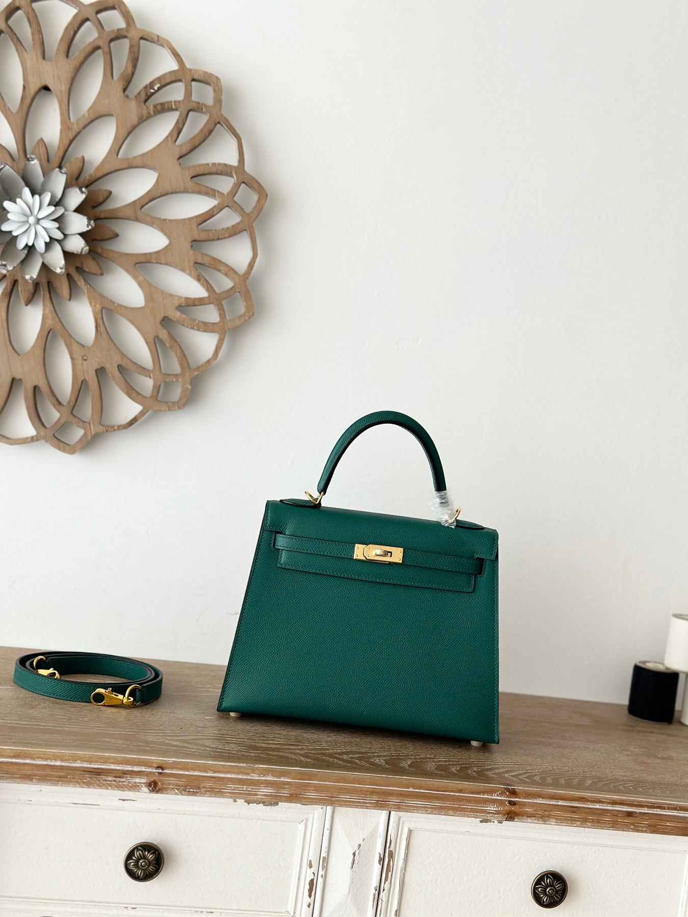 Elevate your crafting projects with our Semi-Handmade Beeswax Thread, crafted from premium Epsom original leather. This stunning malachite green thread, accented with a stylish gold buckle, measures 25cm in length. Perfect for both professional and DIY projects, our beeswax thread combines durability with a touch of elegance. Each piece is produced by talented artisans, ensuring high-quality craftsmanship in every stitch. Discover the perfect addition to your crafting supplies today!