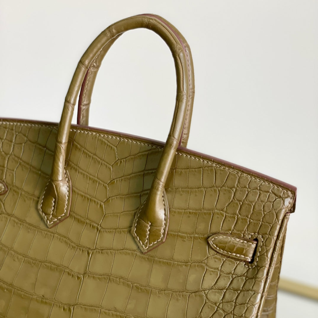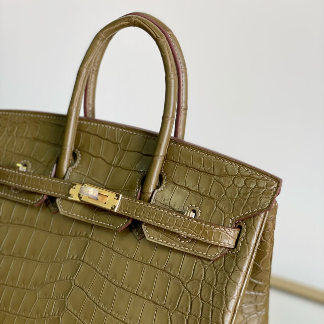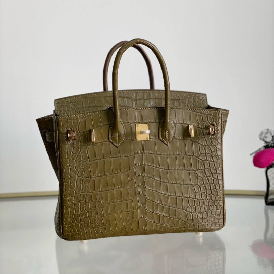 Matte Siam Platinum Olive Green Handbag with Gold Buckle