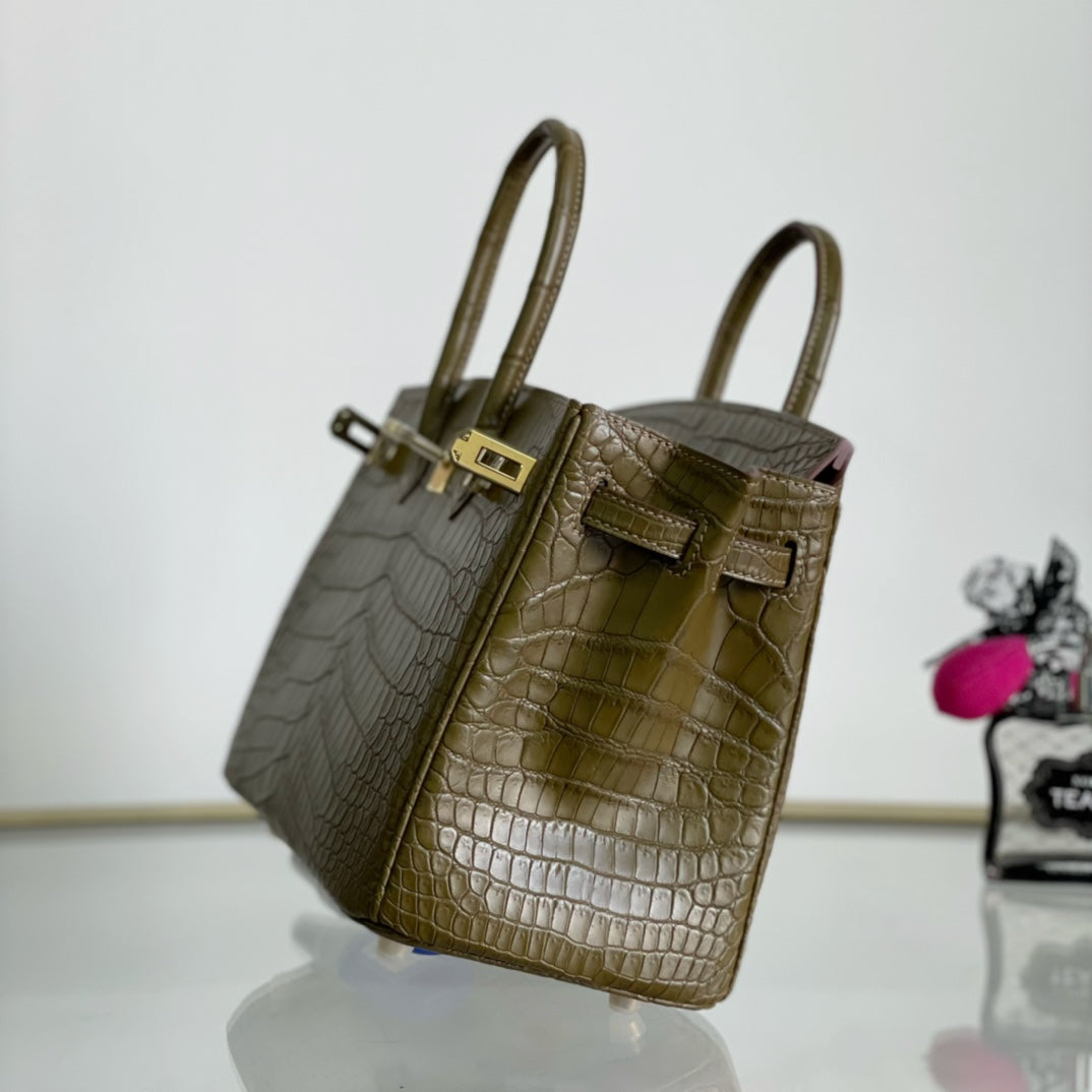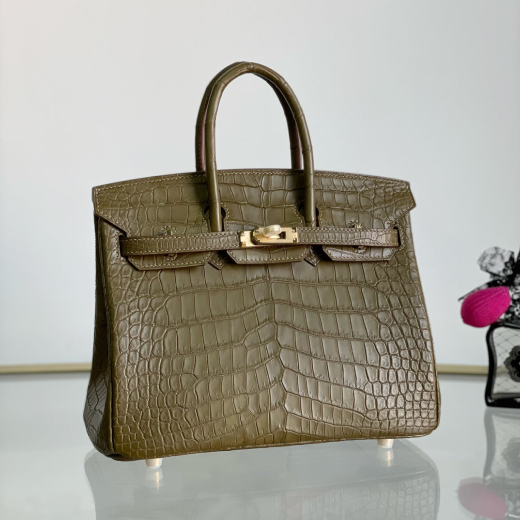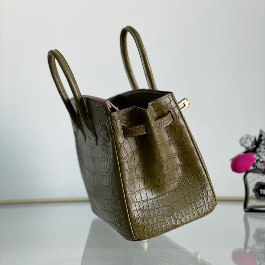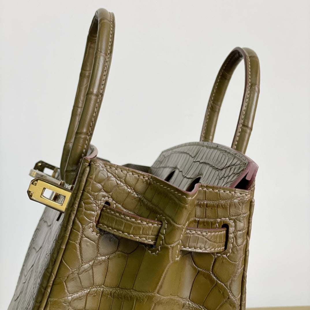 Matte Siam Platinum Olive Green Handbag with Gold Buckle