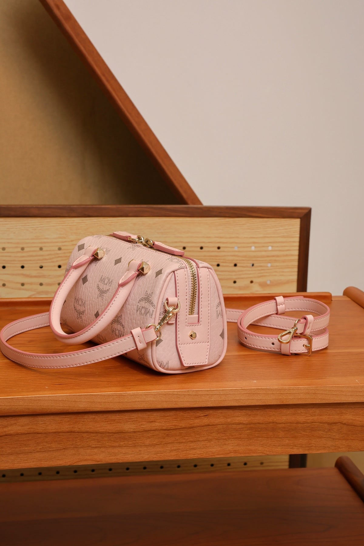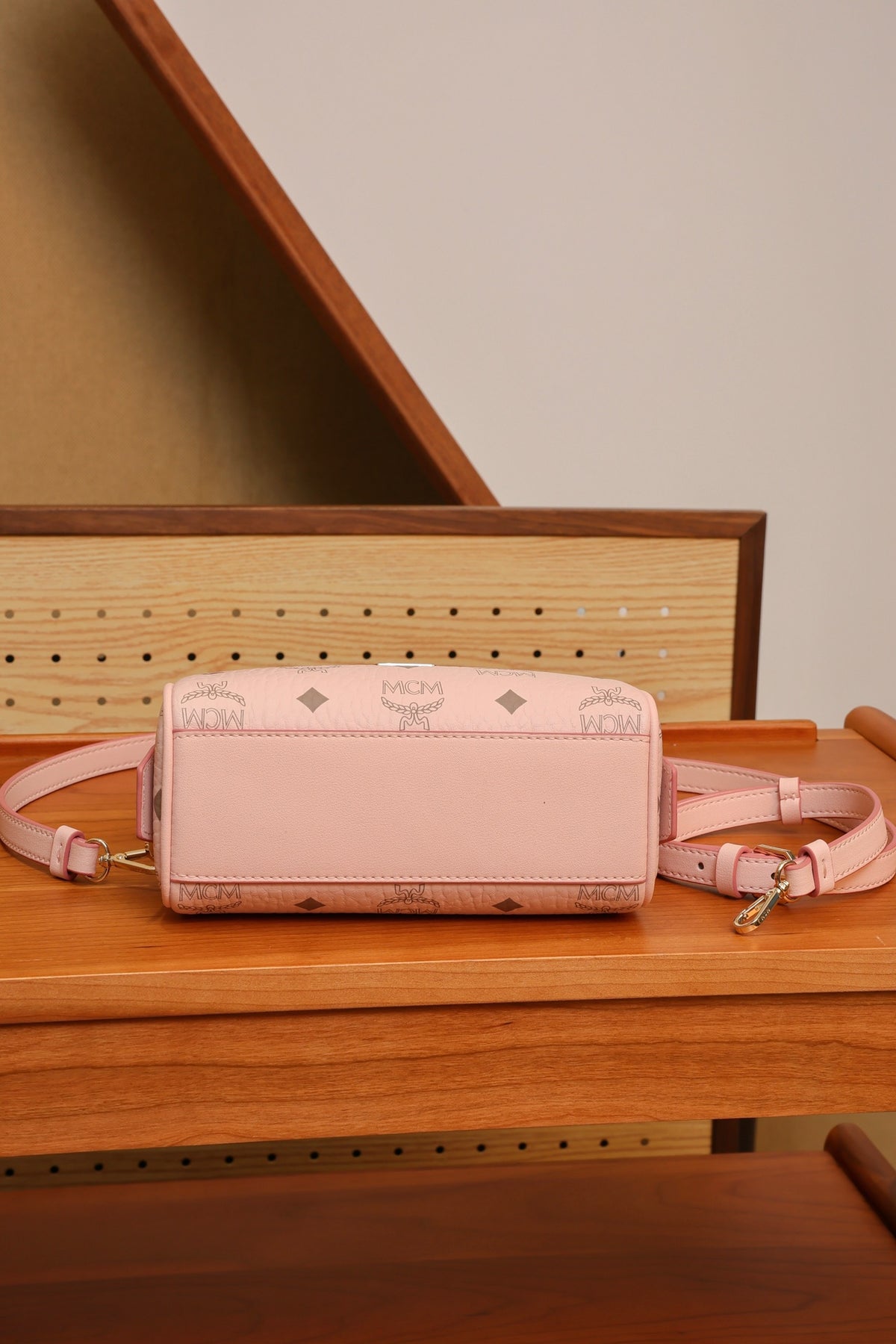 MCM Aren Essential Sakura Pink Mini Boston Bag