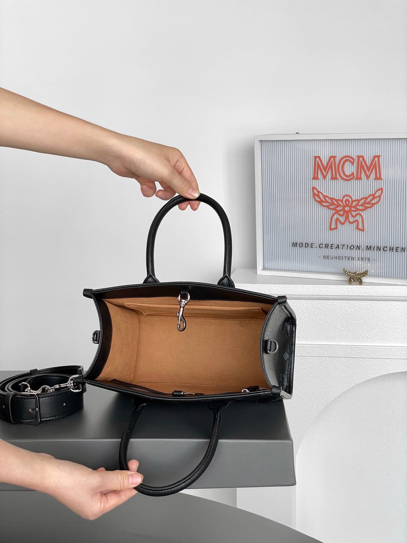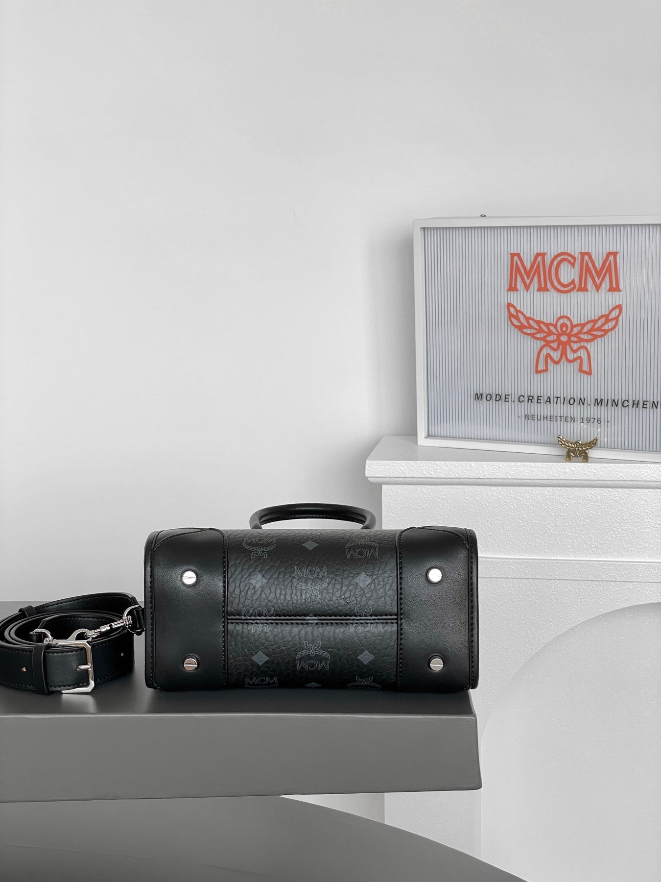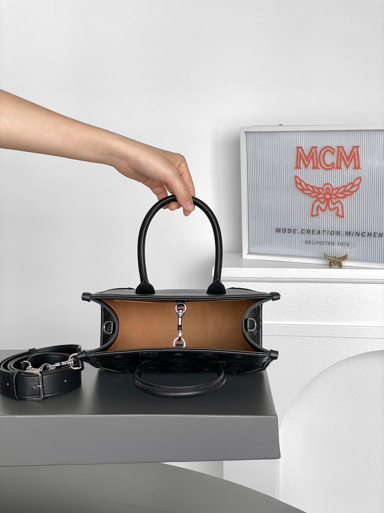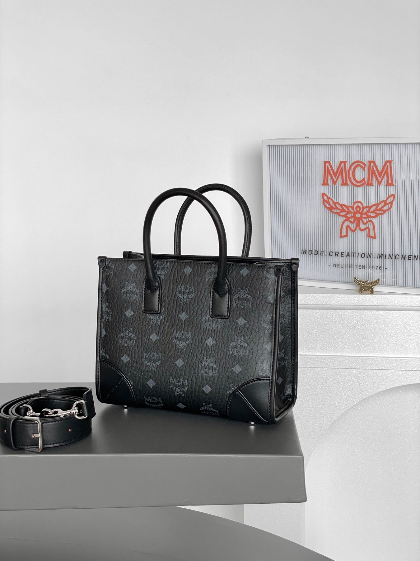 MCM München Visetos Handheld Tote Bag in Elegant Black
