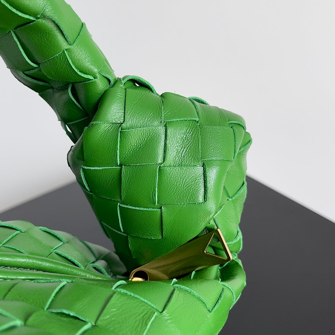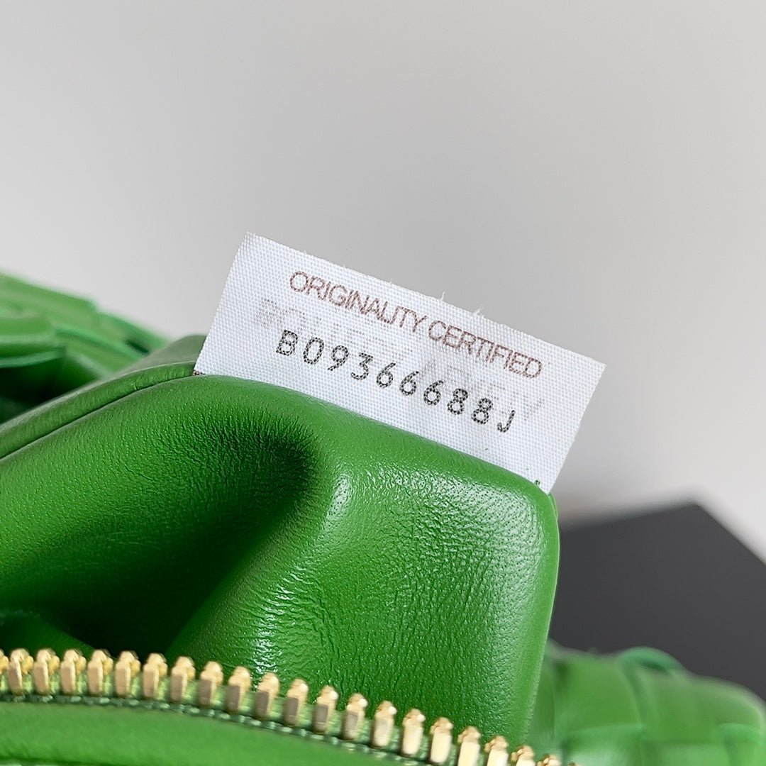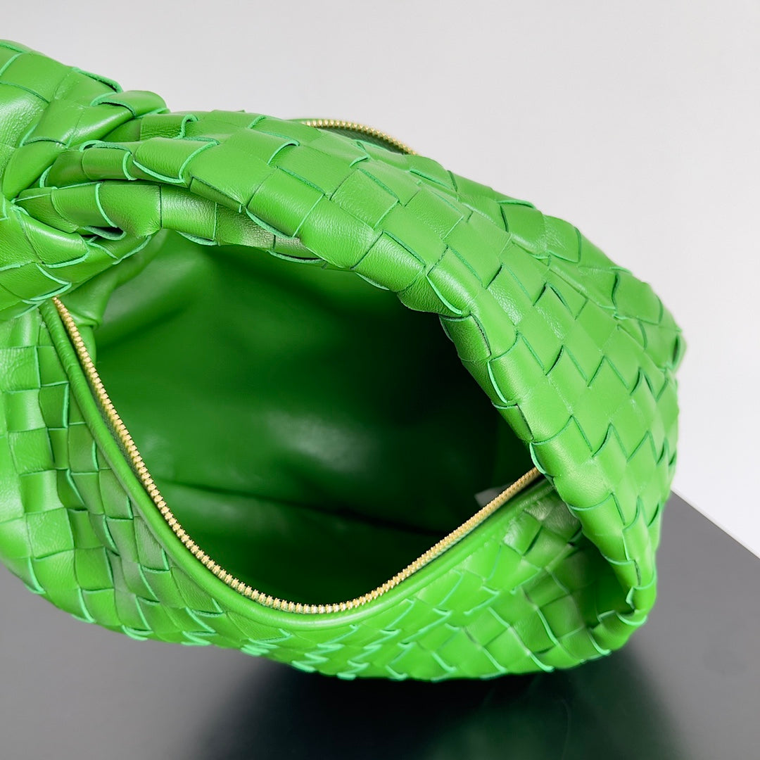 Introducing the Bottlega Veneta Jodie Handbag in a striking green pepper hue. This medium-sized handbag combines elegance with functionality, making it an essential accessory for any wardrobe.
