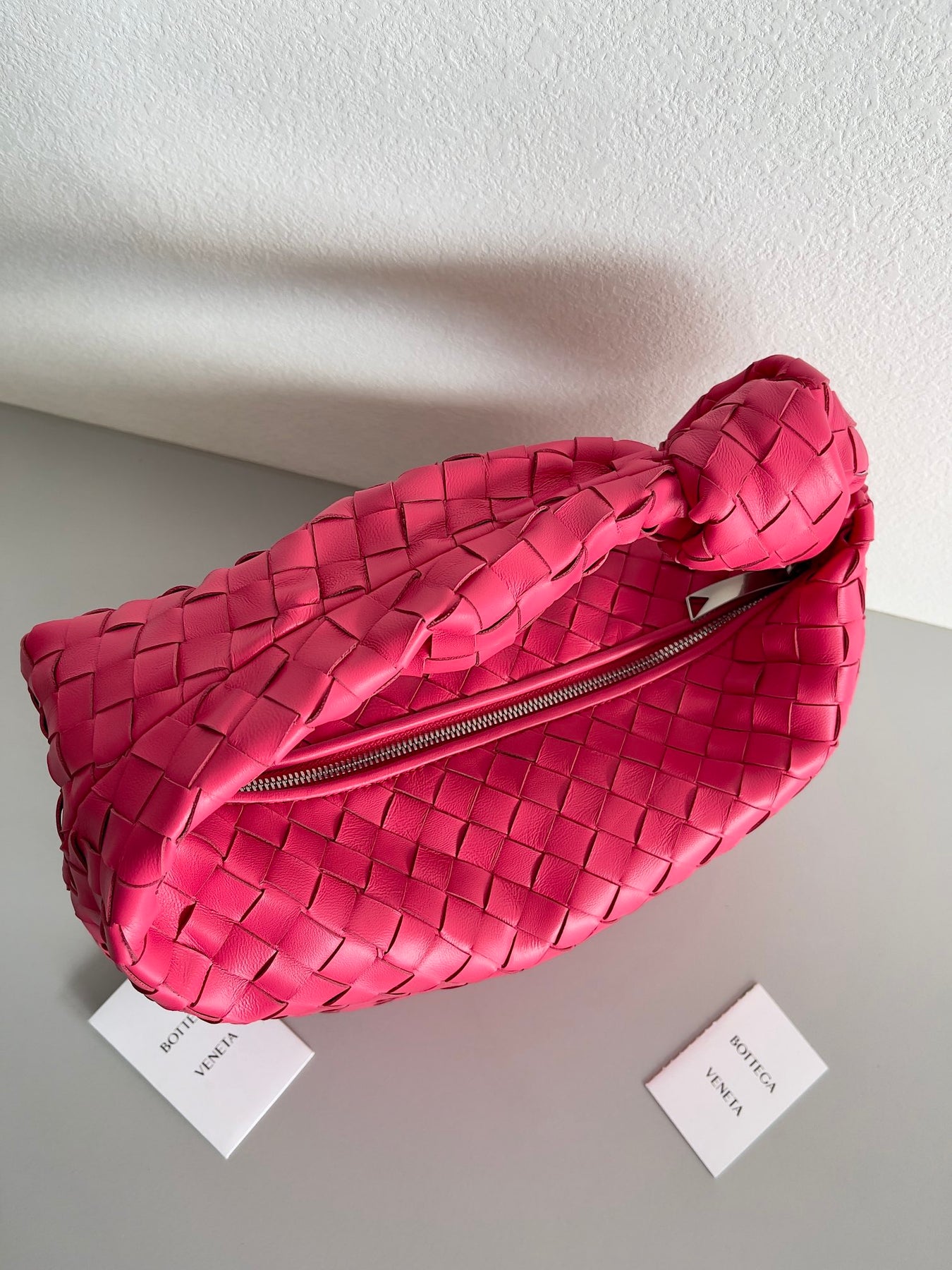 Discover the perfect blend of elegance and functionality with the Medium-Sized Botega Veneta Jodie Handbag. Crafted for durability, this chic handbag makes a strong first impression with its sturdy construction and well-designed knot handle. The innovative design ensures the handbag stays securely in place, preventing slips during long walks.