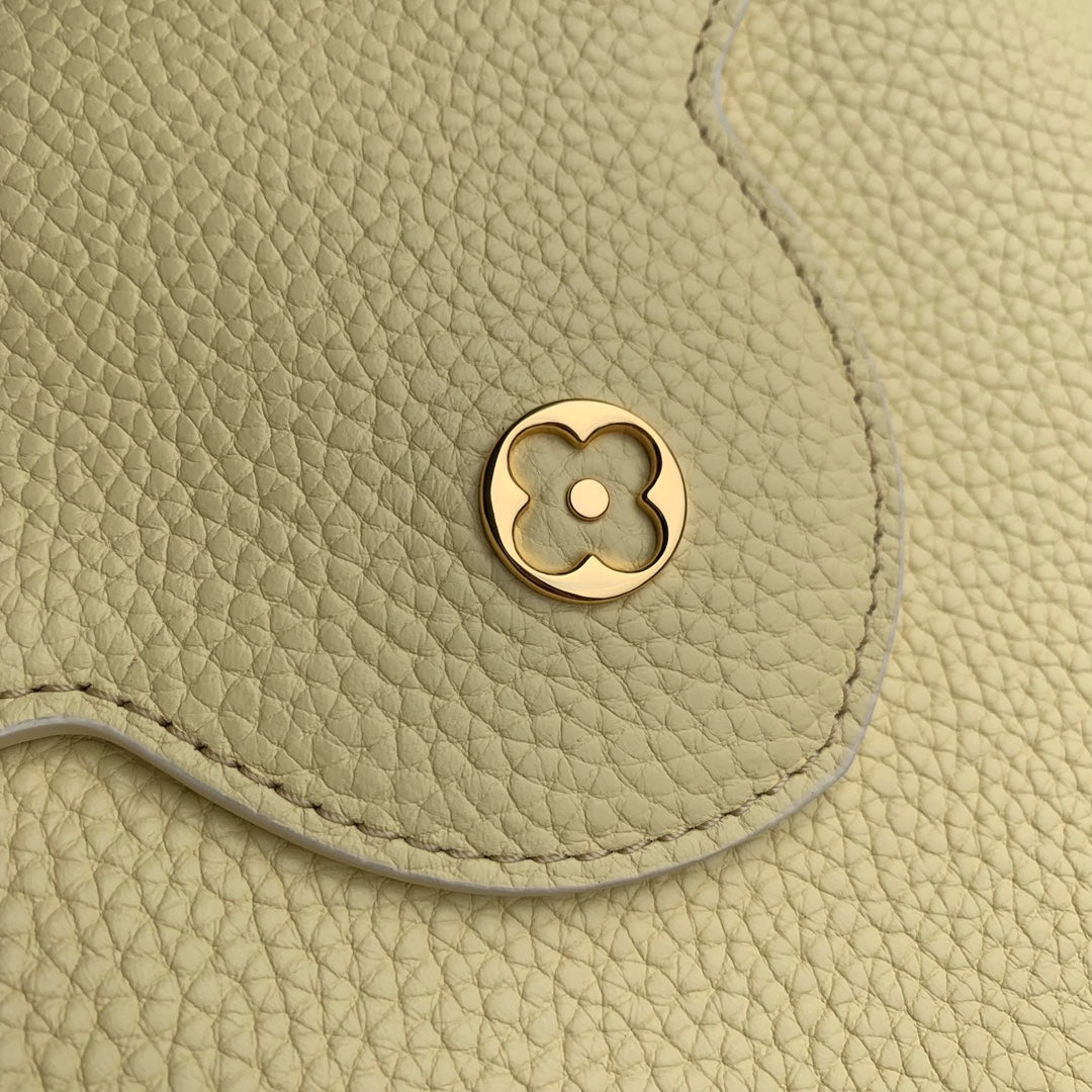 Introducing the Mini Capucines BB Bag in exquisite yellow Taurillon leather. This stylish bag is a charming rendition of the classic Capucines design, featuring a floral Monogram hook that seamlessly connects to the shoulder strap, adding a touch of elegance. Compact yet functional, it accommodates your essentials, including a cell phone and long wallet. With dimensions of 26.5 x 17.5 x 9 cm (length x height x width), this pocket-sized cutie combines luxury with practicality for the modern woman. Elevate your accessory collection with this timeless piece.