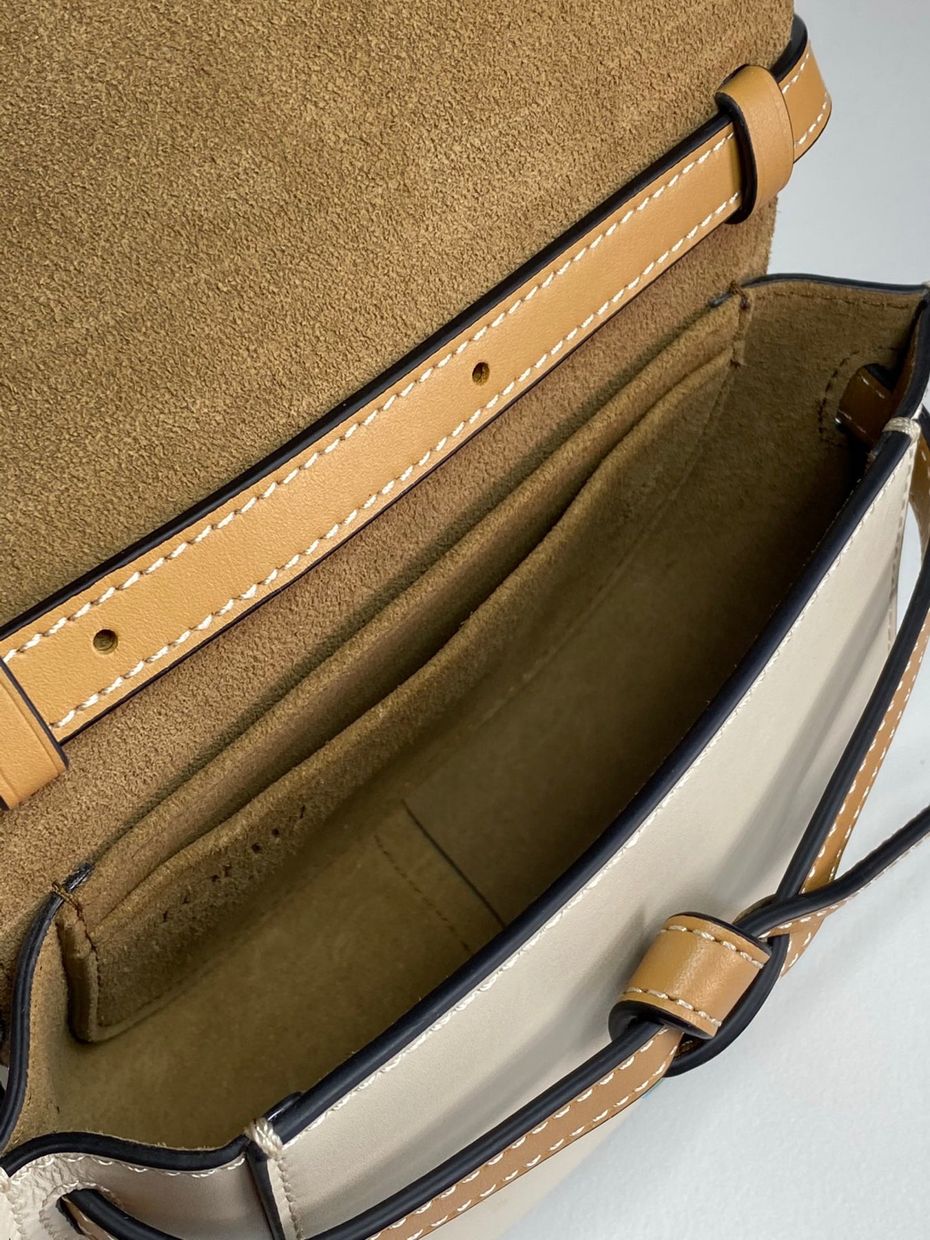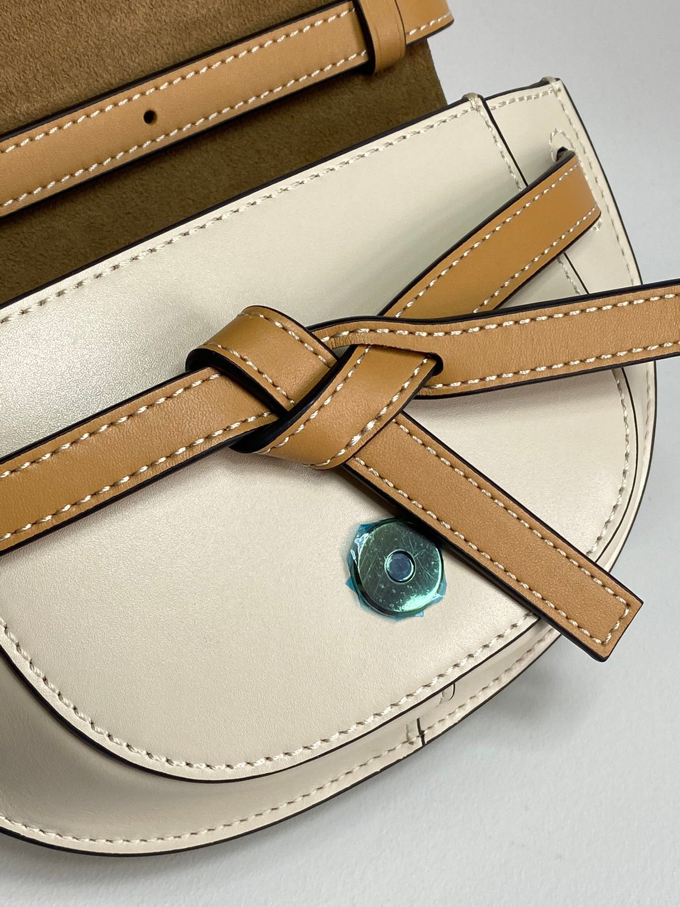 Designed for versatility, the handbag comes with a knotted leather strap adorned with saddle stitching and a secure metal pin closure, embodying the essence of the Mini Gate series. With its detachable shoulder strap, you can wear it effortlessly on your shoulder, cross-body, or even as a belt bag.
