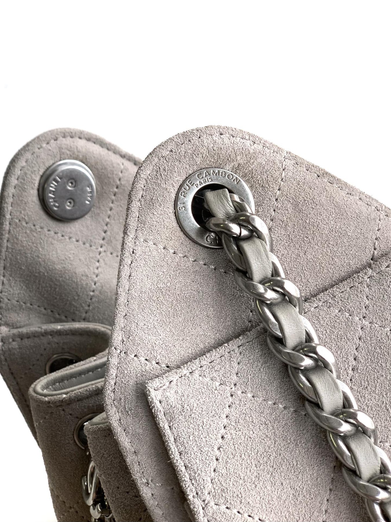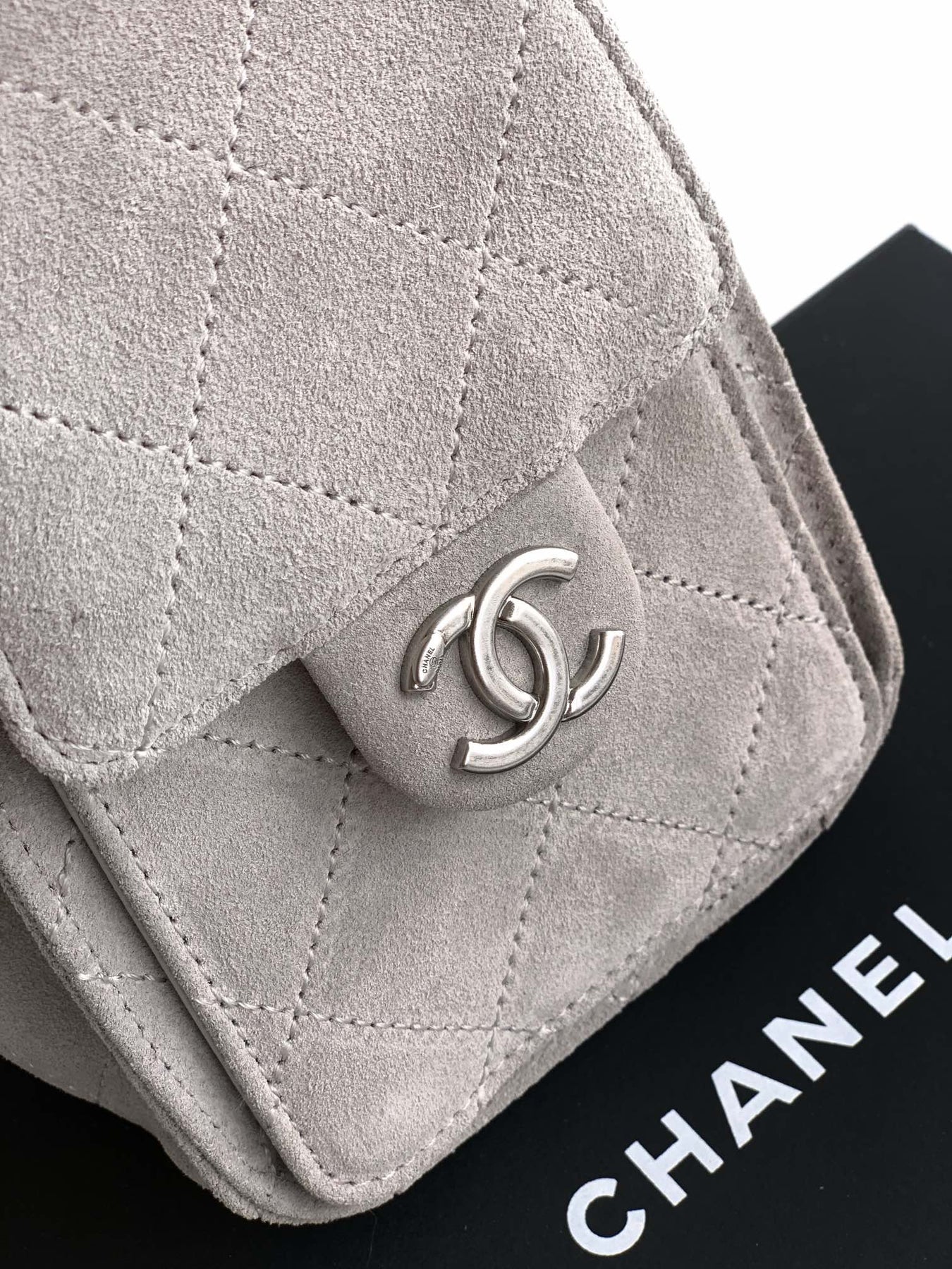 Mini Gray Brown Chamois Leather Bag with Silver Buckle Hardware