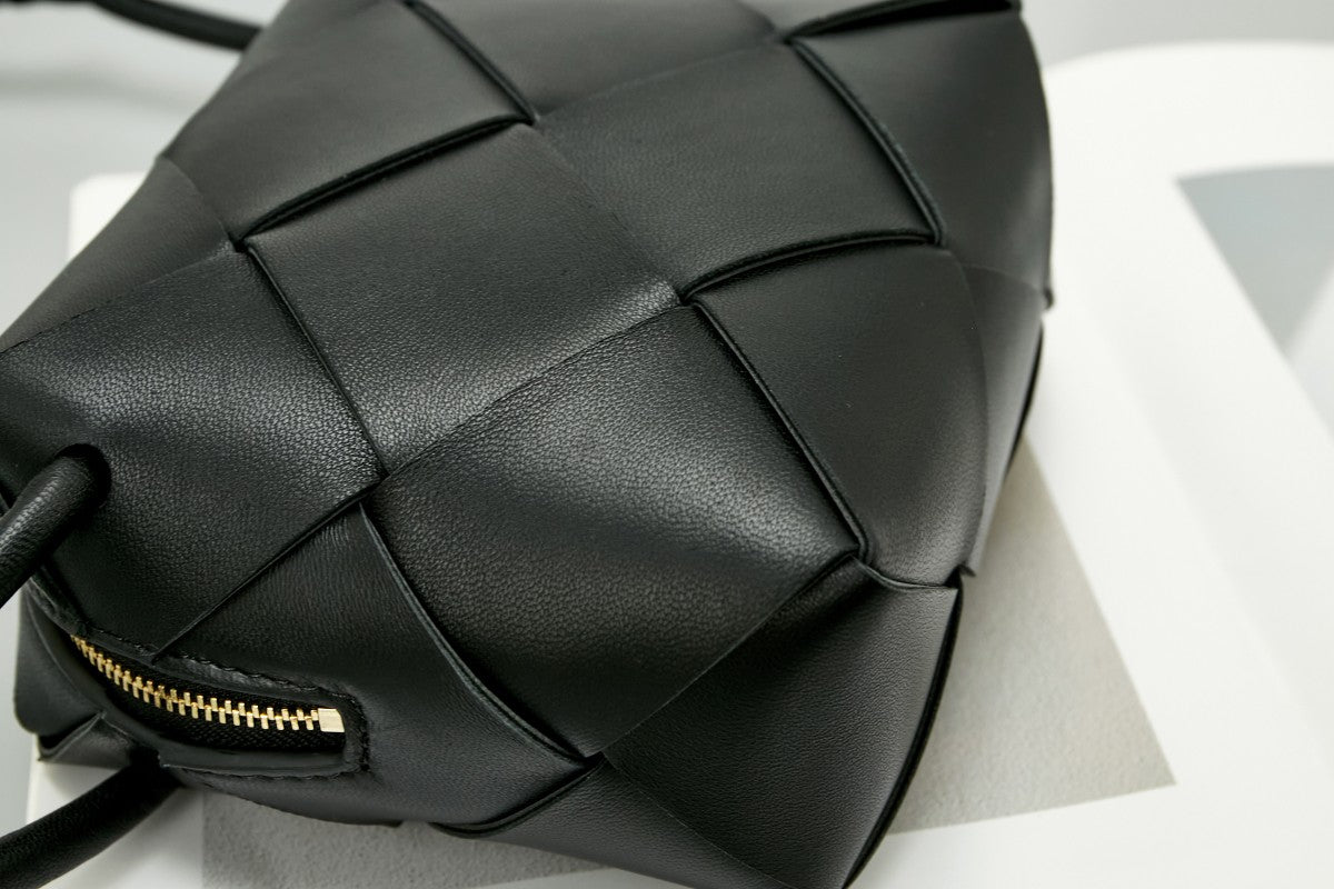 Mini Intreccio Woven Leather Crossbody Bag - Black