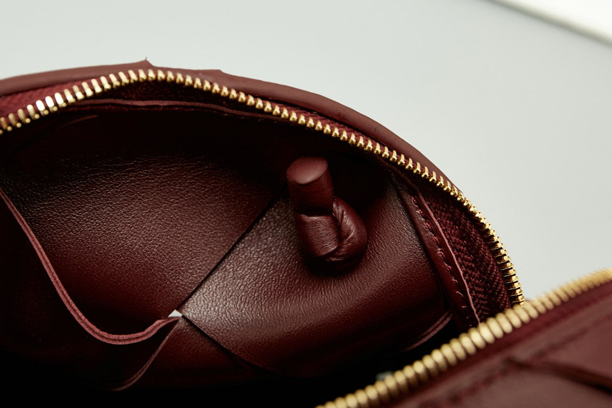 Mini Intreccio Woven Leather Crossbody Bag in Bordeaux Red