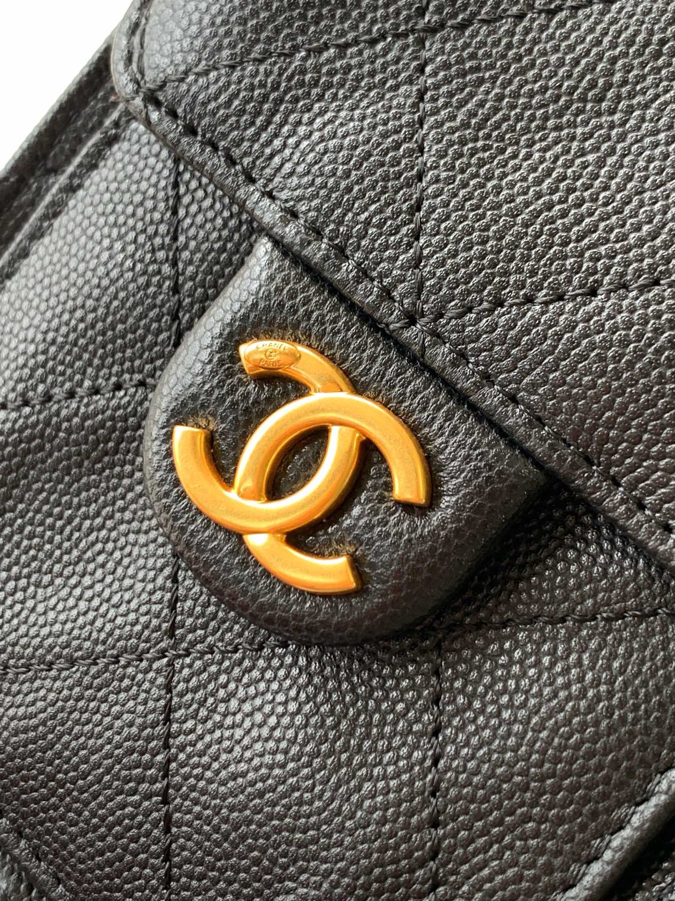 Elevate your style with the Mini OHANEL 26C Caviar Leather Hobo Bag. Crafted from premium caviar leather and adorned with luxurious gold metal accents, this chic accessory embodies both sophistication and practicality. The glossy black finish complements any outfit, making it the perfect companion for spring and summer vacations.