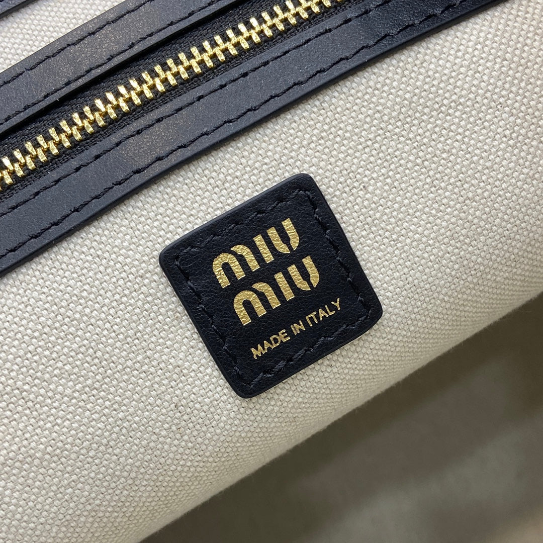 Introducing the Miu Miu Convertible Handbag, crafted from premium imported calfskin and featuring a durable, wear-resistant linen blend lining. This stylish accessory showcases a casual yet sophisticated design, seamlessly combining elegance with practicality.