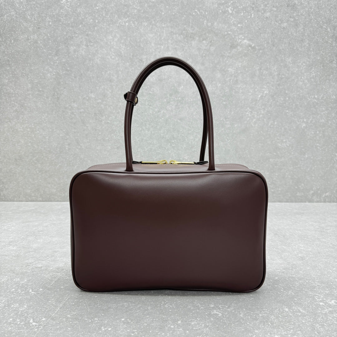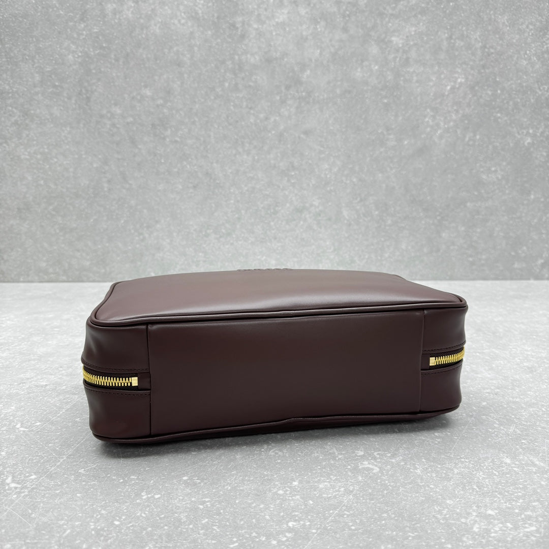 Introducing the Miu Miu Long Handle Briefcase in elegant chocolate, the latest evolution in our iconic series. This third-generation briefcase features a longer handle, crafted for both style and comfort, while maintaining a sleek, shoulder strap-free design.