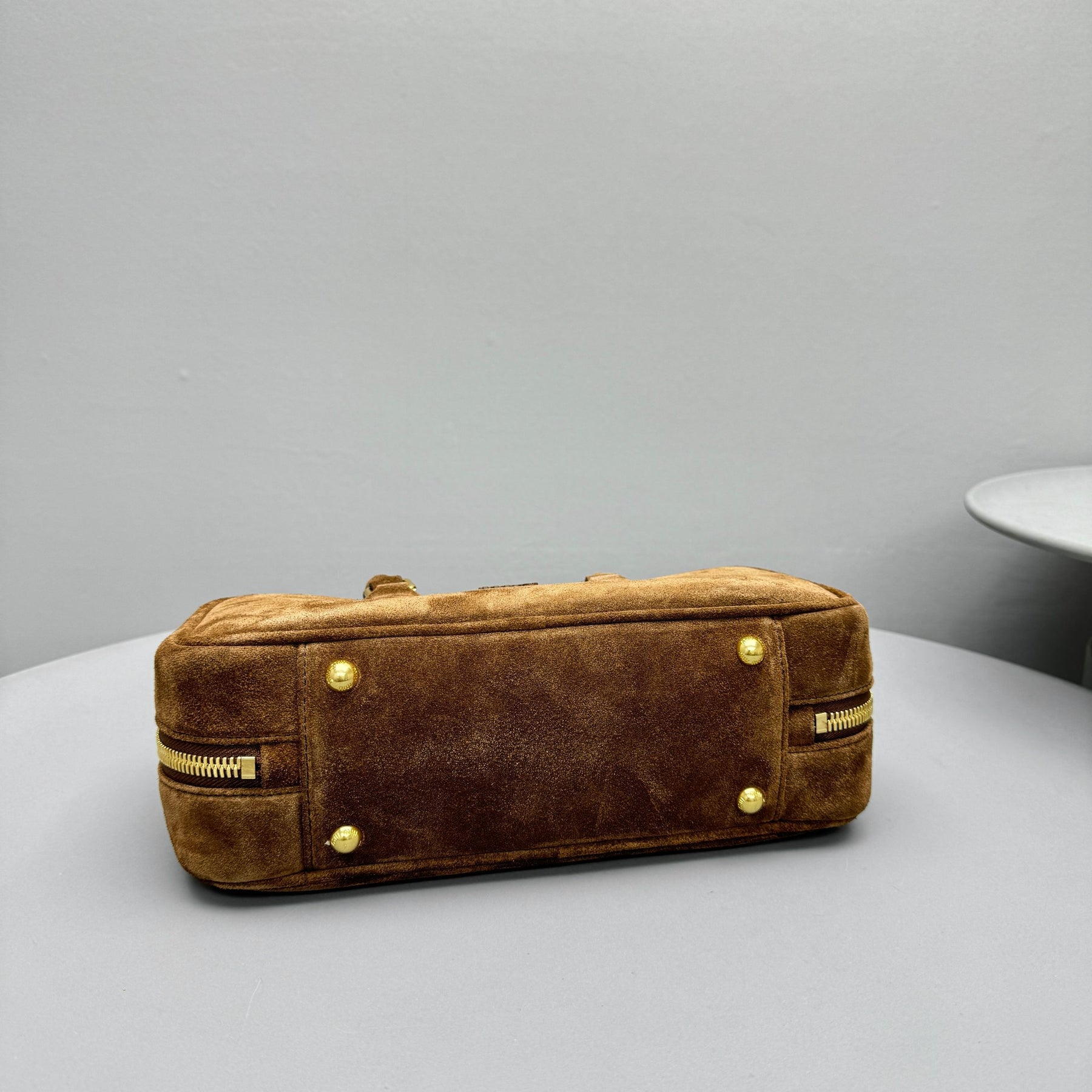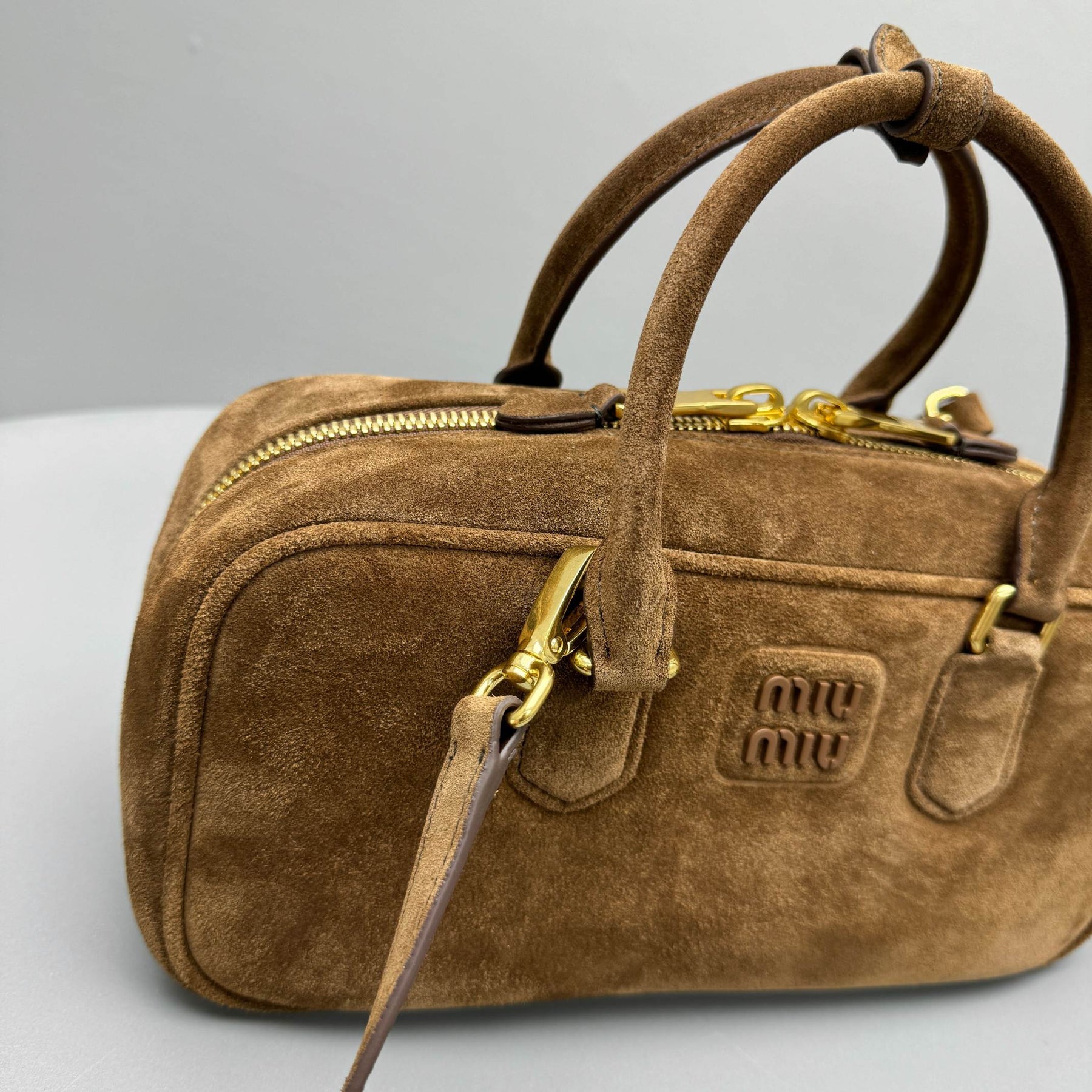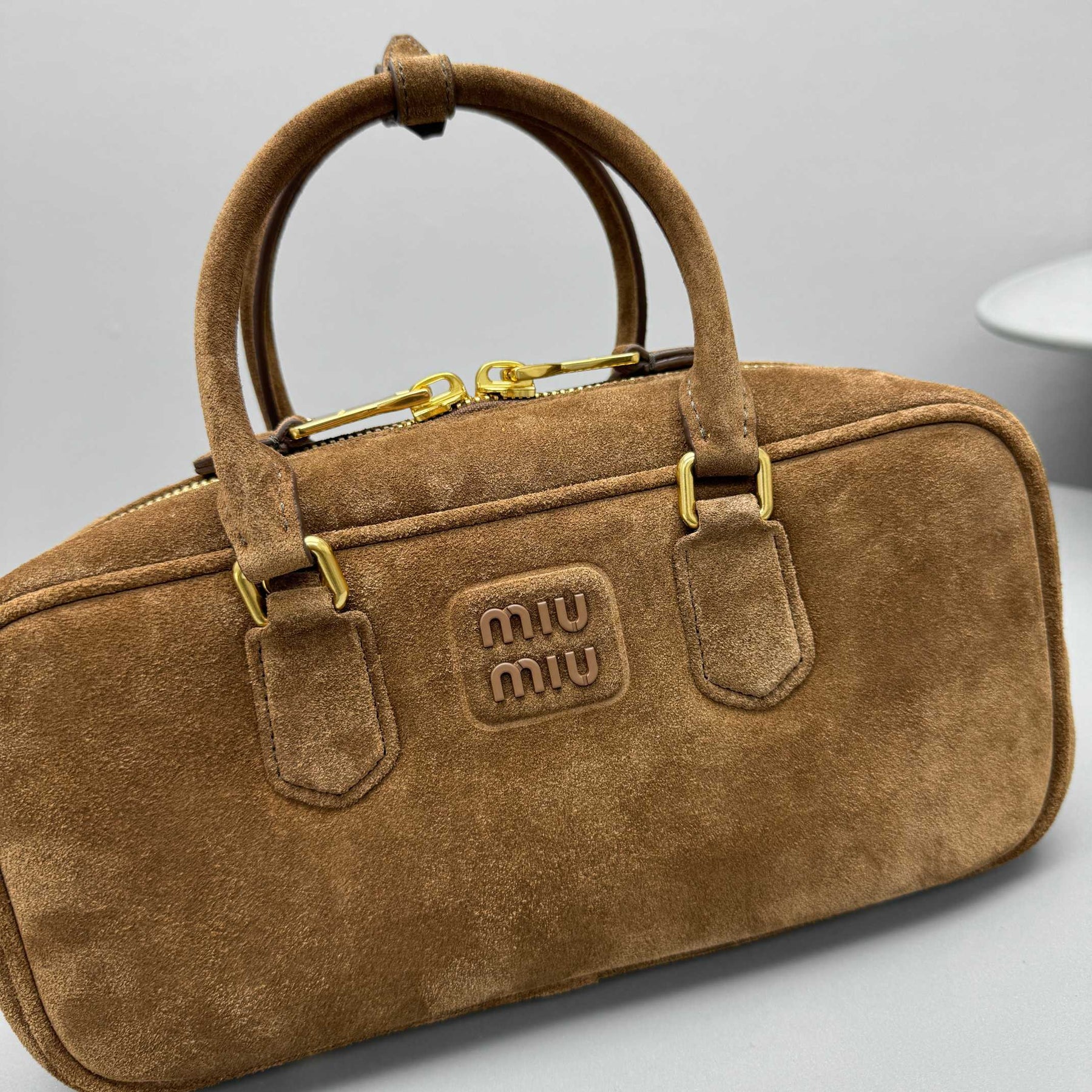 ** Miu Retro Frosted Dark Brown Small Square Bag **