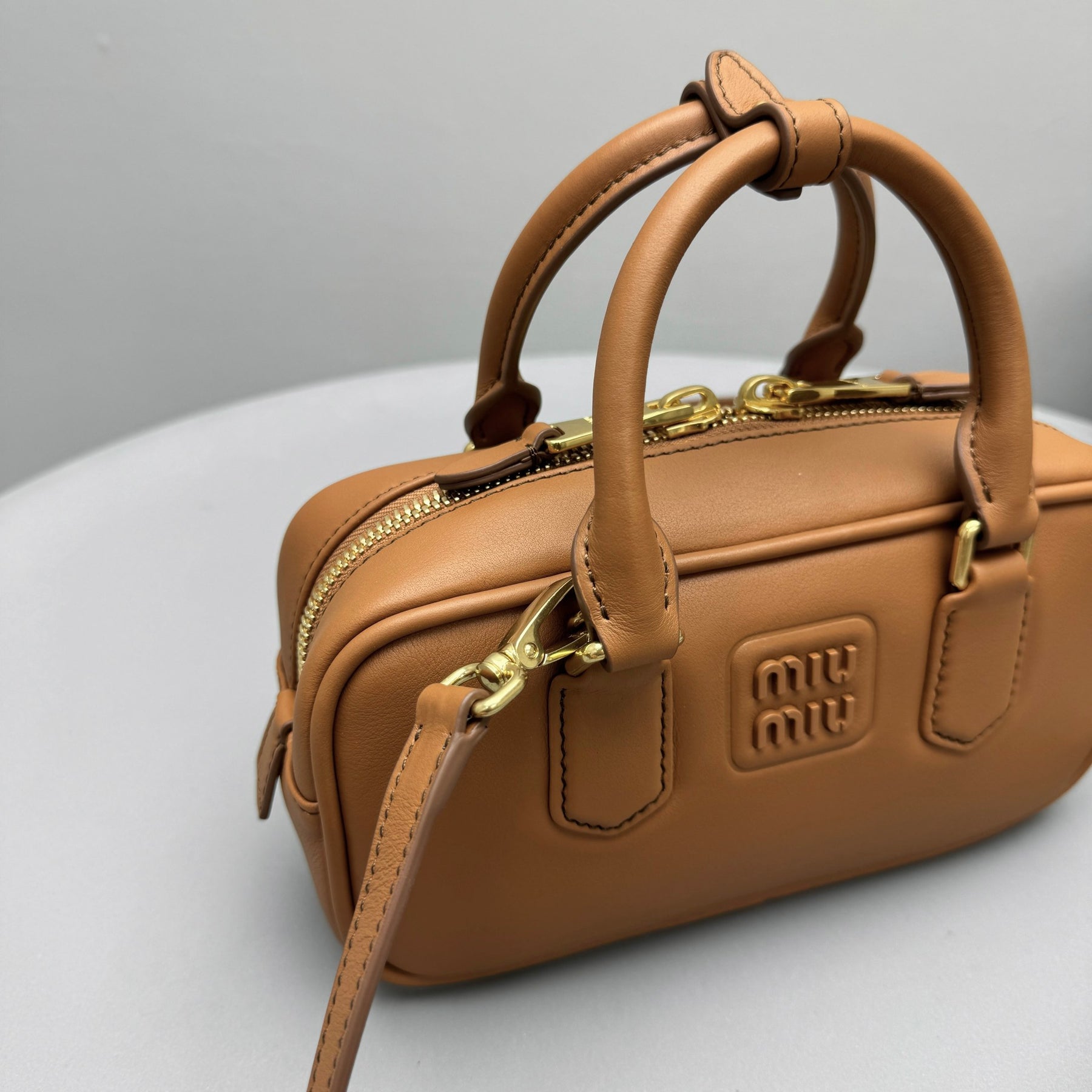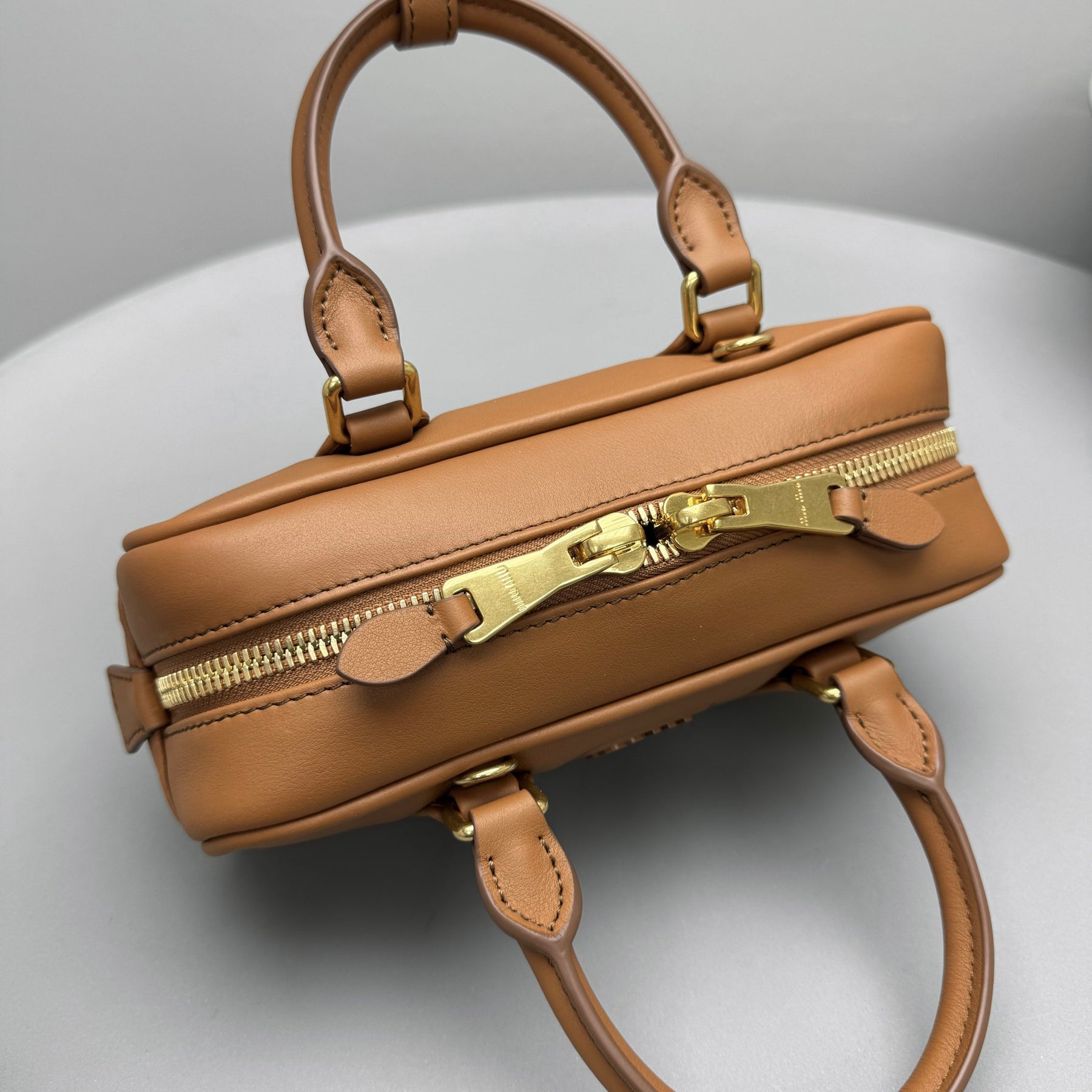 Introducing the Miu Retro Small Square Bag in Xiaoxin Brown – a perfect blend of simplicity and functionality. Crafted from soft, premium cowhide, this handbag features an embossed logo and a minimalist design that embodies understated elegance. With its spacious interior, it serves as an ideal commuting accessory or a stylish travel companion for weekend getaways. This chic bag, favored by fashionistas everywhere, proves that simplicity can be striking.