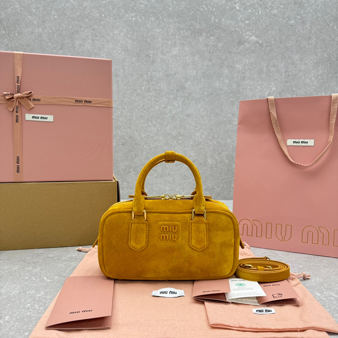 MIUMI^24FW Suede Bowling Bag - Small Pumpkin Color