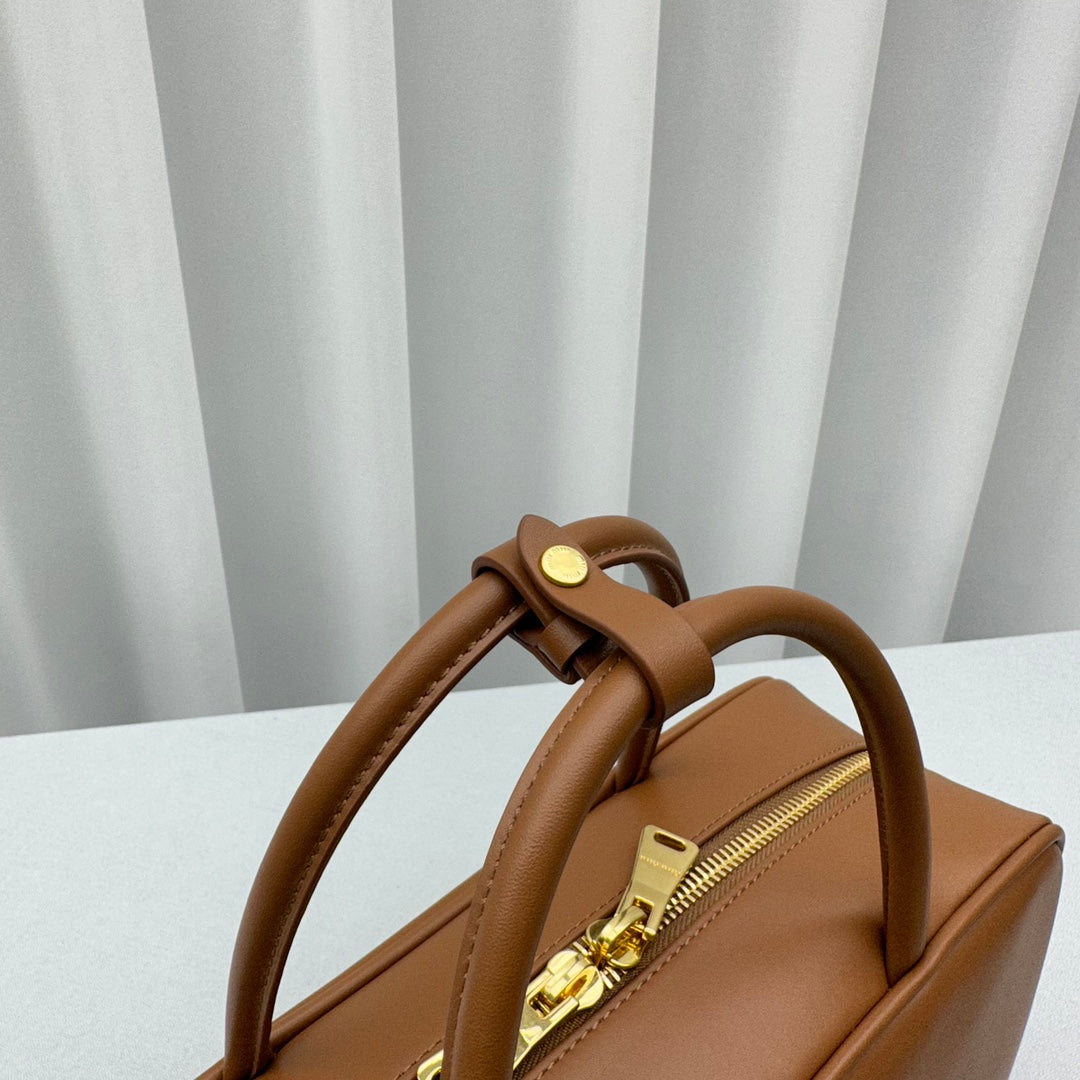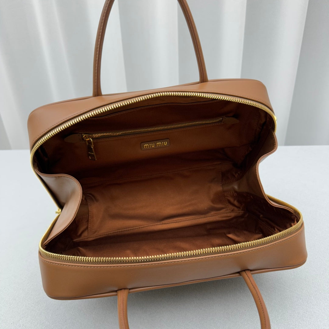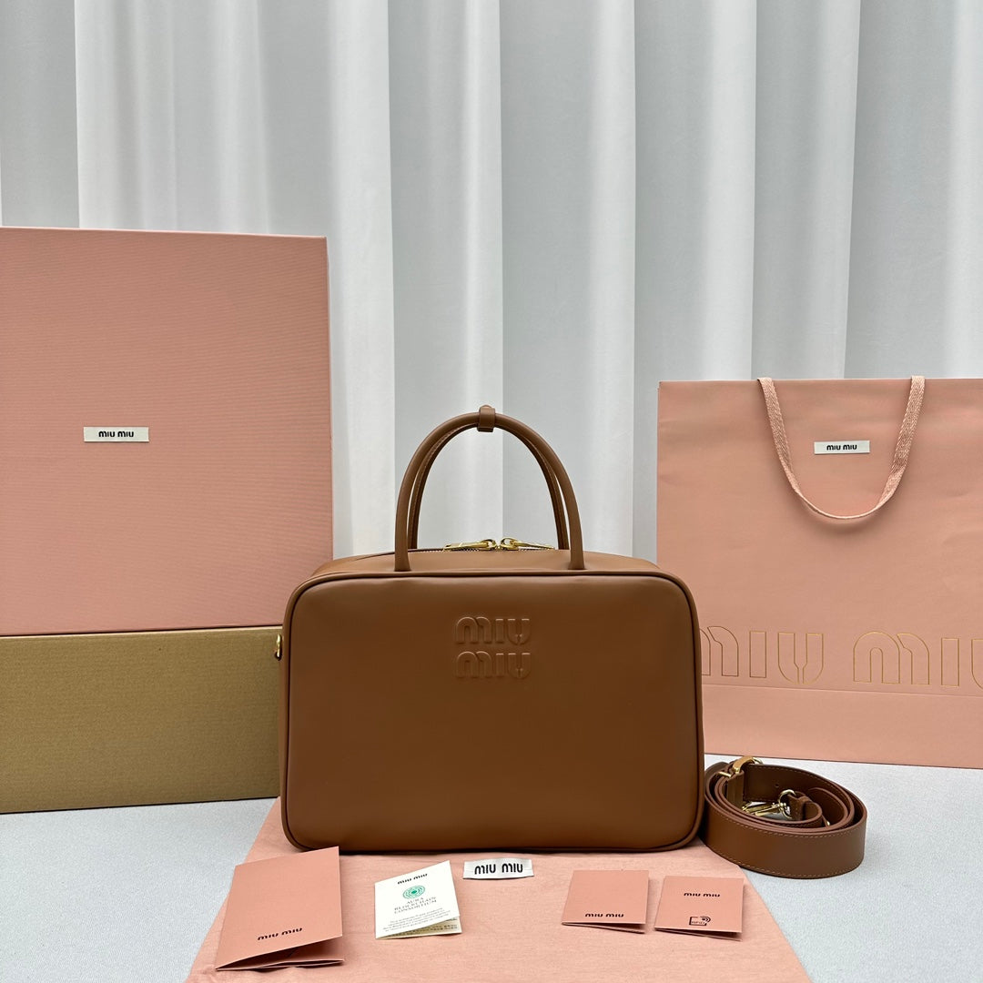 MIUMI Brown Leather Shoulder Strap Boston Briefcase