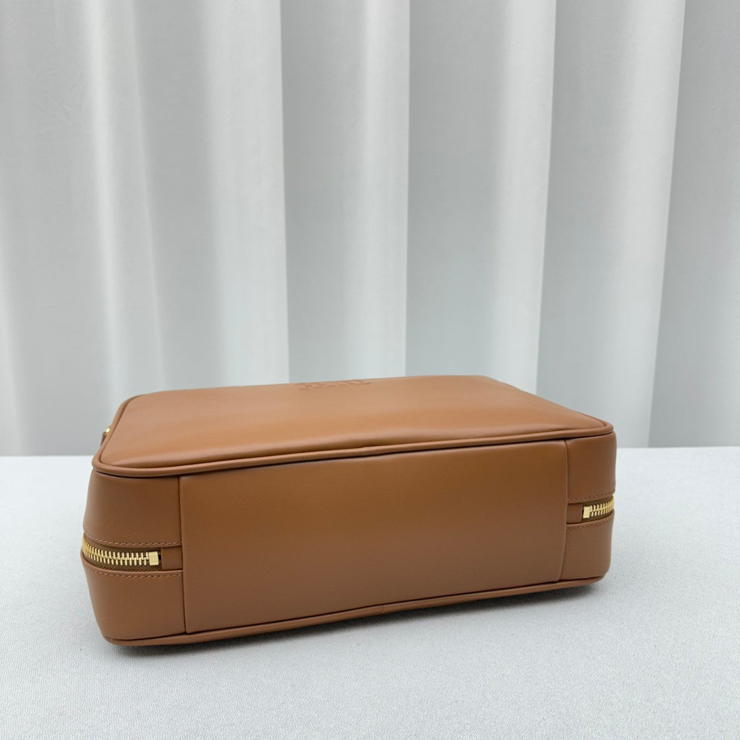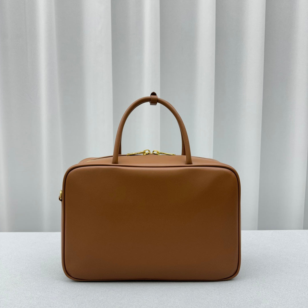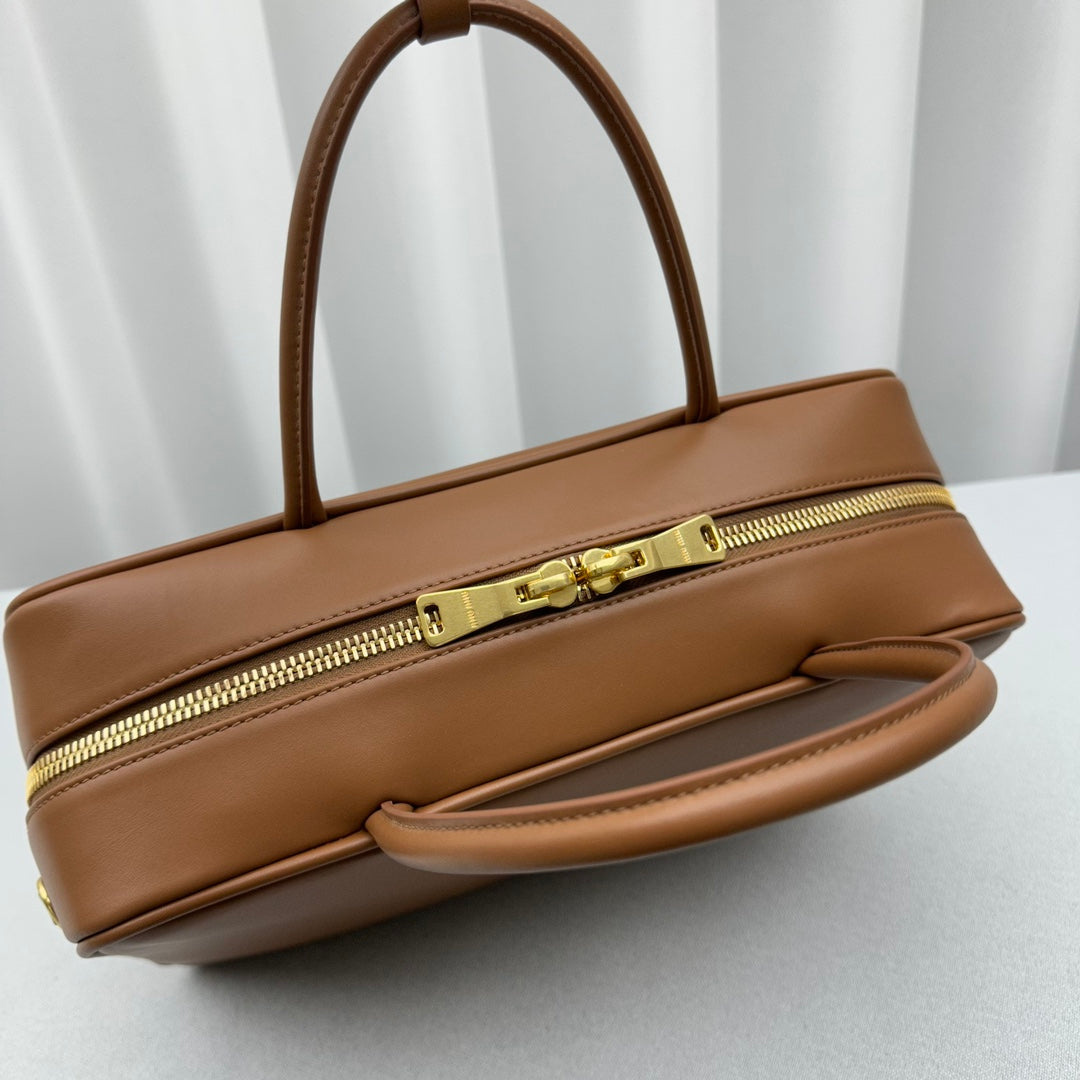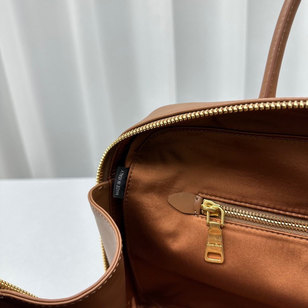 MIUMI Brown Leather Shoulder Strap Boston Briefcase