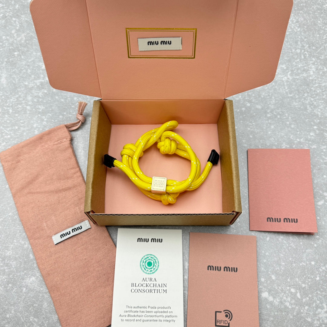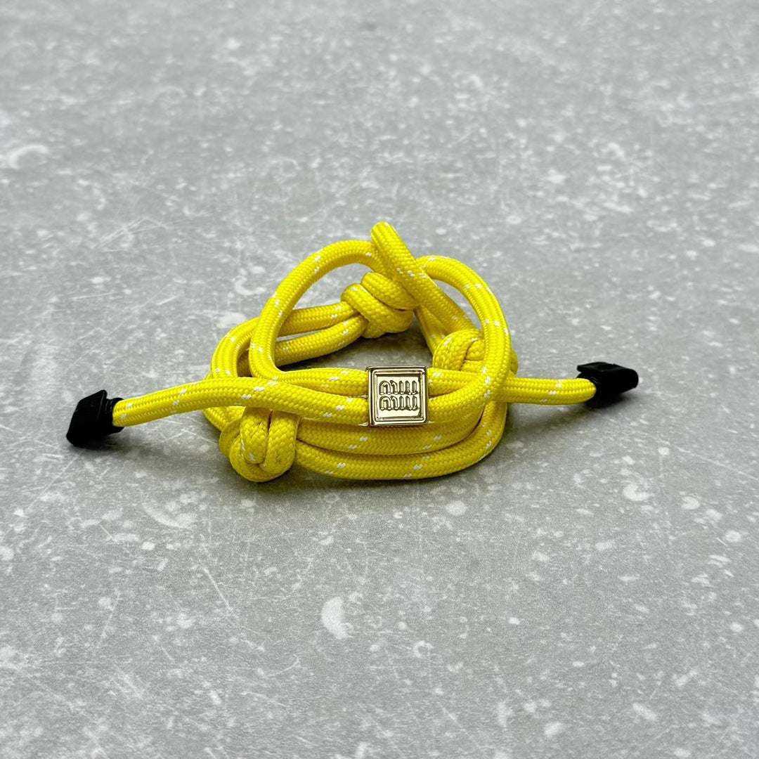 Elevate your accessory game with the MIUMI Show Style Bracelet. This versatile piece features a 24ss hand-woven design, making it the perfect addition to any outfit. Whether worn as a fashionable bracelet or a chic bag pendant, this item offers multiple DIY wearing options for a personalized touch. Embrace style and practicality with this irresistible accessory that adds a pop of color and charm to your look. One size fits all, making it a perfect gift for yourself or a loved one. Transform your style with MIUMI today!