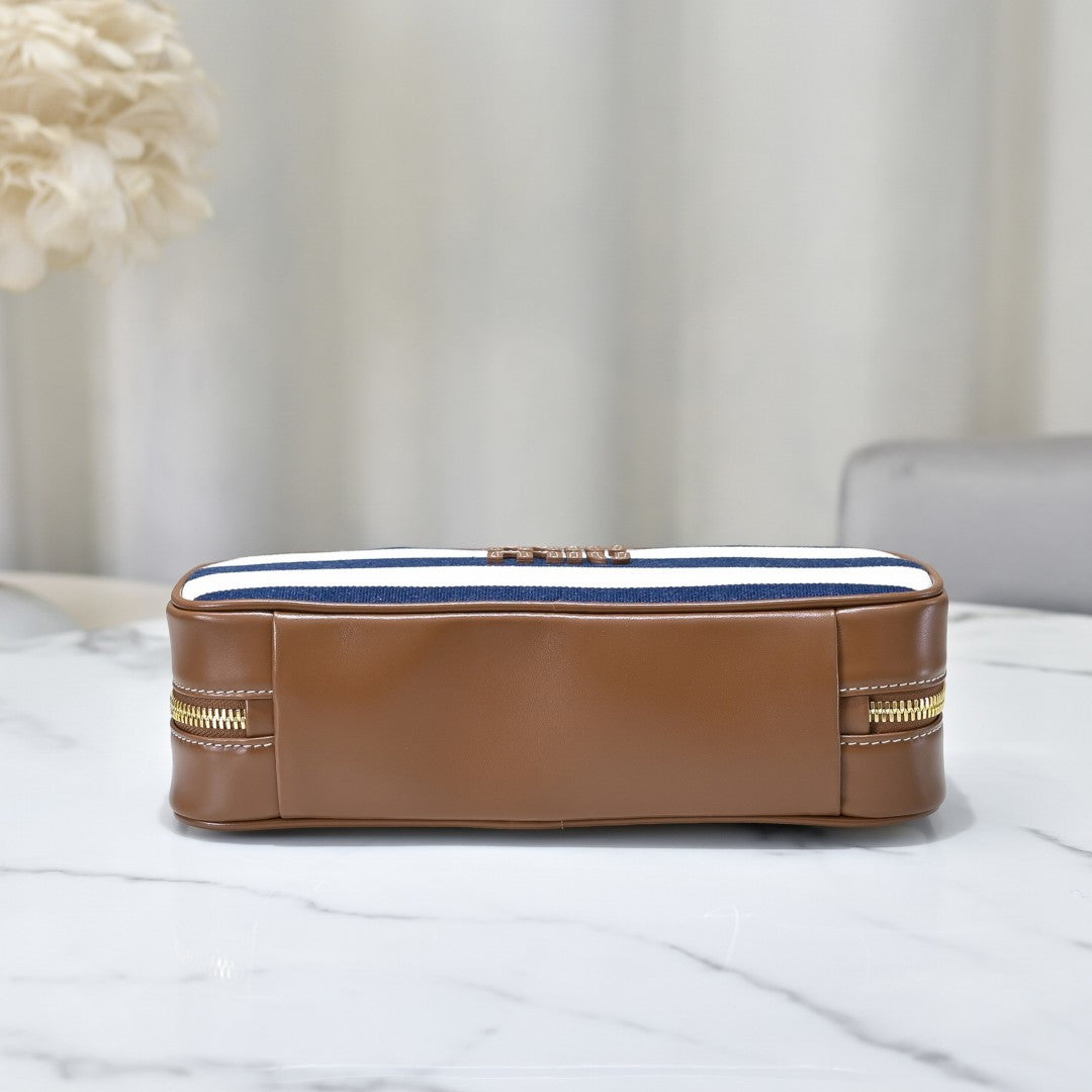 Introducing the MiuMiu 5BB173 Blue Stripes Bowling Bag, a stunning blend of style and sophistication. Crafted from premium super soft calfskin, this bag features a bold two-color design that captures MiuMiu's eclectic and inclusive spirit. With a unique blend of casual elegance, this multi-functional accessory is designed for both men and women, making it a versatile addition to any wardrobe.