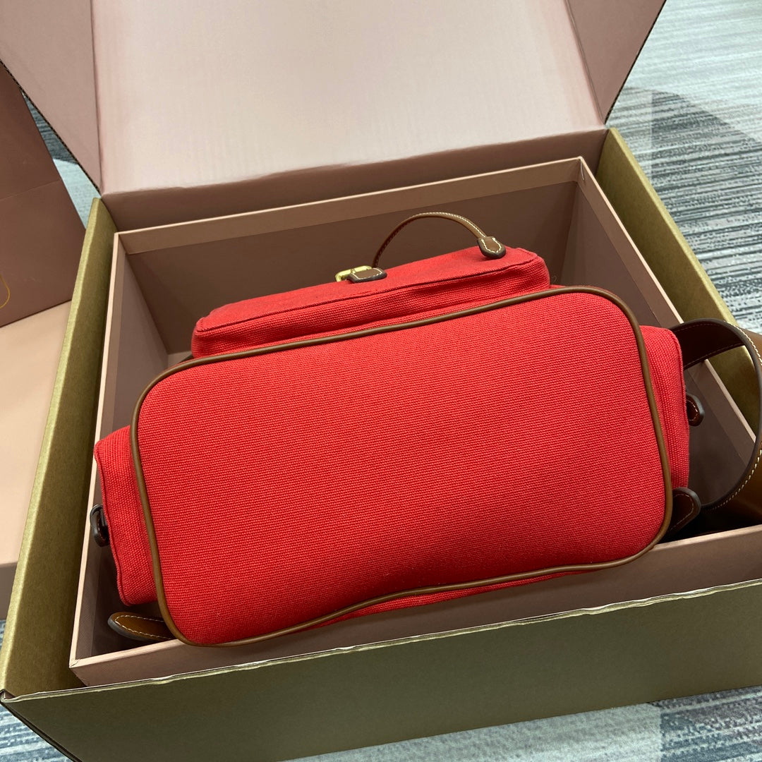 MiuMiu Canvas & Calfskin Convertible Shoulder Bag – Red