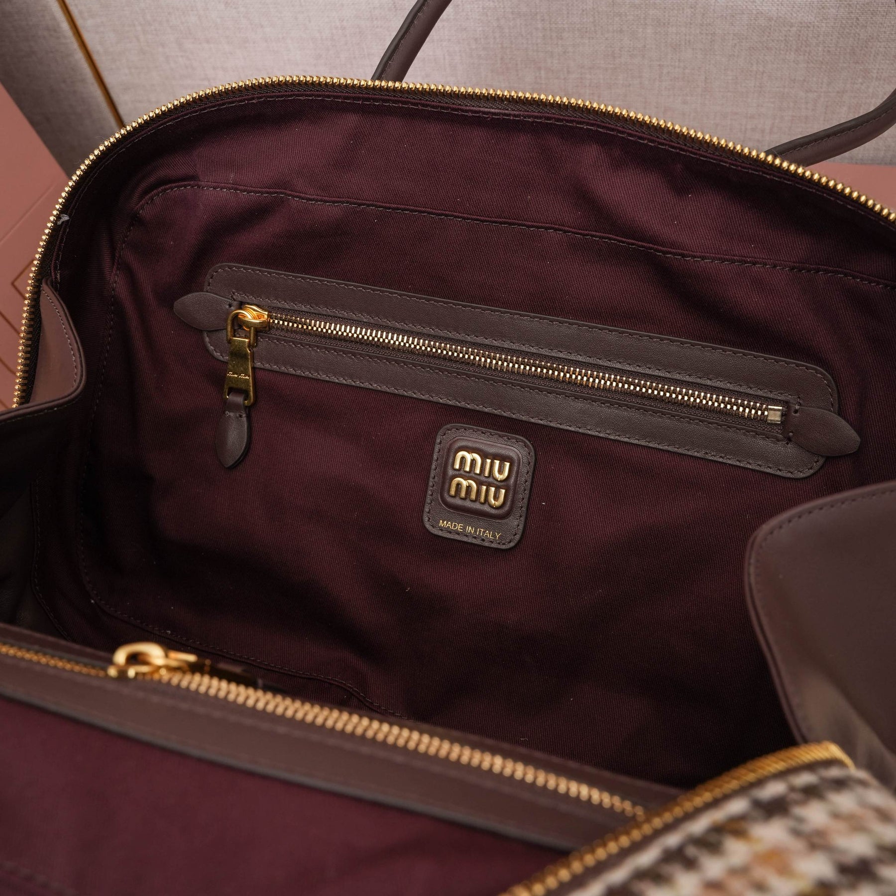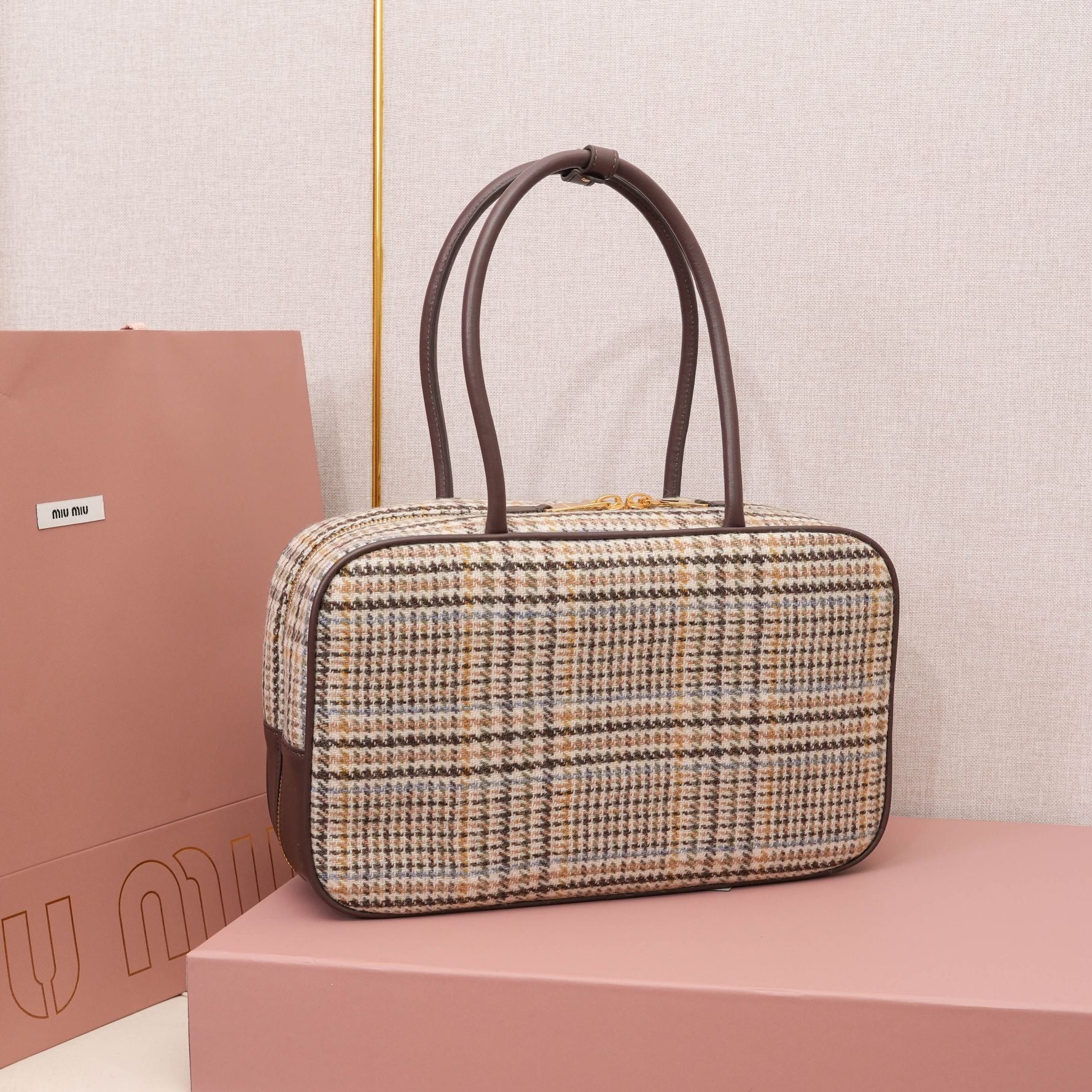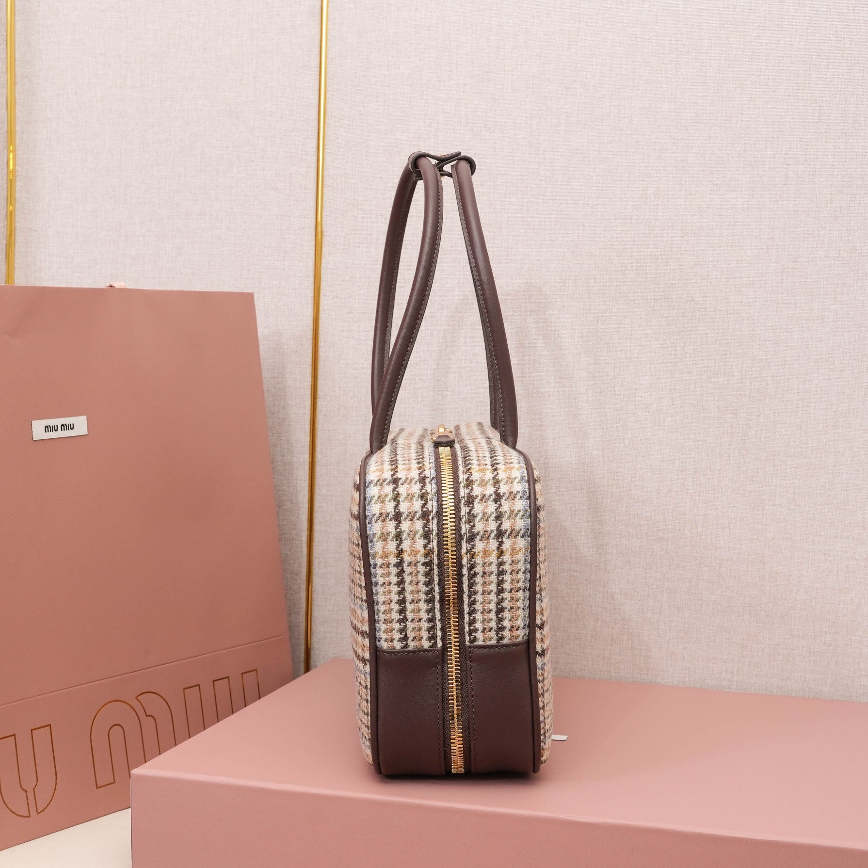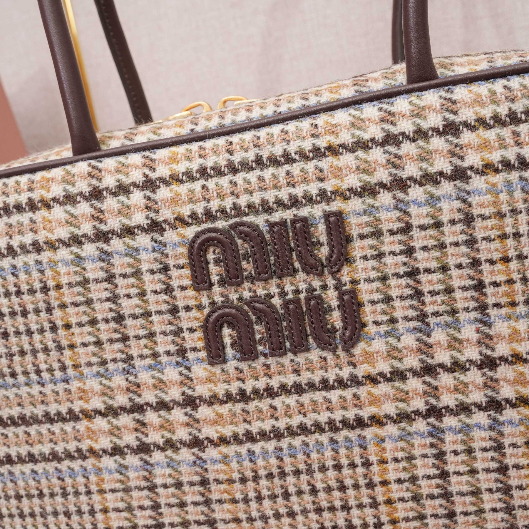 MiuMiu Houndstooth Briefcase - Stylish Wool & Calfskin Design