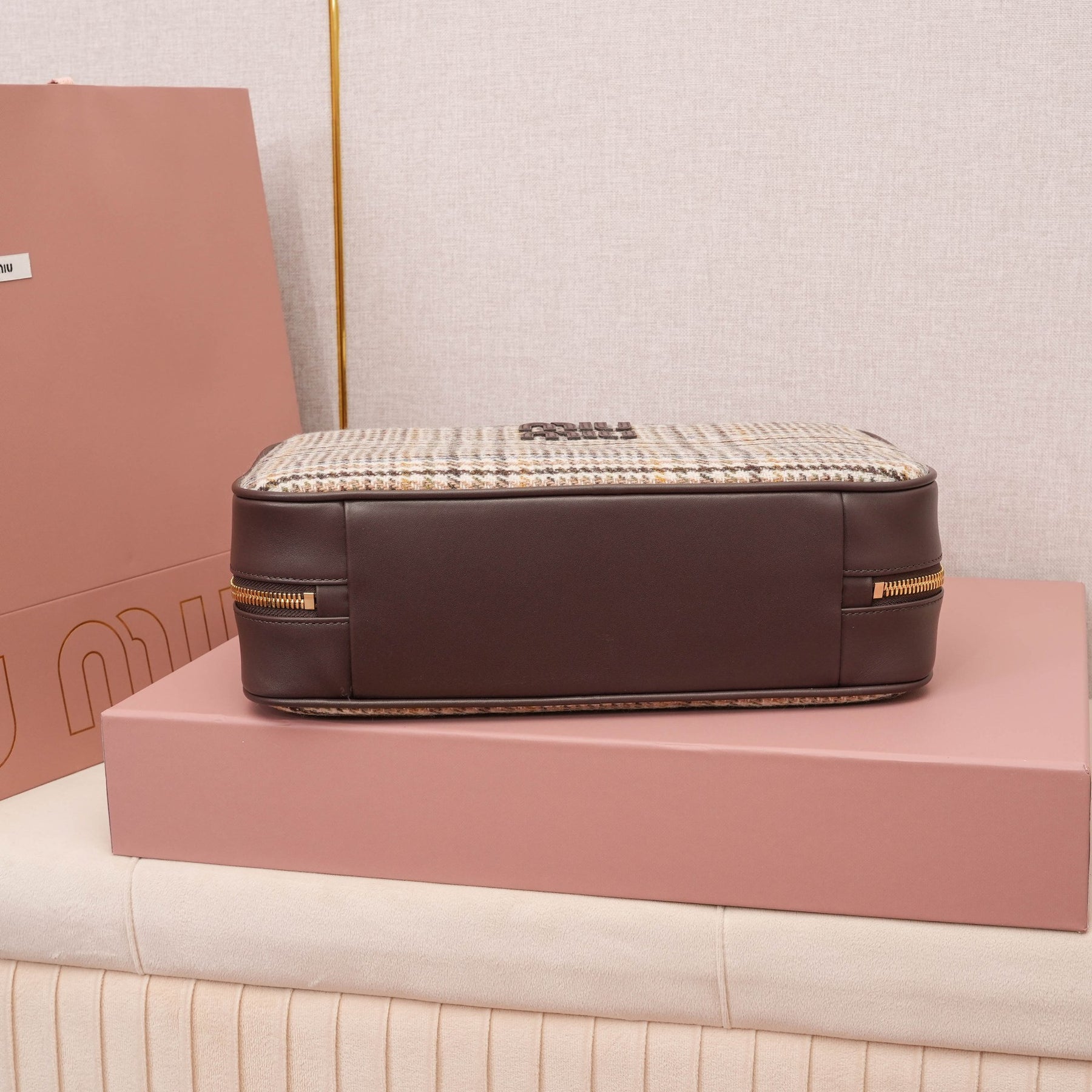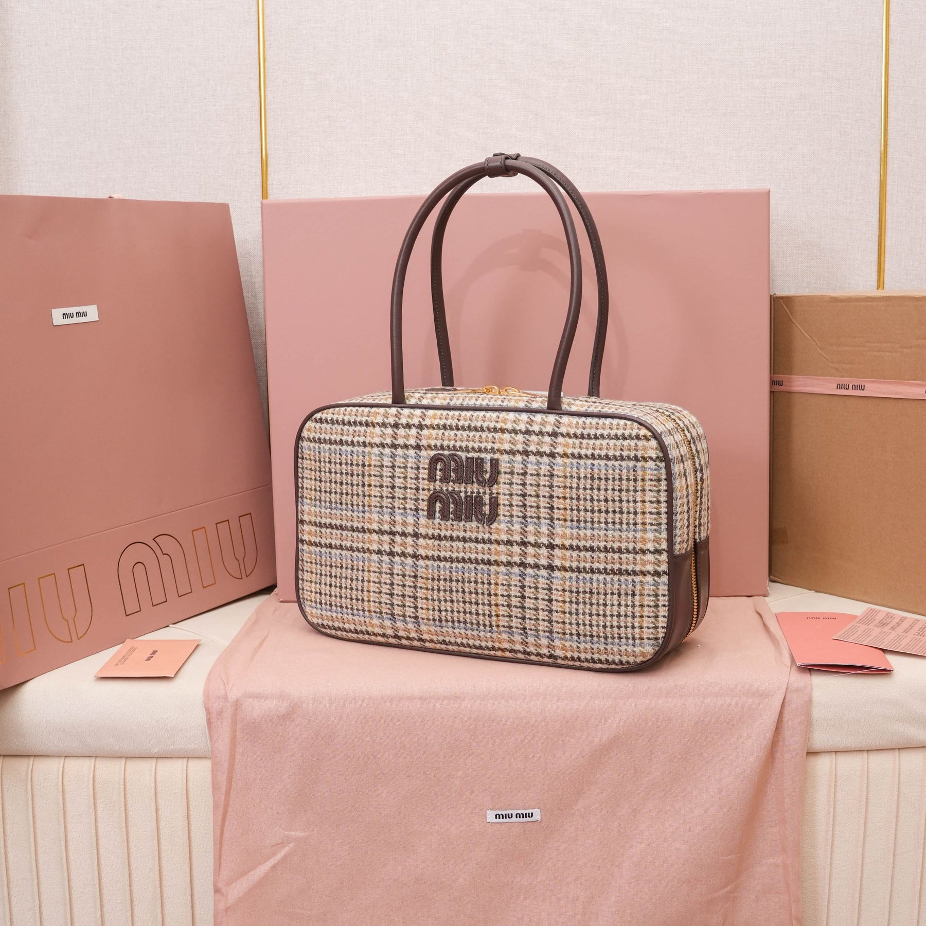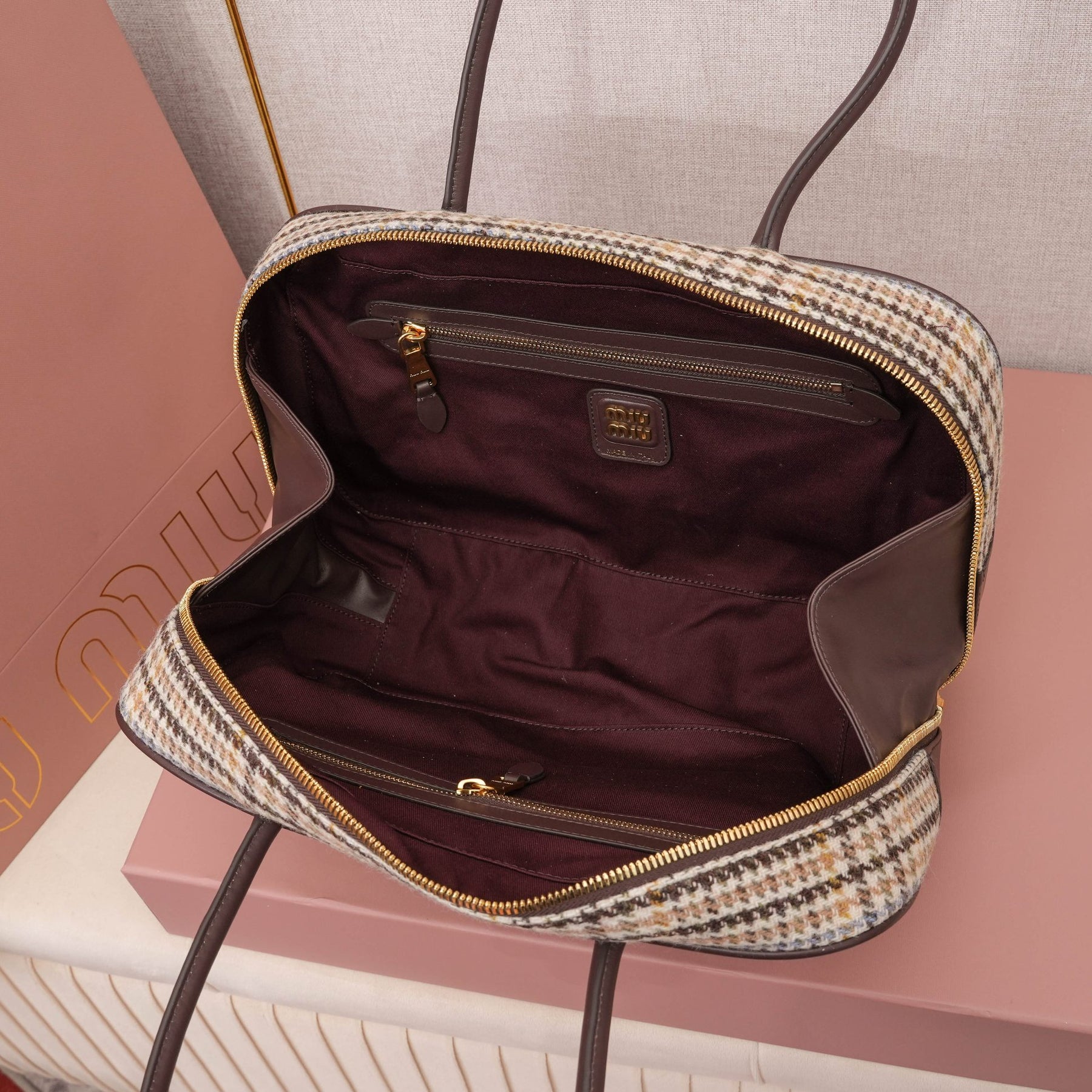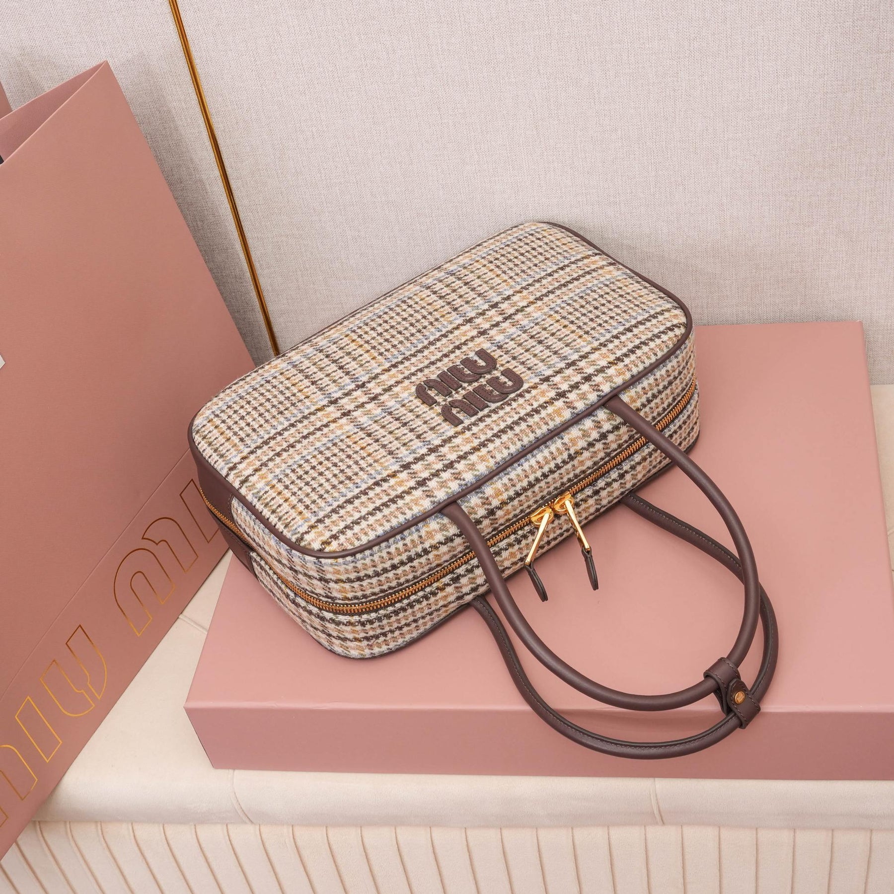 MiuMiu Houndstooth Briefcase - Stylish Wool & Calfskin Design