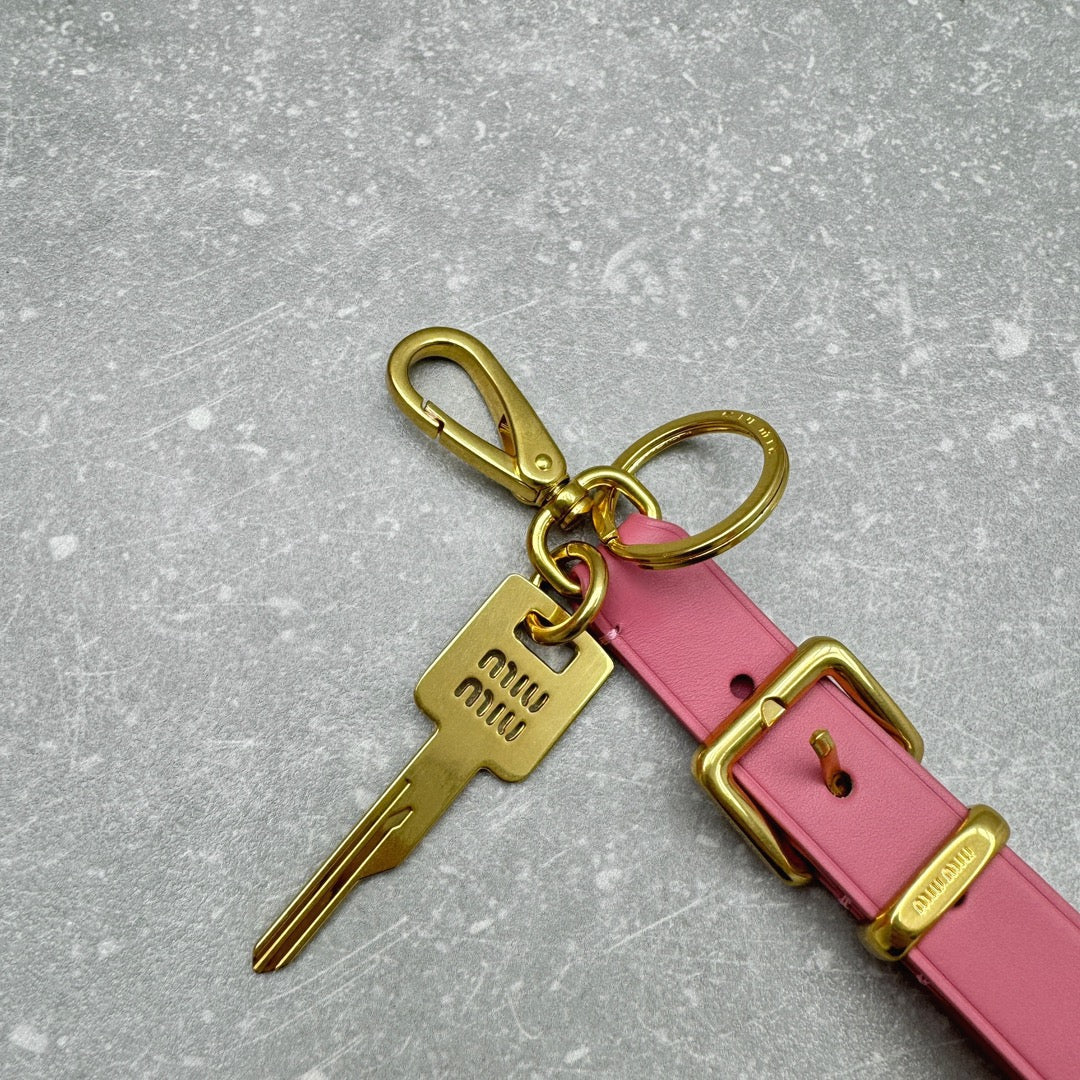 Elevate your accessory game with the MiuMiu Adjustable Keychain. This beautifully designed keychain features a hollowed-out silhouette accented by the brand's signature logo, making it a standout piece for any fashionista. Versatile in use, it can be attached to your bags or worn on your waist for a personalized touch. Perfect for DIY decorations, this keychain is an eye-catching addition to your collection. Don't miss out on this must-have fashion accessory for Spring/Summer 2024.