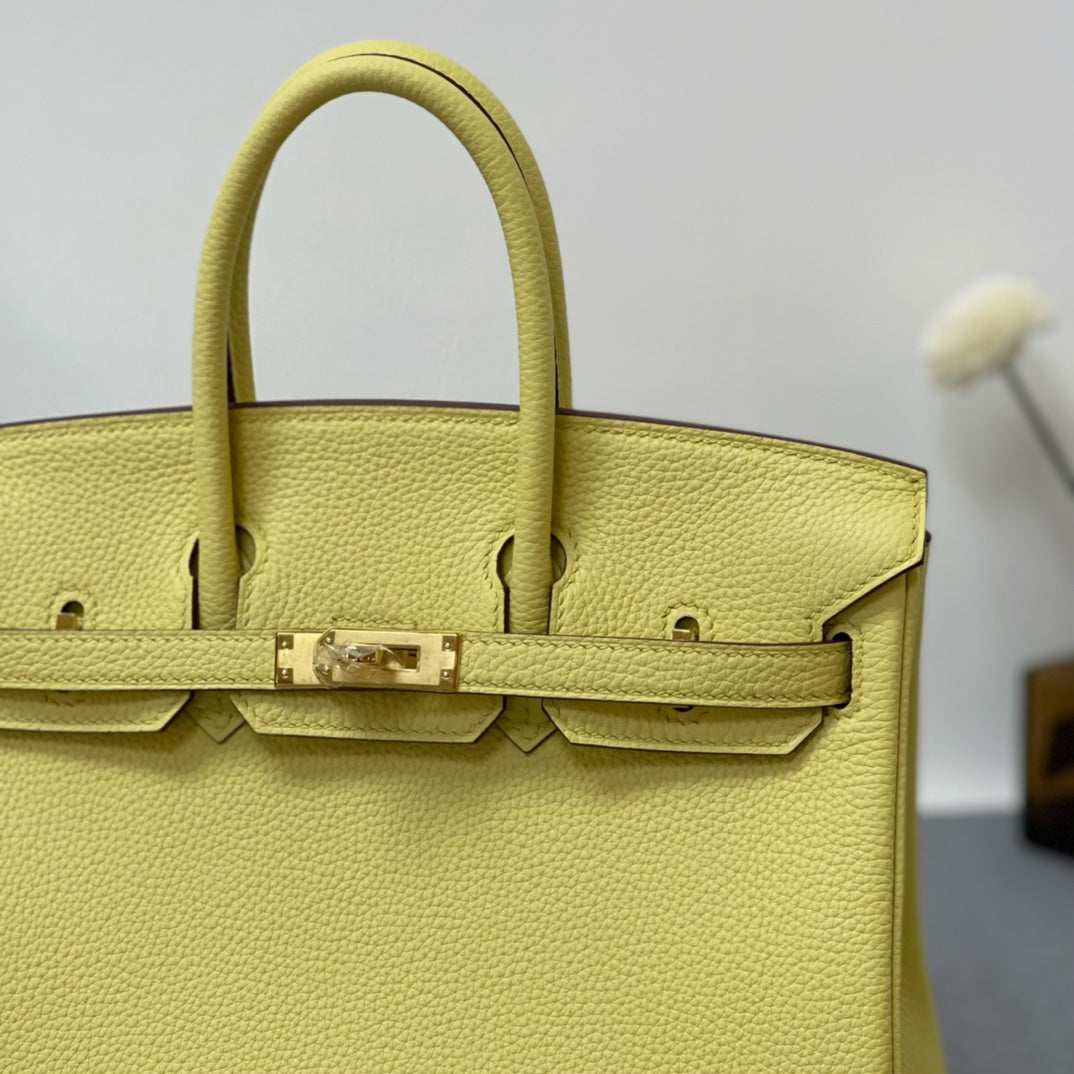 Introducing the Platinum 25 in Original Togo leather, elegantly crafted in a vibrant chicken yellow hue. This luxurious handbag is accented with a stunning gold buckle, adding a touch of sophistication to its chic design. Perfect for both everyday use and special occasions, the Original Togo texture offers durability while exuding timeless elegance. Elevate your accessory collection with this exquisite piece that seamlessly combines style and practicality.