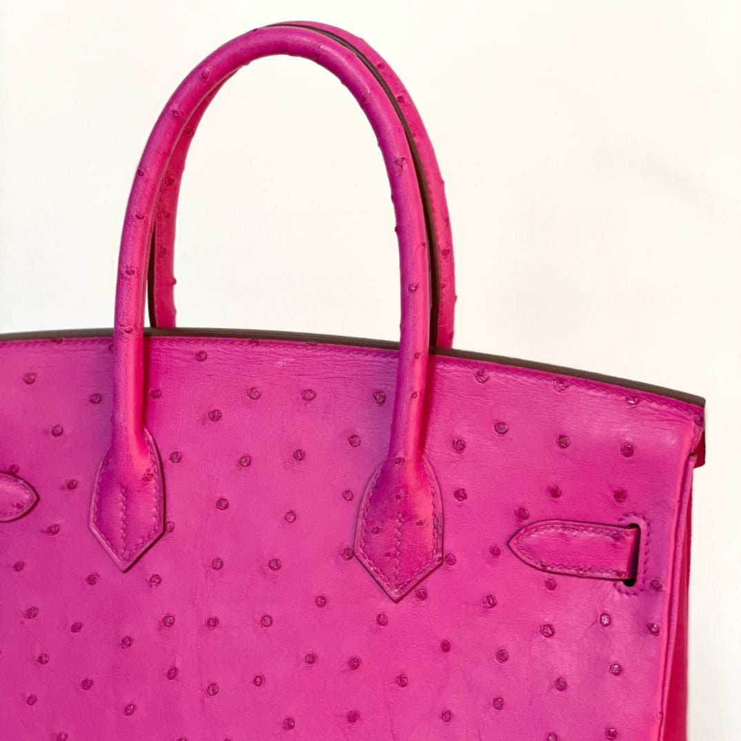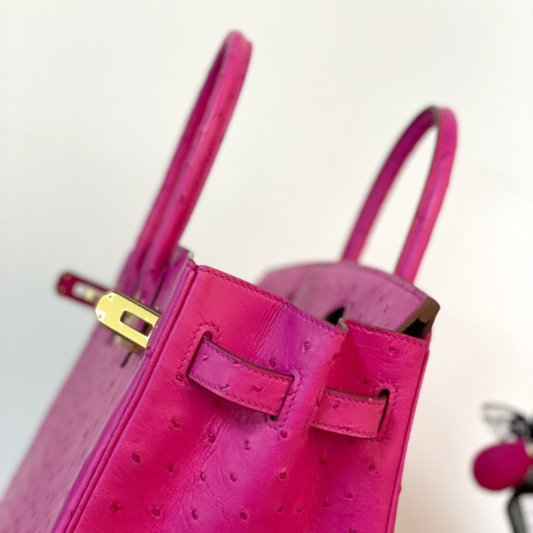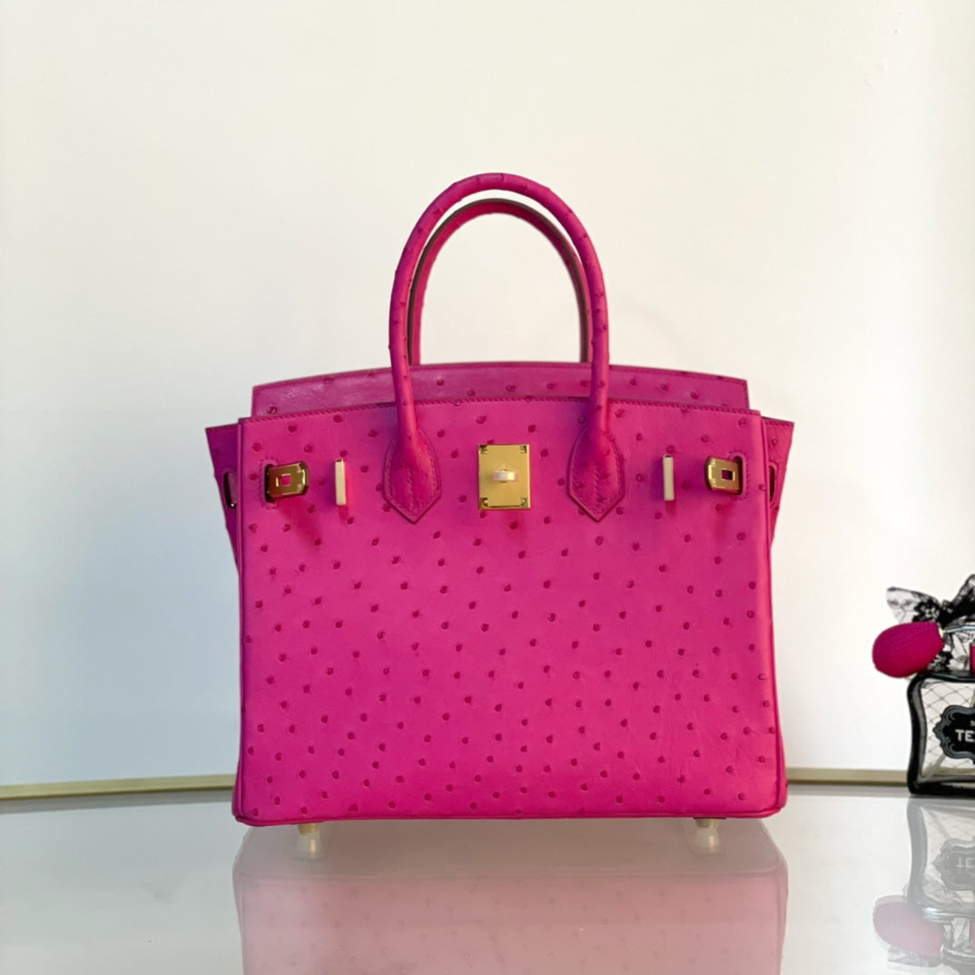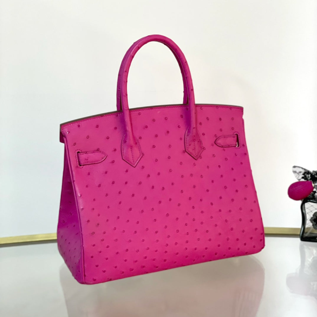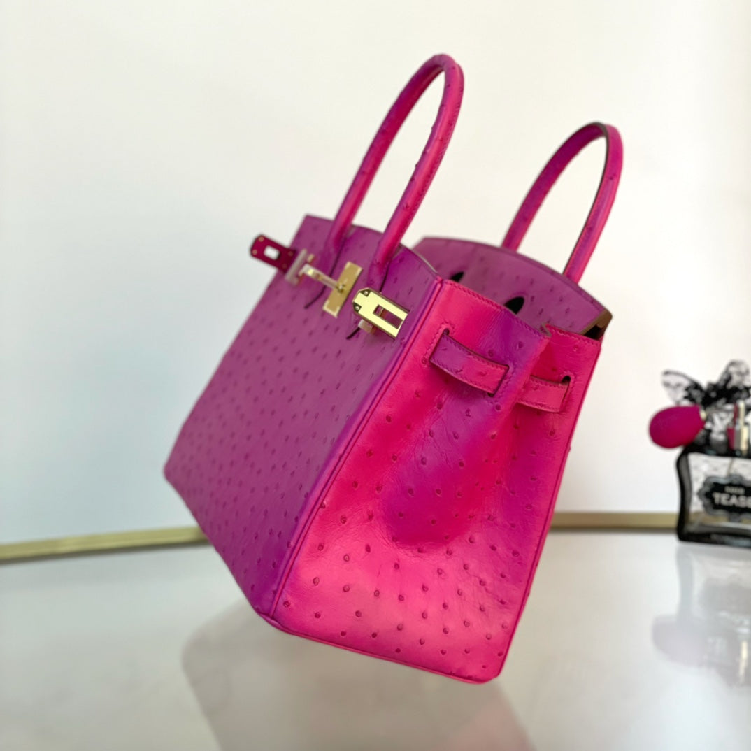 Discover the elegance of our Platinum 30 handbag, crafted from luxurious ostrich leather. This stunning accessory features a beautiful pink hue complemented by a striking gold buckle, making it the perfect addition to any outfit. Elevate your style with a blend of sophistication and unique textures. Ideal for both everyday use and special occasions, this handbag is designed for those who appreciate exquisite craftsmanship and high-end fashion. Embrace luxury with the Platinum 30 and make a statement wherever you go.
