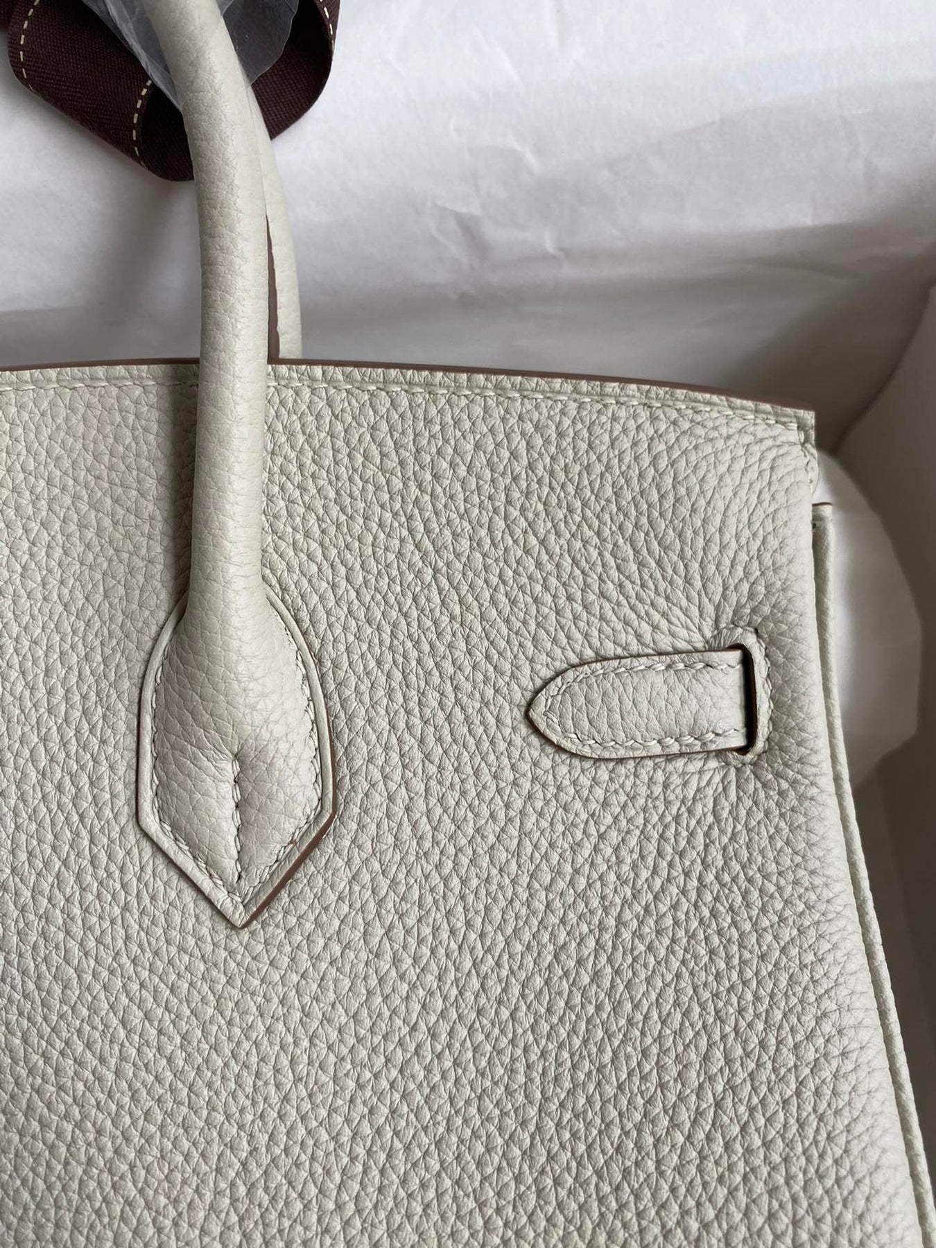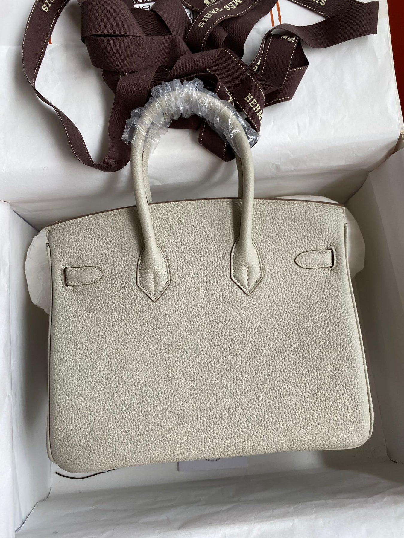 Pearl Gray Leather Birkin Bag - 25cm Togo with Silver Buckle
