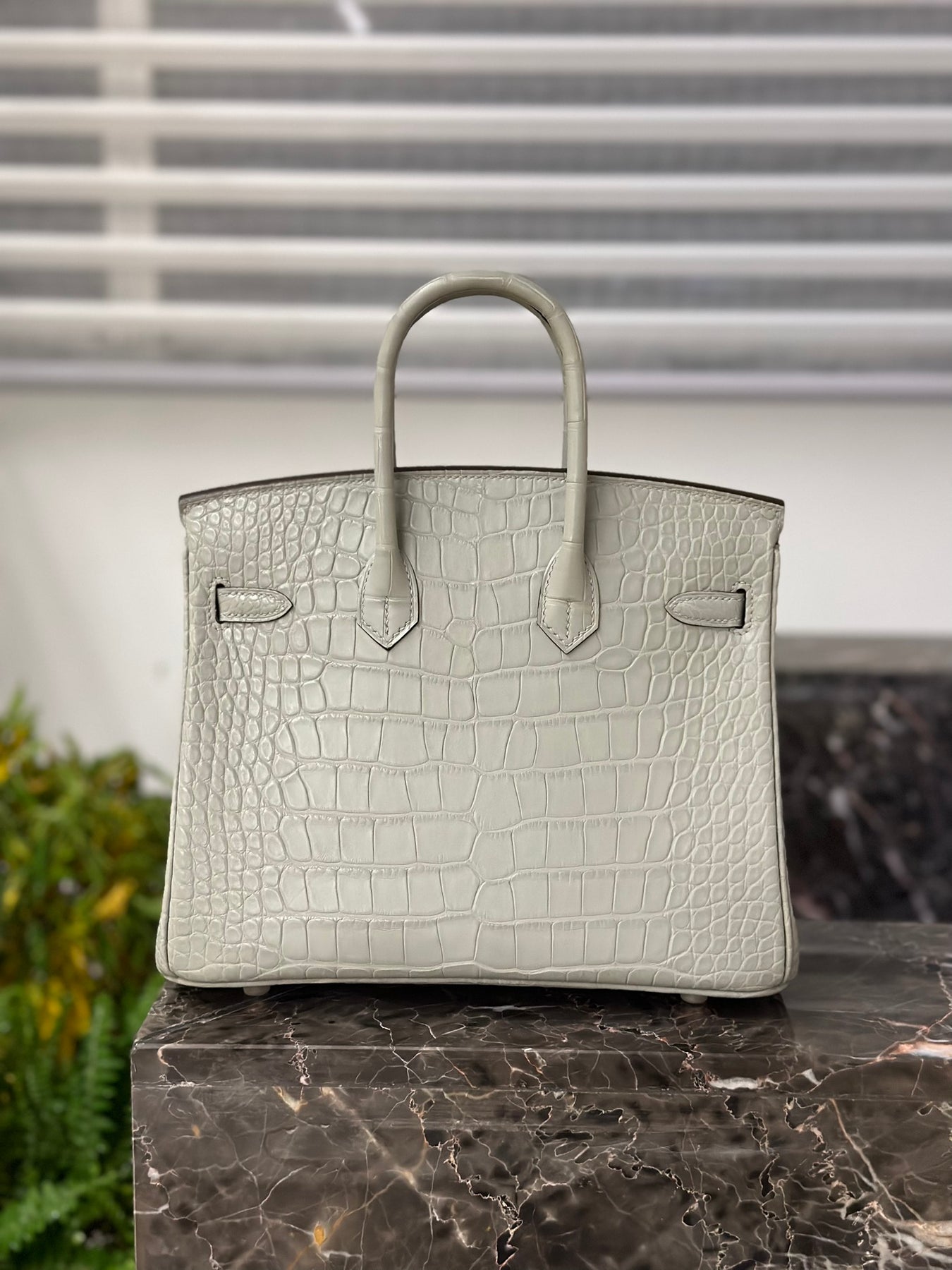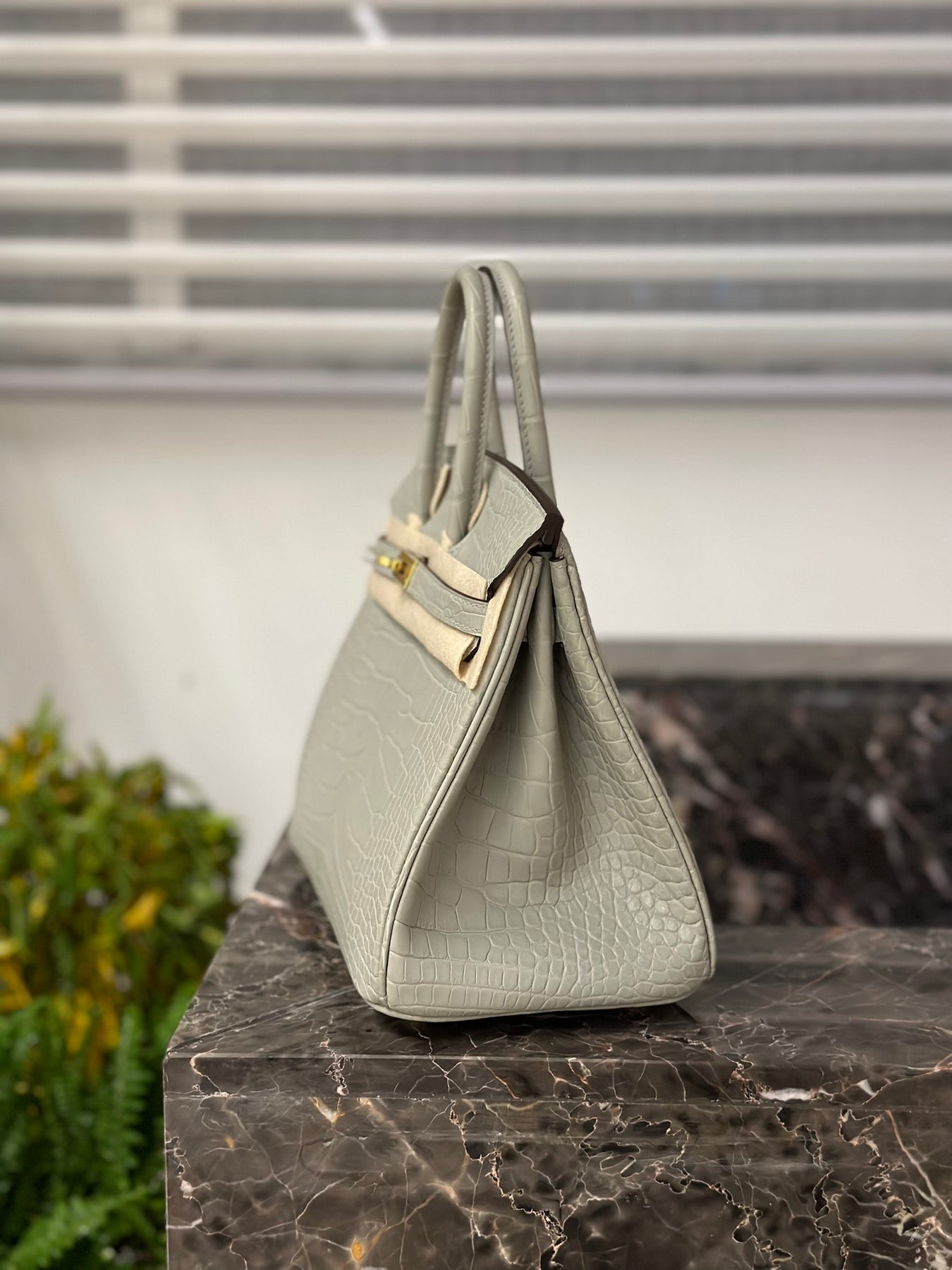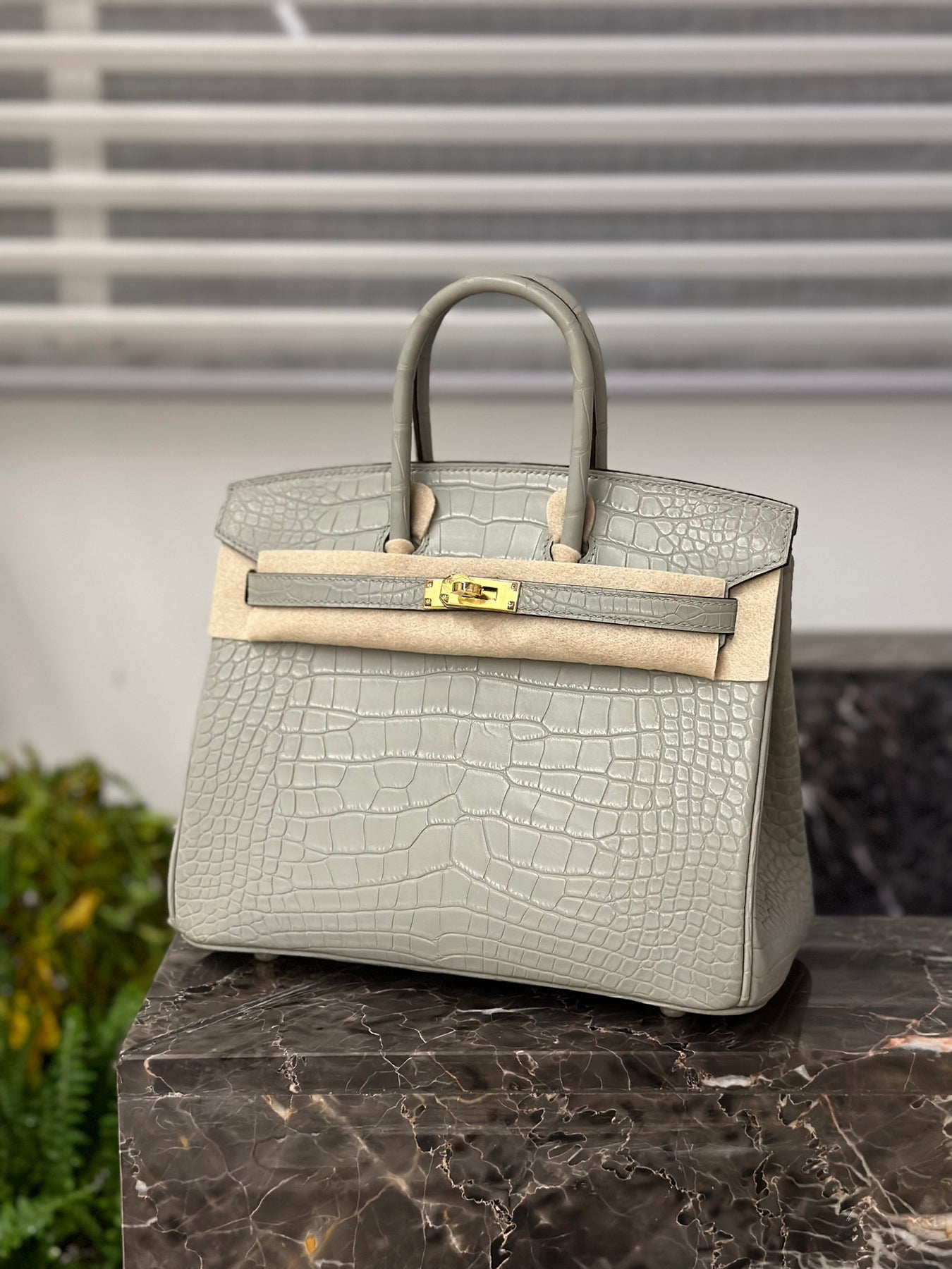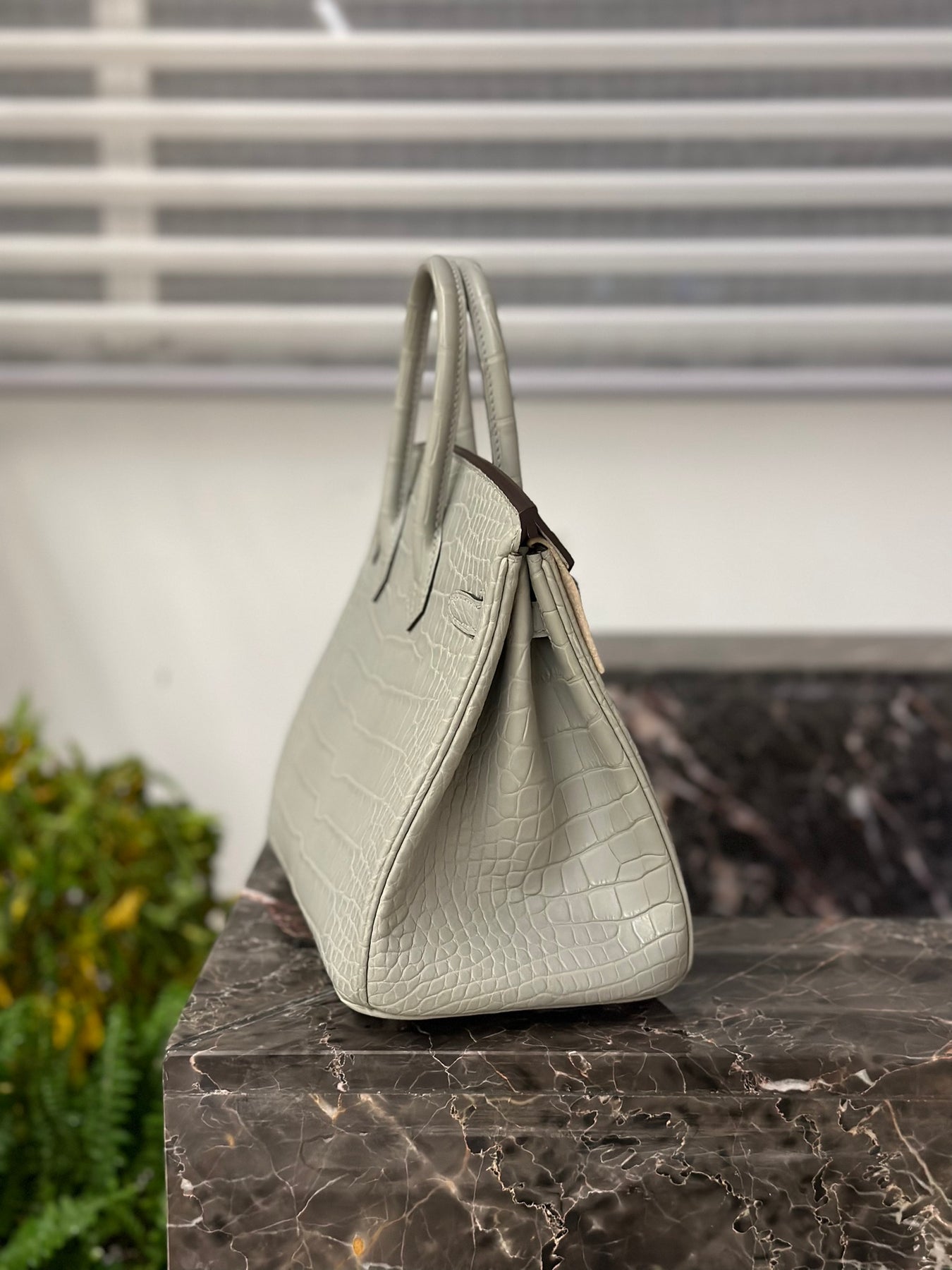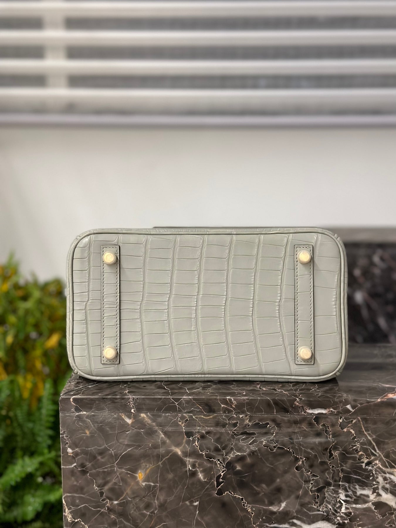 Pearl Gray Matte Leather American Belt with Gold Buckle