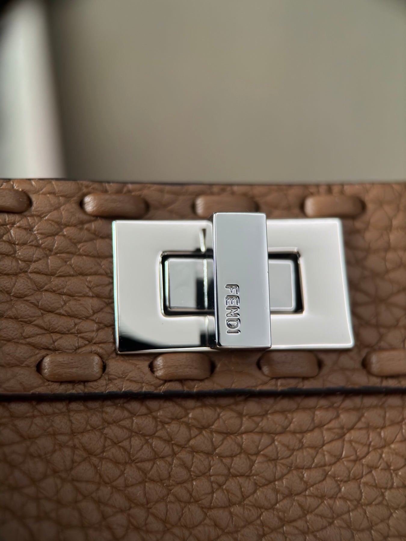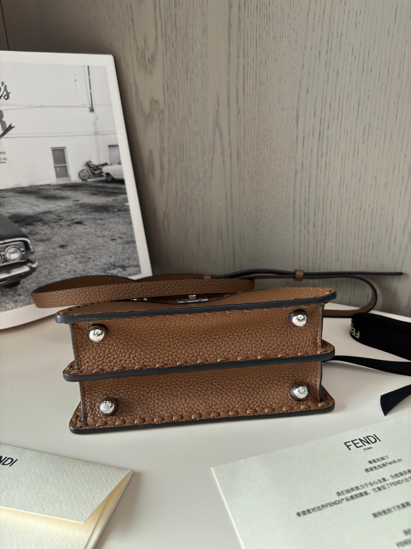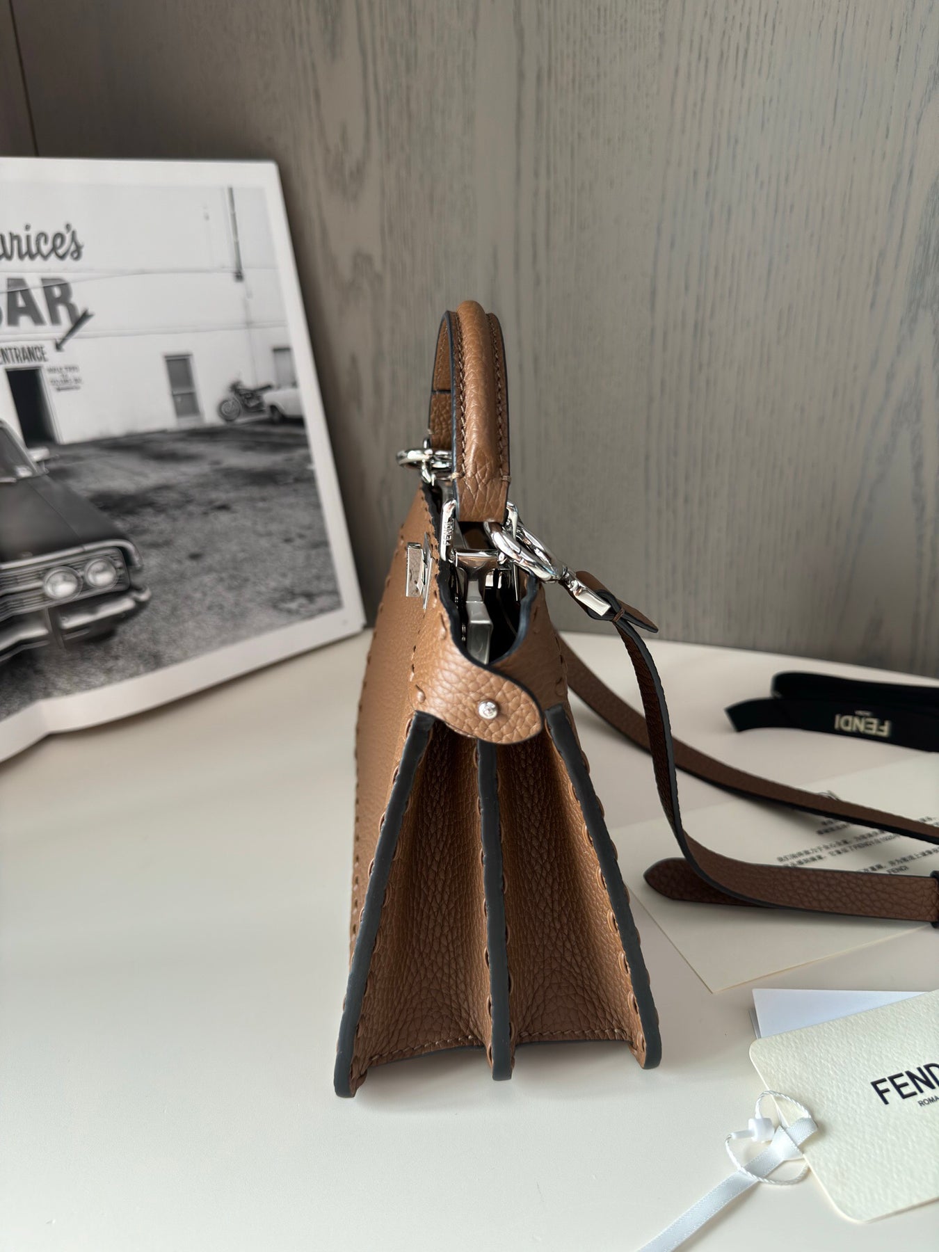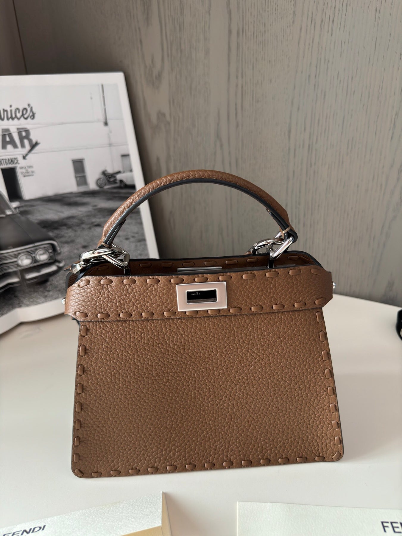 Introducing the Peekaboo ISeeU Petite Brown, a luxurious handbag crafted from Italian imported pebbled cowhide. This exquisite piece boasts a supple touch and showcases artisanal craftsmanship through its purely handmade detailing. With its elegant 20cm design, this bag effortlessly combines style and sophistication, making it the perfect accessory for any occasion. Elevate your fashion game with this high-end essential that exudes both versatility and charm.