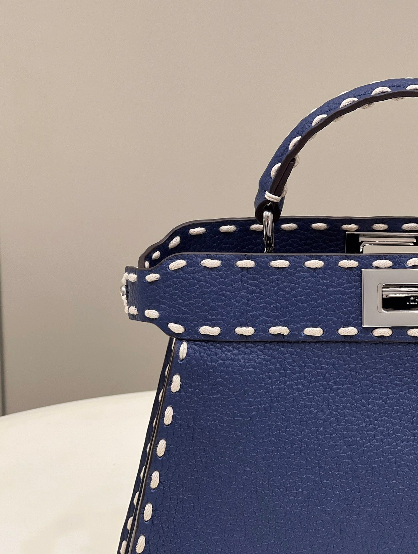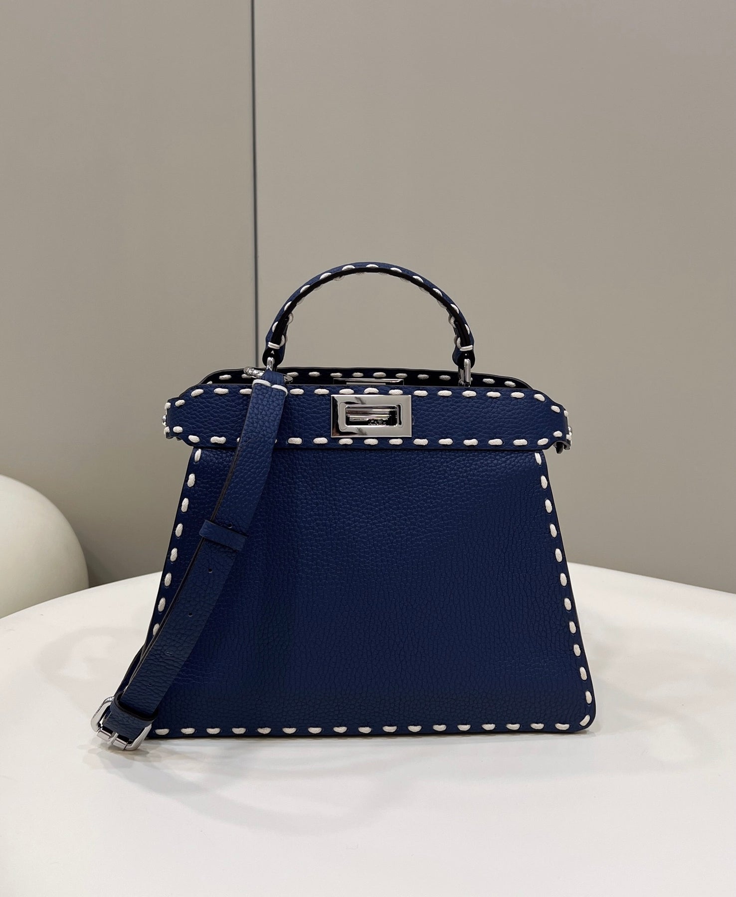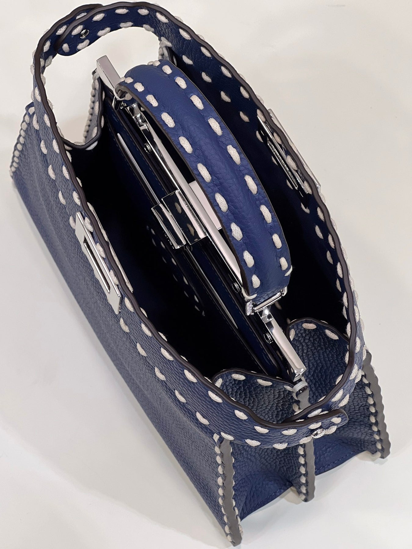 Discover the elegance of the PEKKABO Small Handbag, crafted from exclusive custom-made calfskin for an ultra-fine feel. Featuring exquisite handmade outer stitching and a timeless organ design, this handbag embodies sophistication and charm. Ideal for those who appreciate a unique, generous personality in their accessories. With dimensions of 27×11×20 cm, it offers the perfect combination of style and functionality. Style number 80013, available in a stunning blue color. Elevate your handbag collection with this classic piece today!