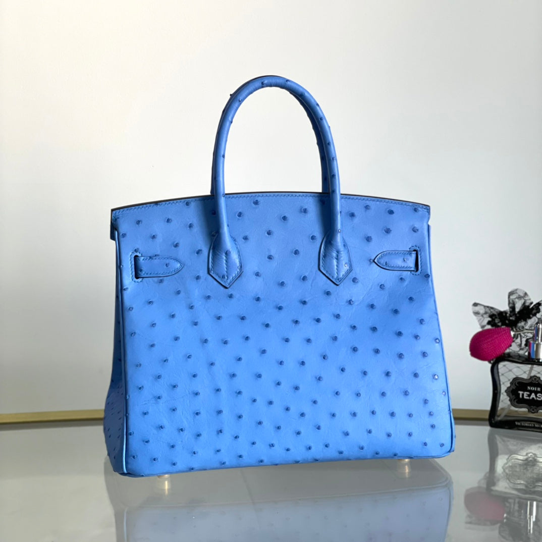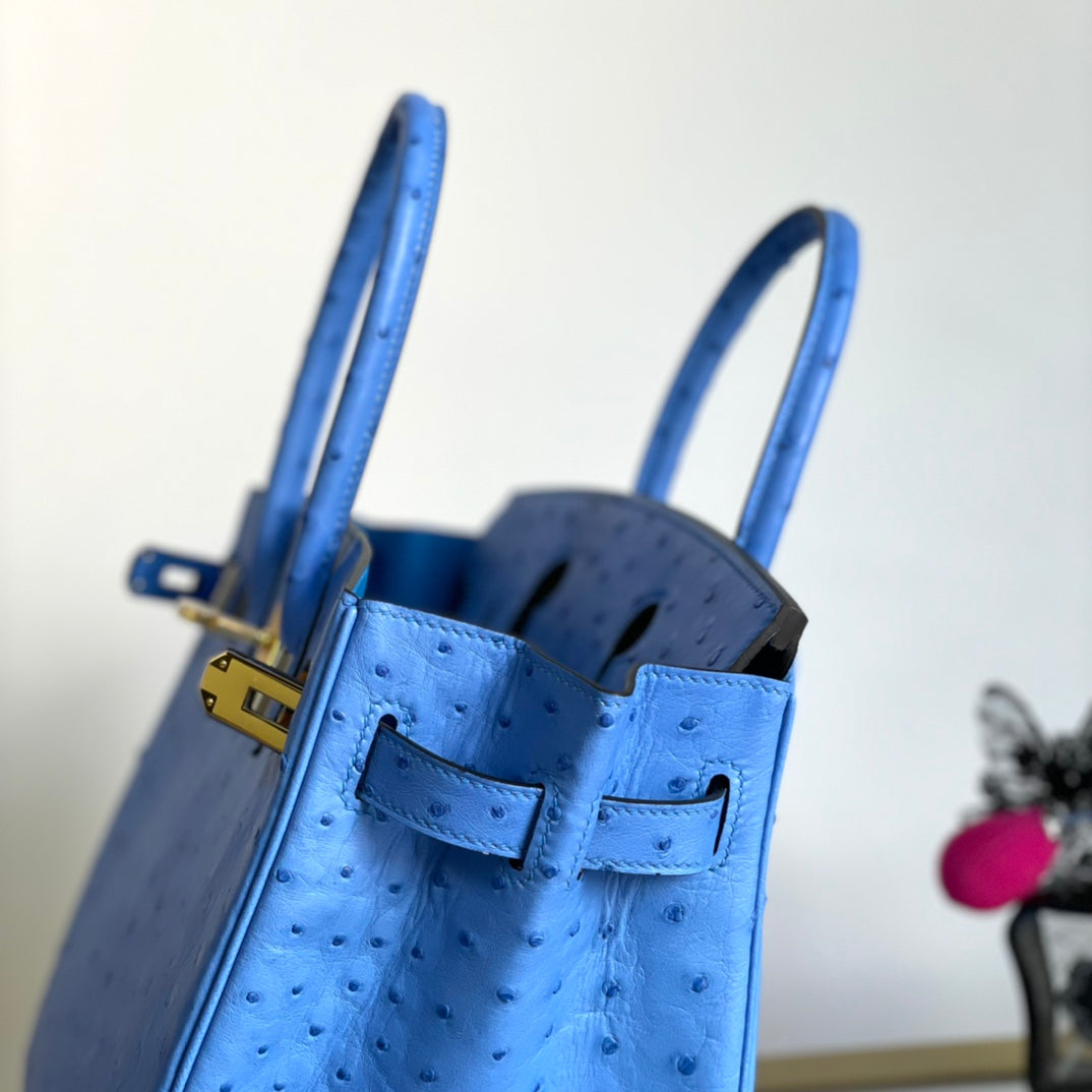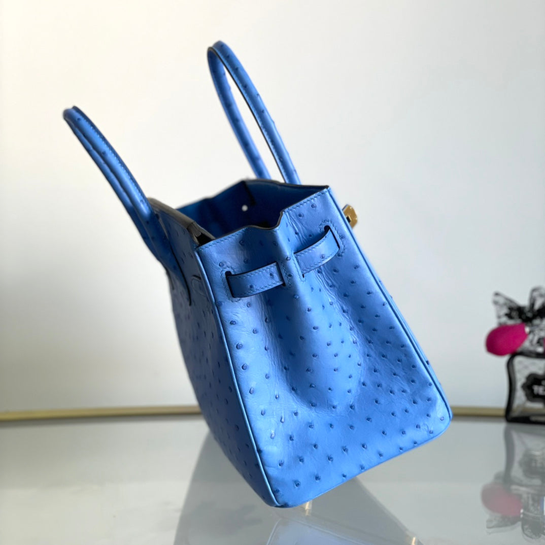 Platinum 30 Ostrich Skin Water Demon Blue Belt with Gold Buckle