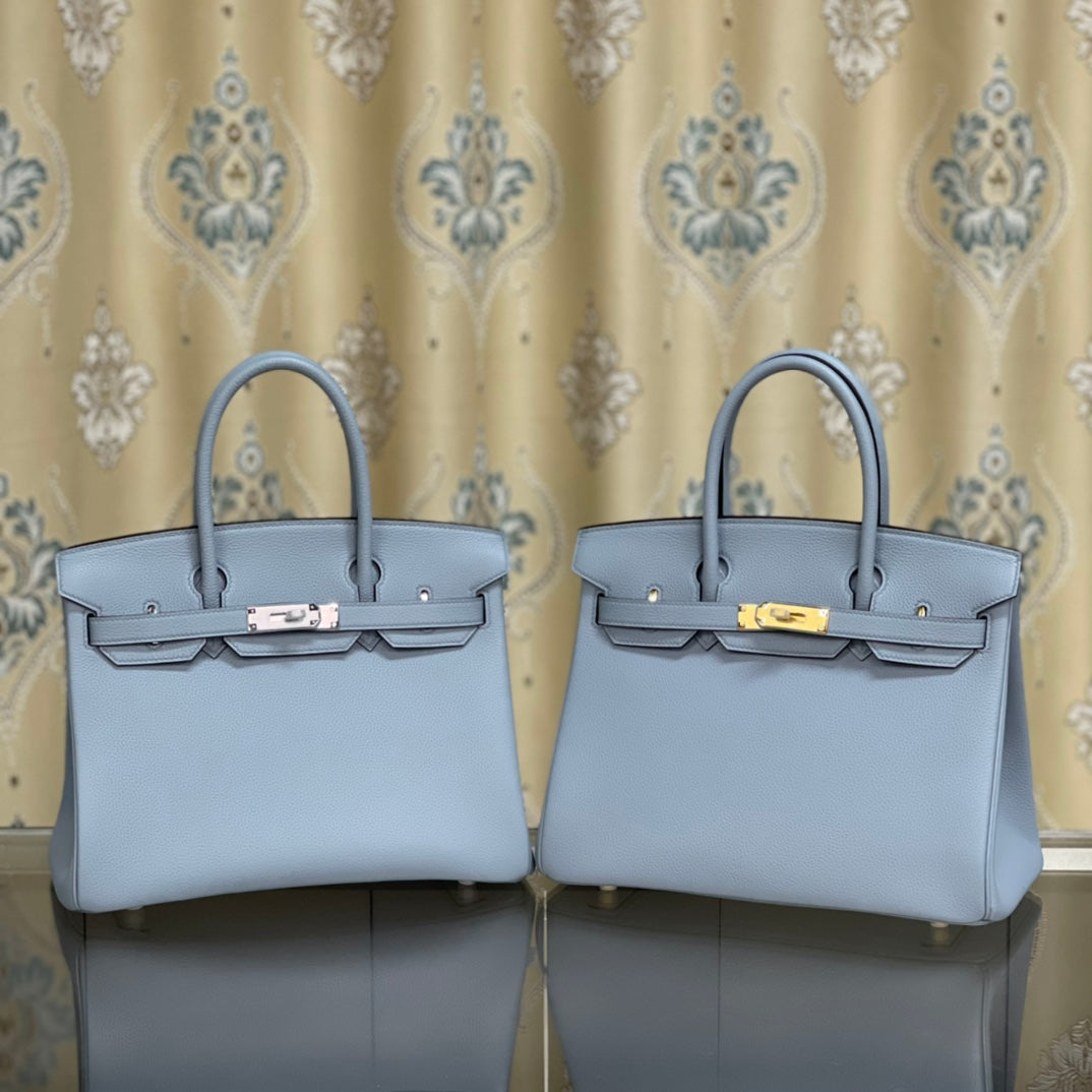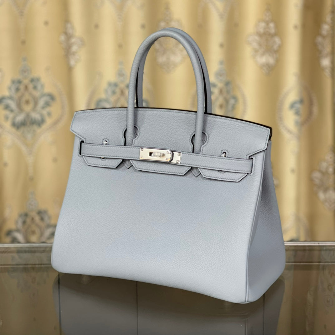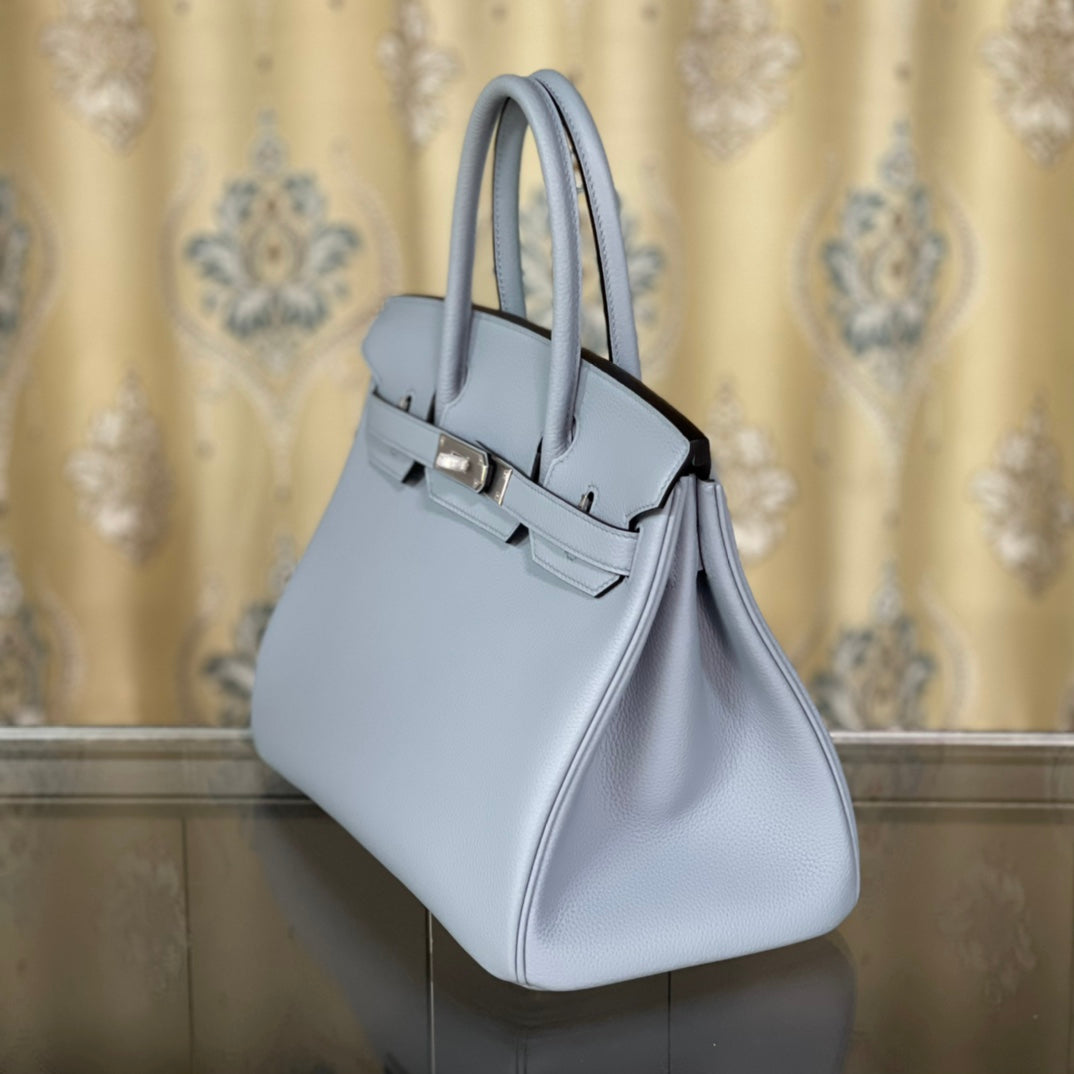 Platinum 30 Togo Leather Plate - Linen Blue with Silver Buckle