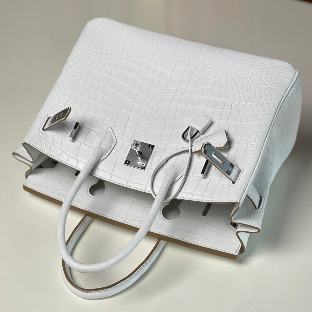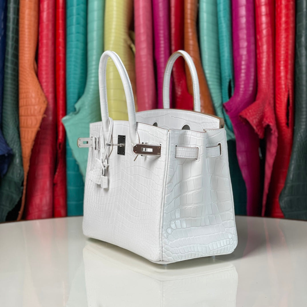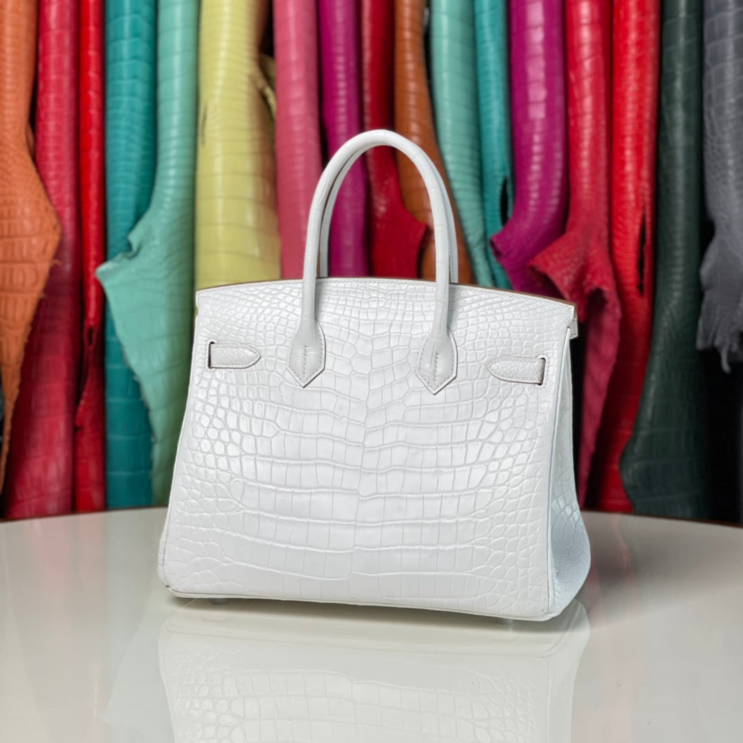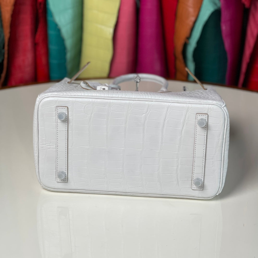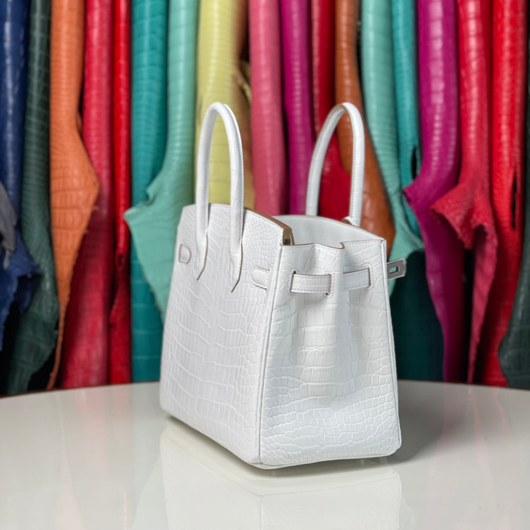 Discover our new arrival, the Platinum 30 White Leather Belt with a silver buckle. Meticulously hand-sewn using premium craftsmanship, this belt features durable stainless steel hardware that ensures both style and longevity. Elevate your wardrobe with this elegant accessory, perfect for any occasion.