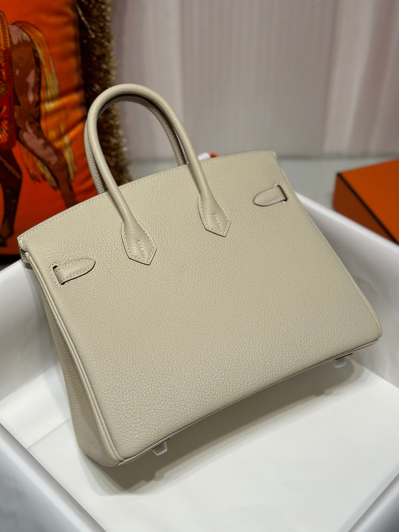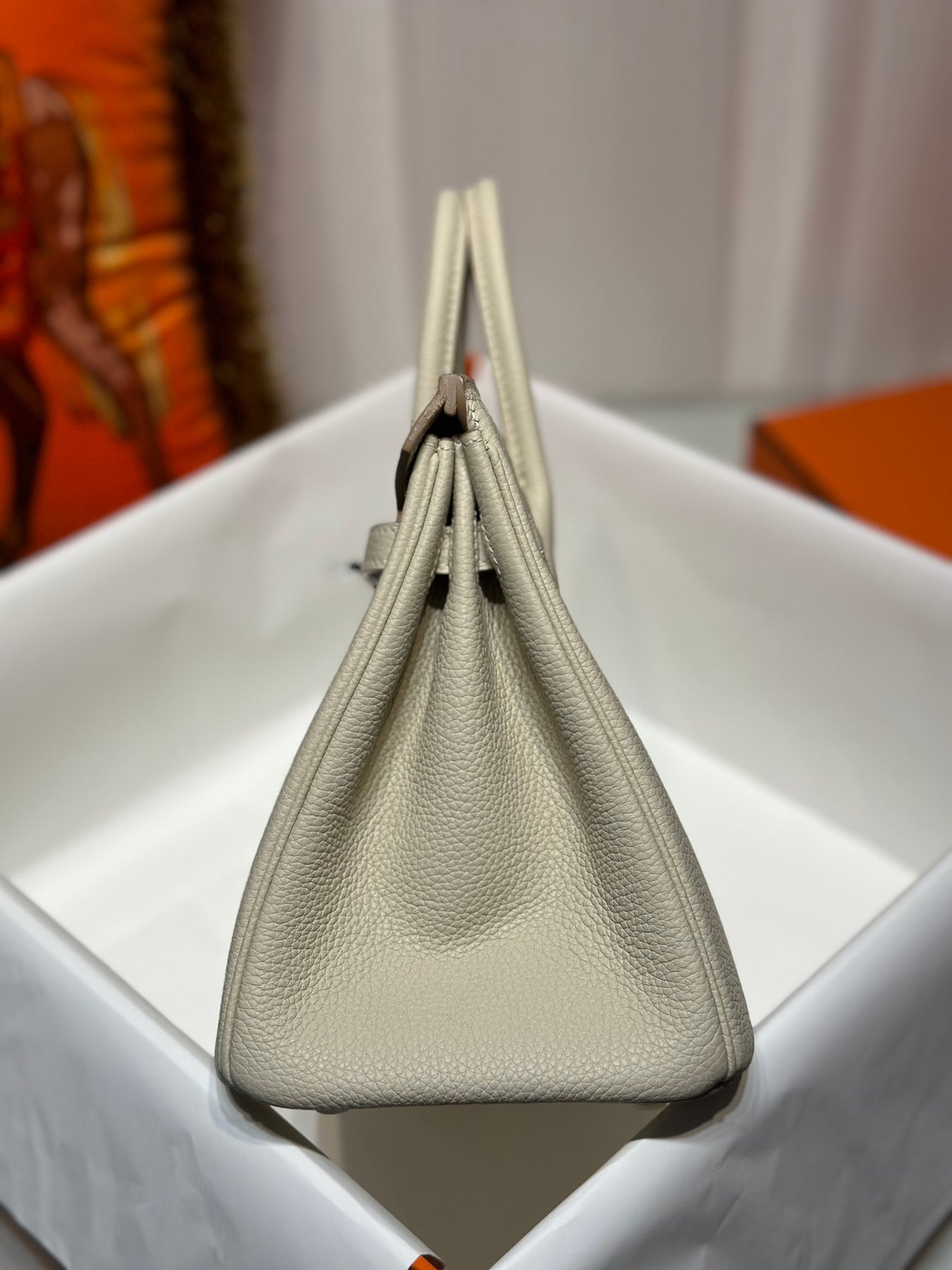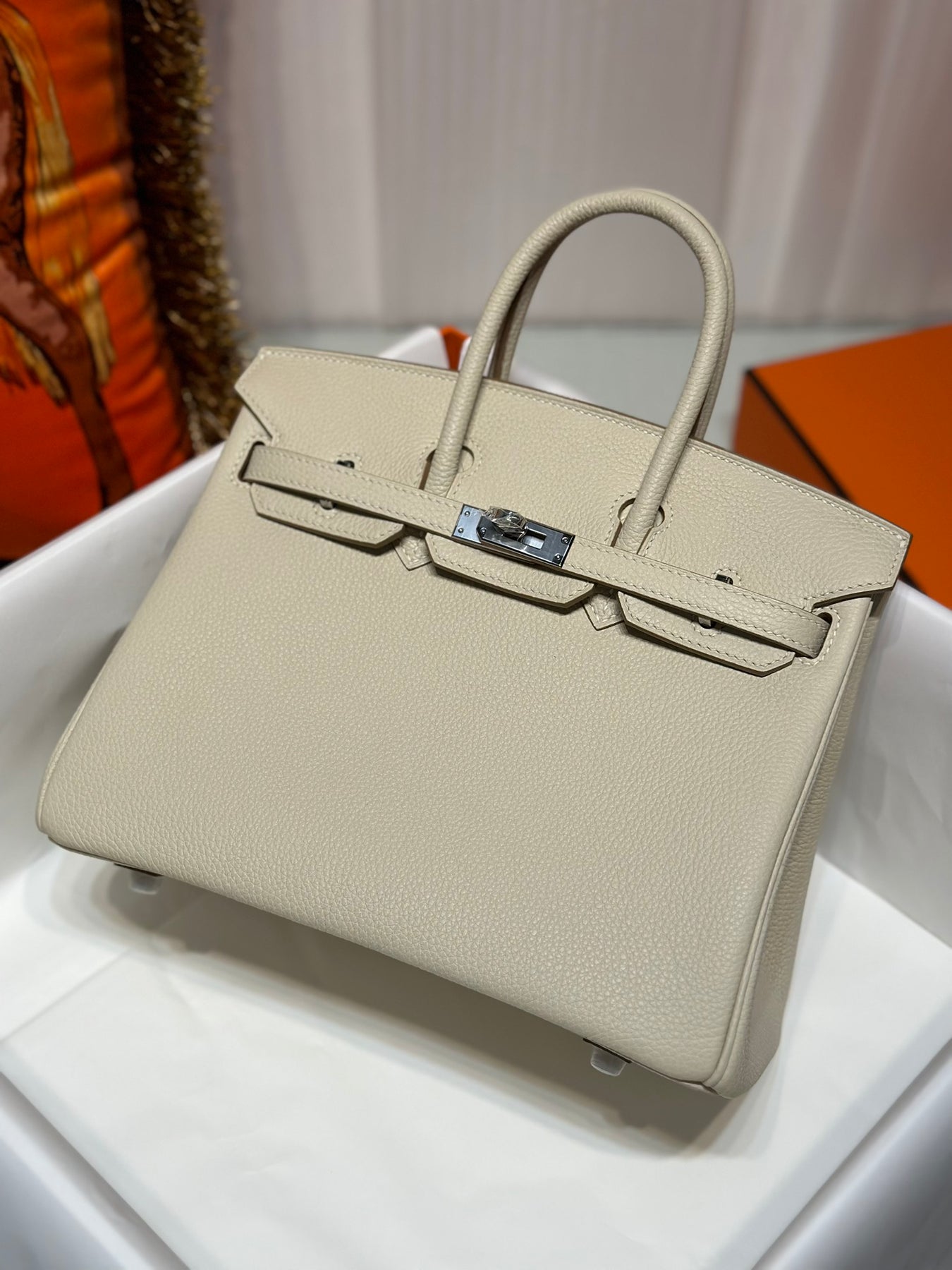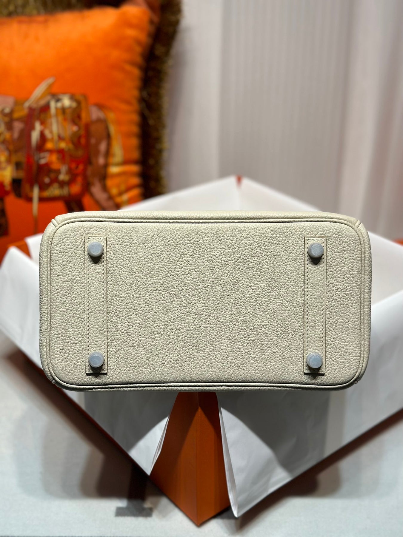 Platinum Togo Leather Milkshake White Handbag with Silver Buckle