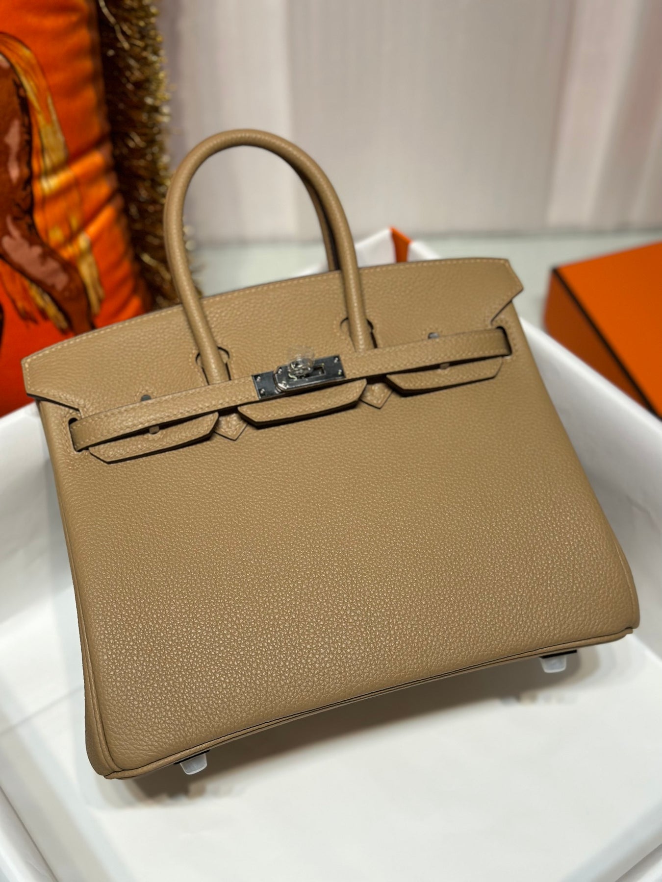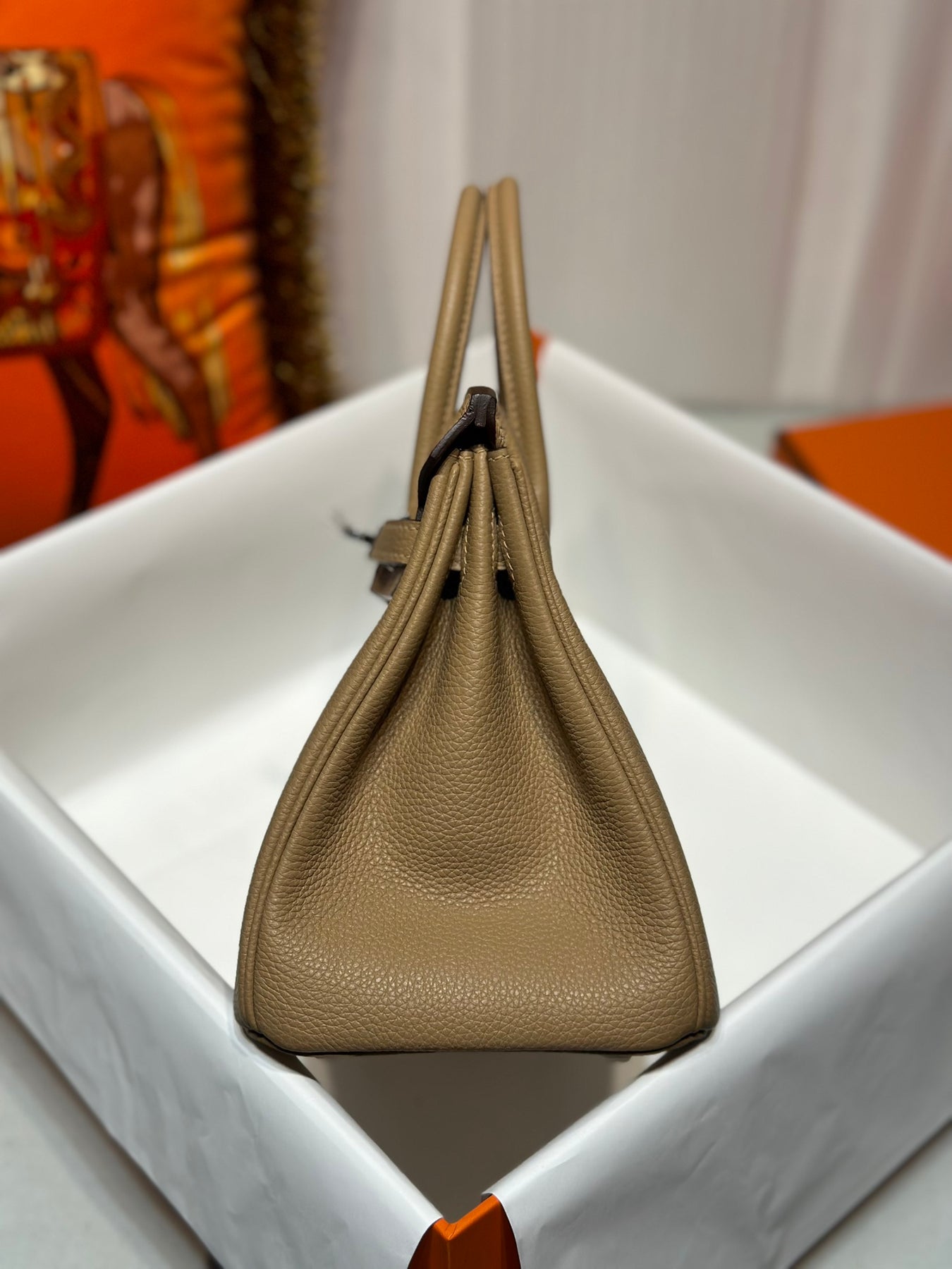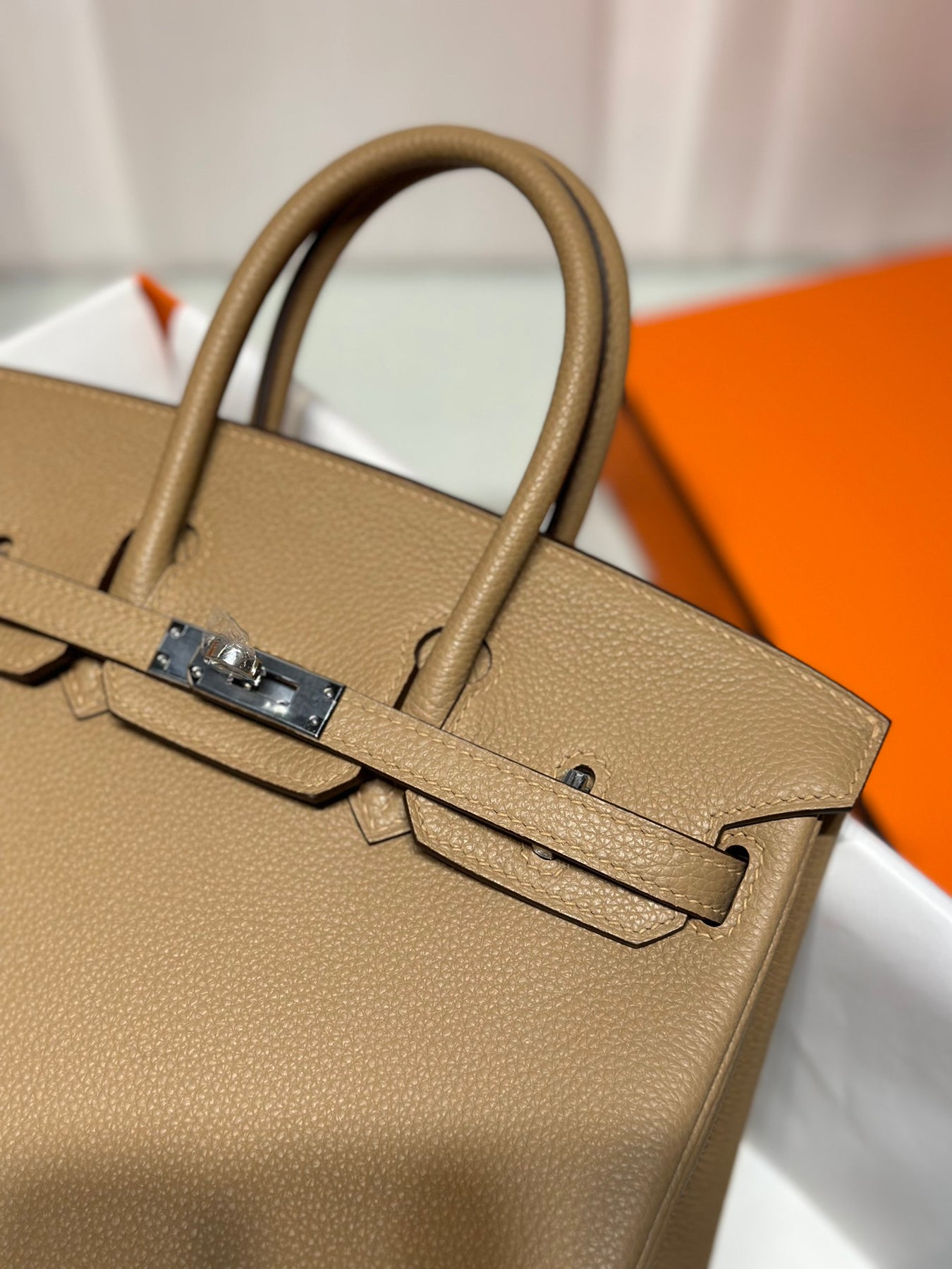 Discover the elegance of our Platinum Togo handbag in a sophisticated milk tea color, complemented by a sleek silver buckle. Crafted from high-quality Togo leather, this bag offers durability and a luxurious feel. Its versatile hue ensures it pairs beautifully with any outfit, making it the perfect accessory for both casual and formal occasions. Elevate your style with this timeless piece that combines practicality and sophistication seamlessly.