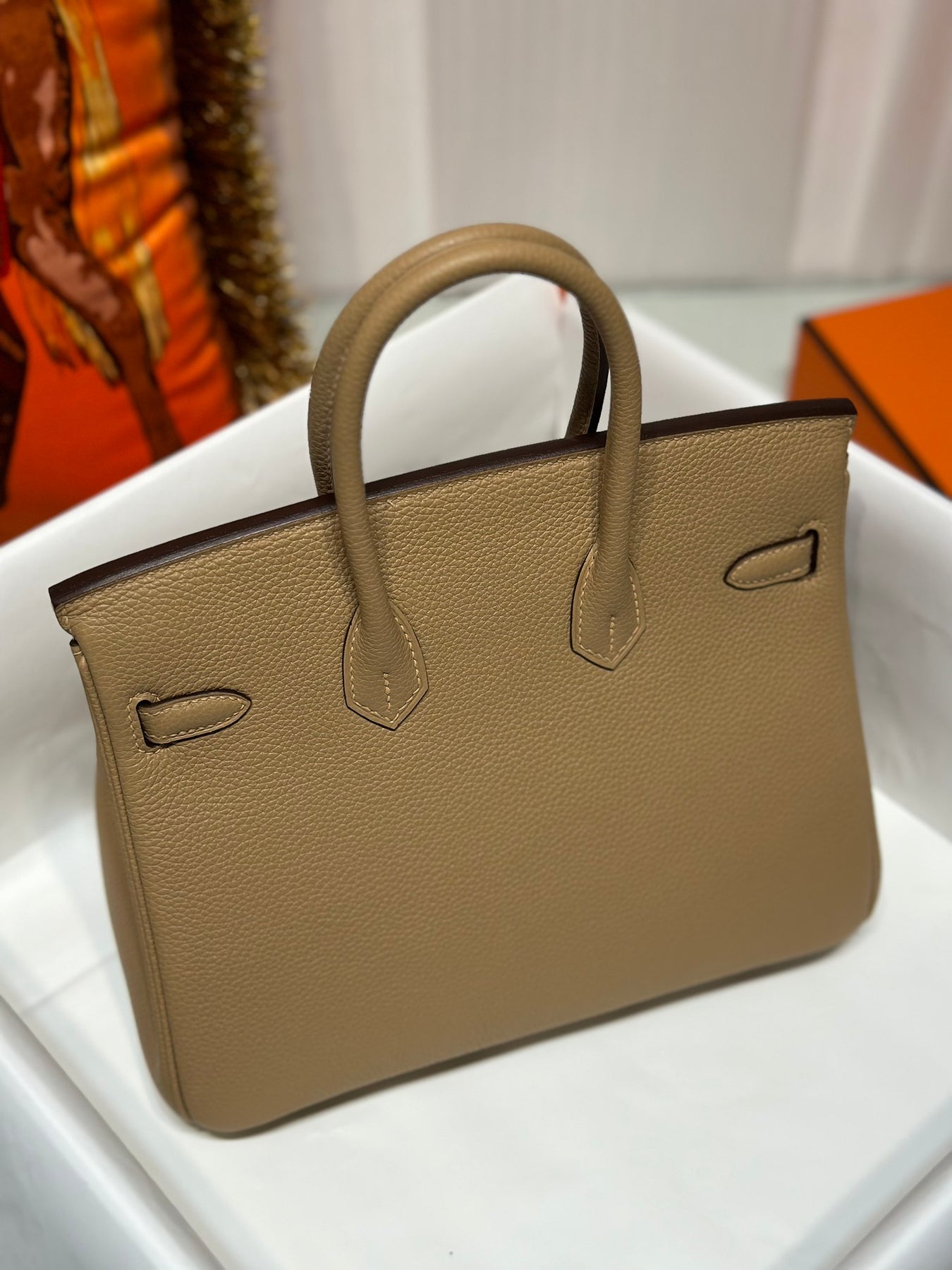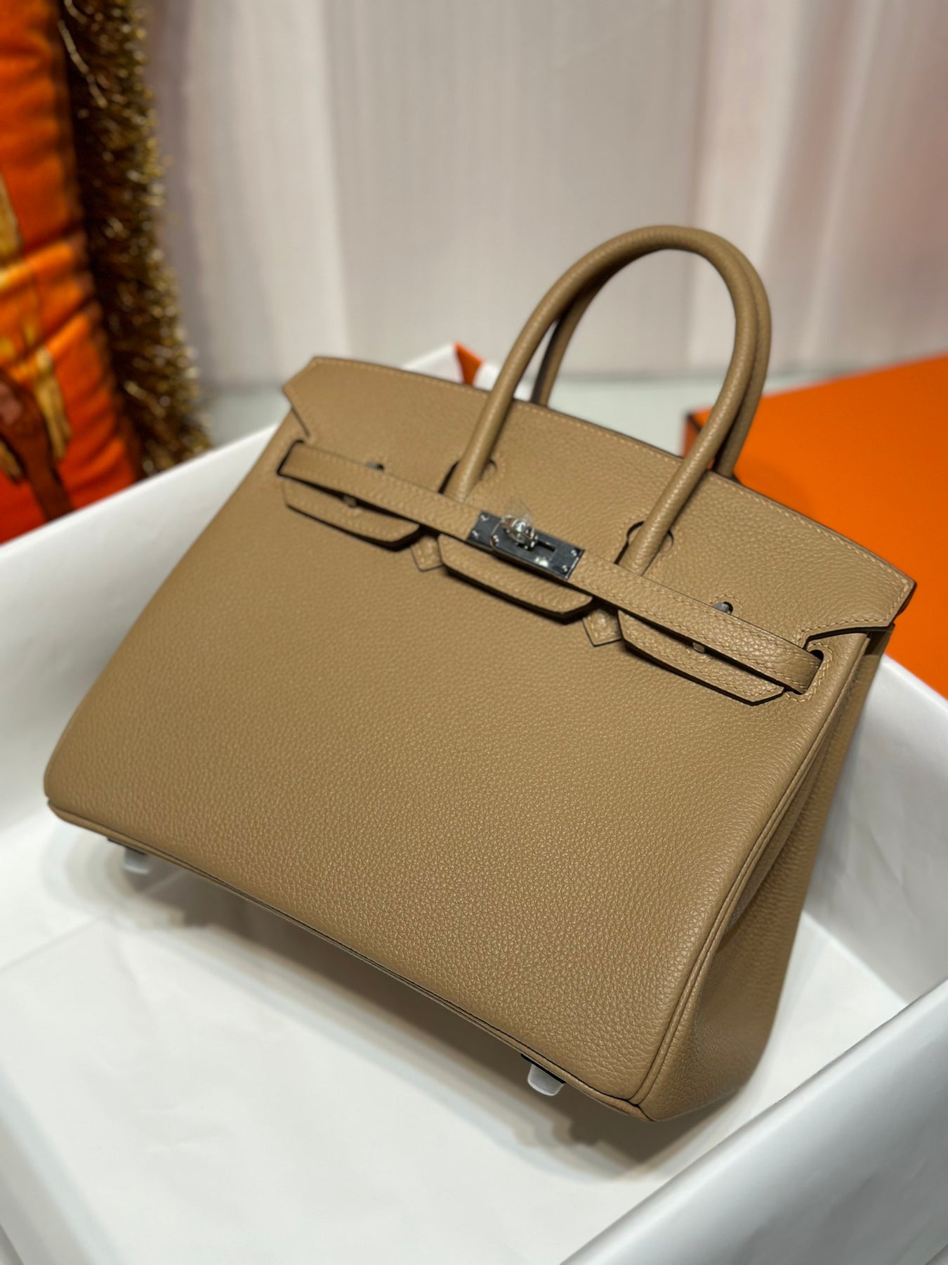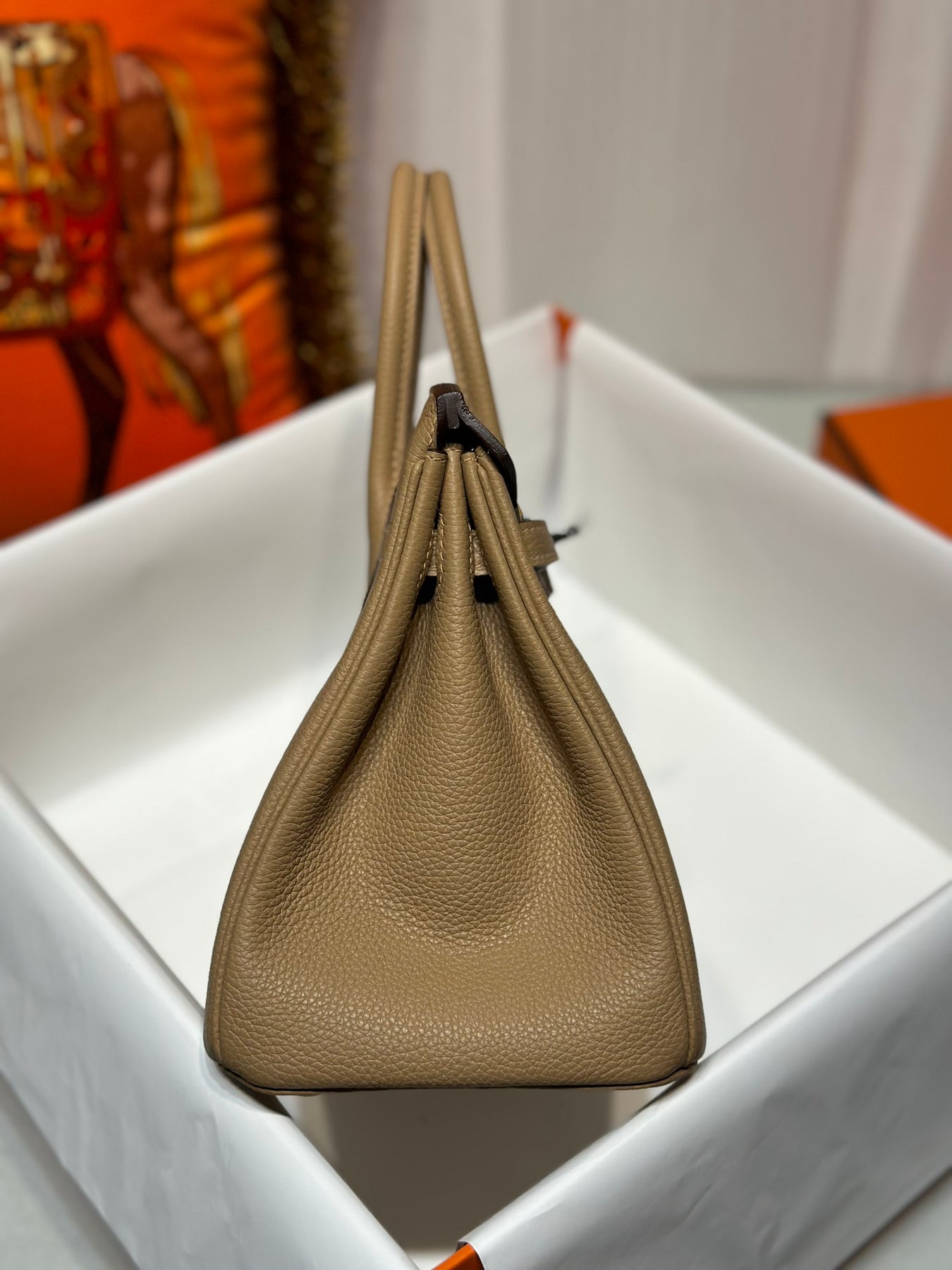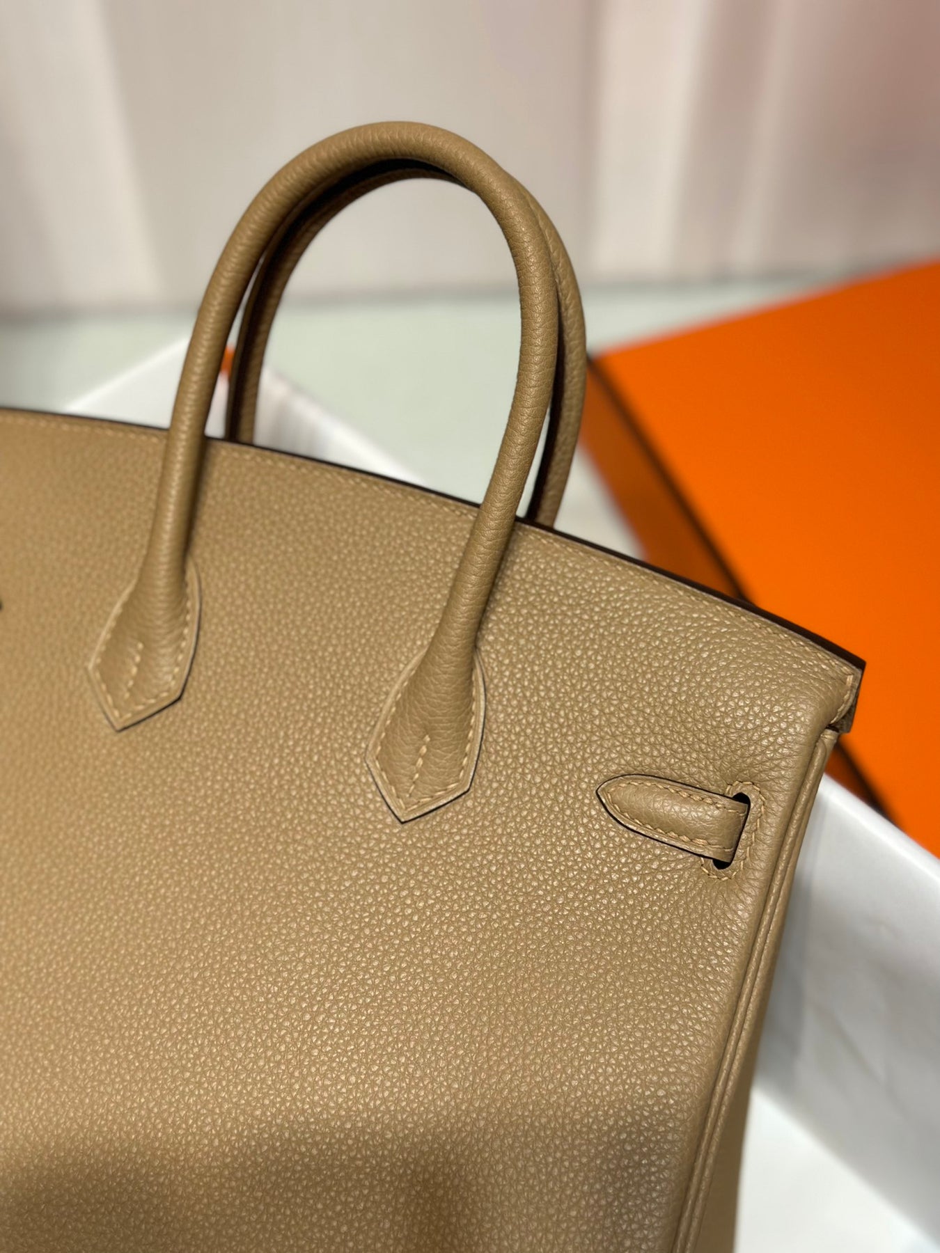 Discover the elegance of our Platinum Togo handbag in a sophisticated milk tea color, complemented by a sleek silver buckle. Crafted from high-quality Togo leather, this bag offers durability and a luxurious feel. Its versatile hue ensures it pairs beautifully with any outfit, making it the perfect accessory for both casual and formal occasions. Elevate your style with this timeless piece that combines practicality and sophistication seamlessly.