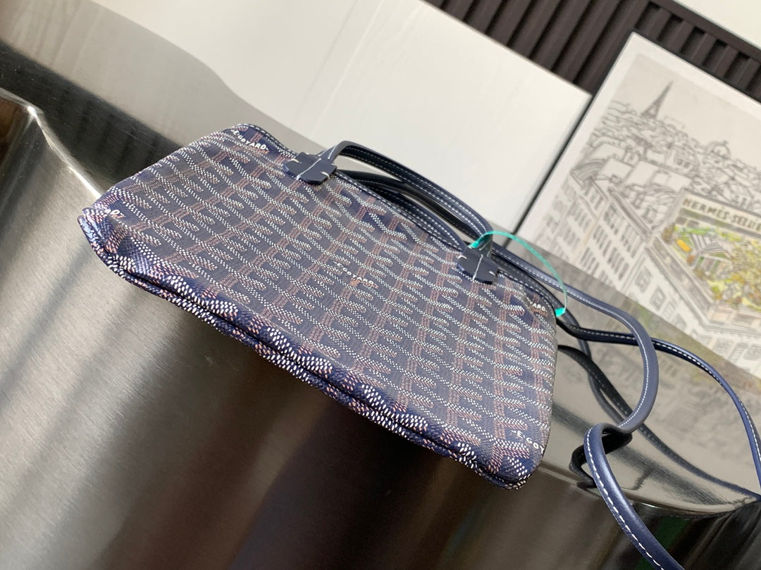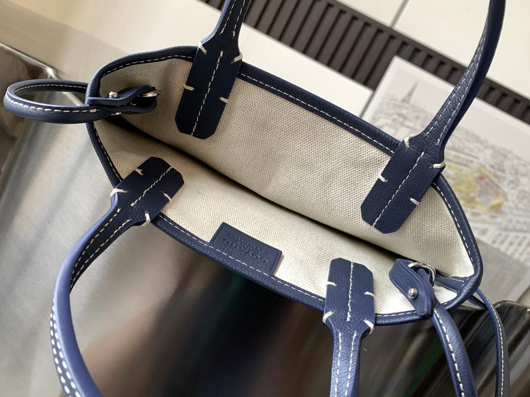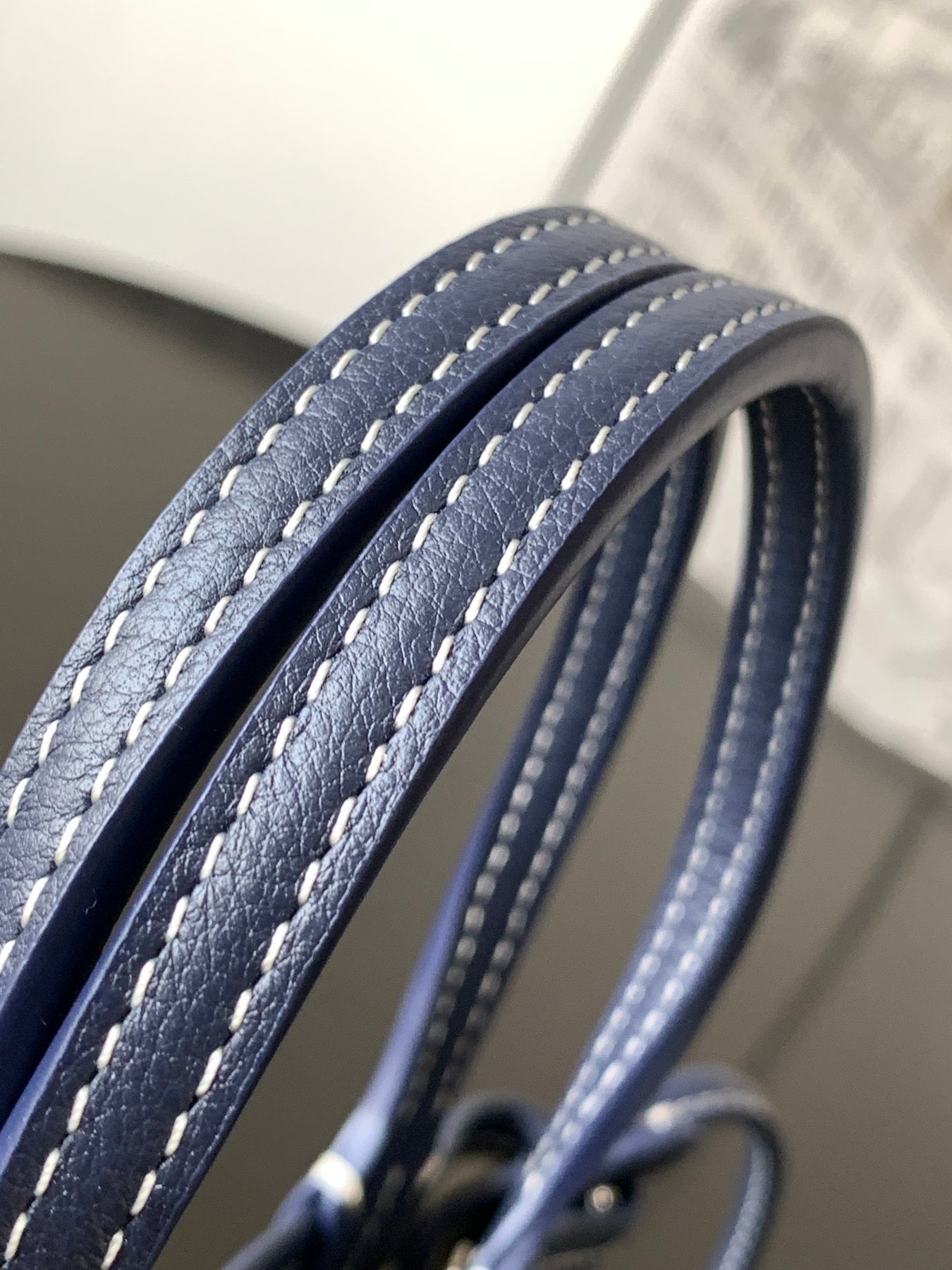 Introducing the POITIERS bag, a stylish addition to our iconic tote bag collection, which includes the SAINT LOUIS, ARTOIS, and ANJOU models. This mini, ultra-flat silhouette is perfectly sized for your essentials, such as a wallet, phone, or keys, combining chic design with practicality. Inspired by our archival pieces, the POITIERS bag features a detachable shoulder strap, allowing you to wear it as a handbag or a crossbody bag for versatile styling. Size: 21 cm x 1 cm x 24 cm. Explore timeless elegance with the POITIERS bag in Dark Blue.