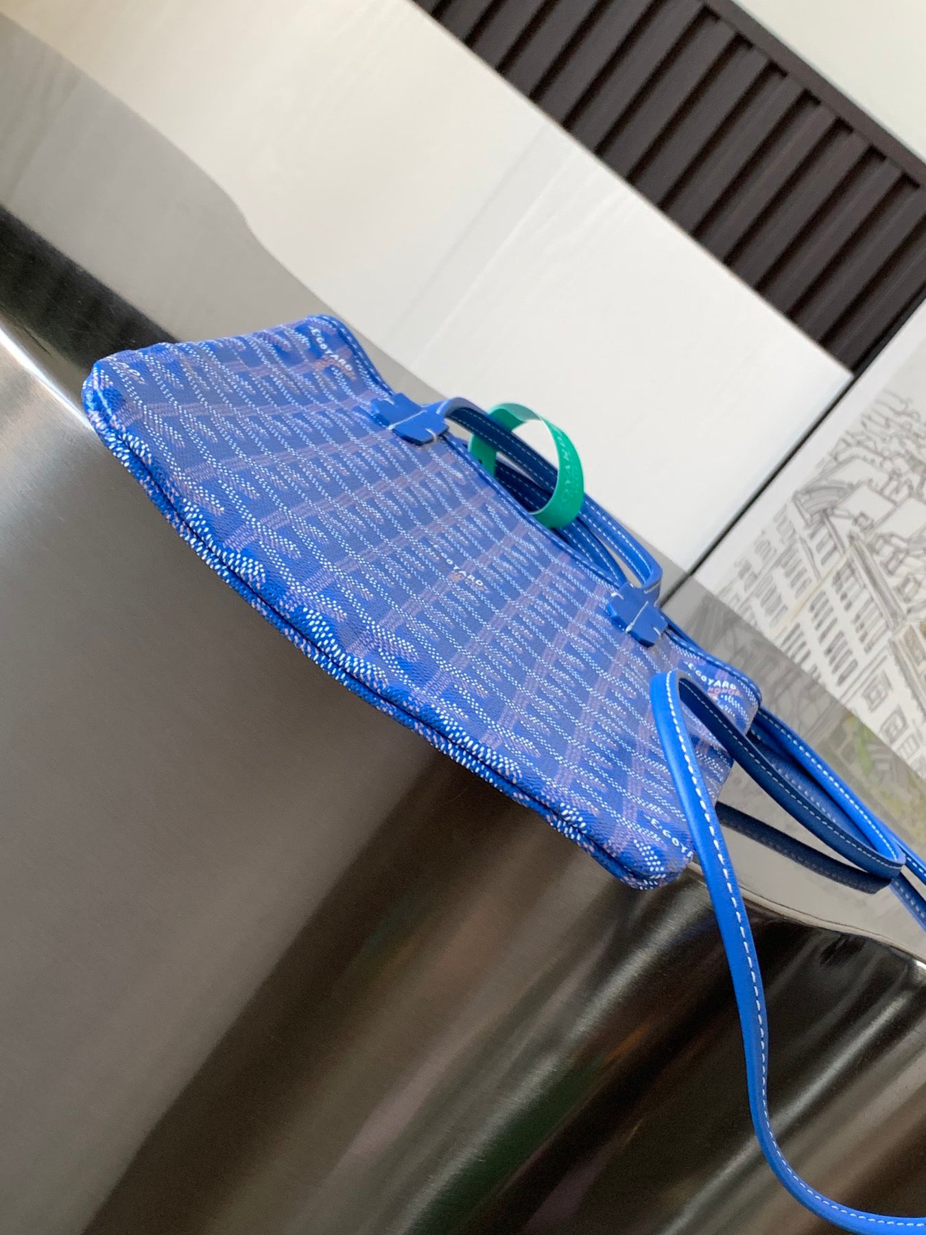 Inspired by our archival designs, the POITIERS bag features a detachable shoulder strap, allowing you to wear it as a handbag or a stylish crossbody. Measuring 21 cm x 1 cm x 24 cm, it combines elegance with functionality, making it the ideal accessory for any occasion. Elevate your style with the POITIERS bag in a refreshing sky blue.