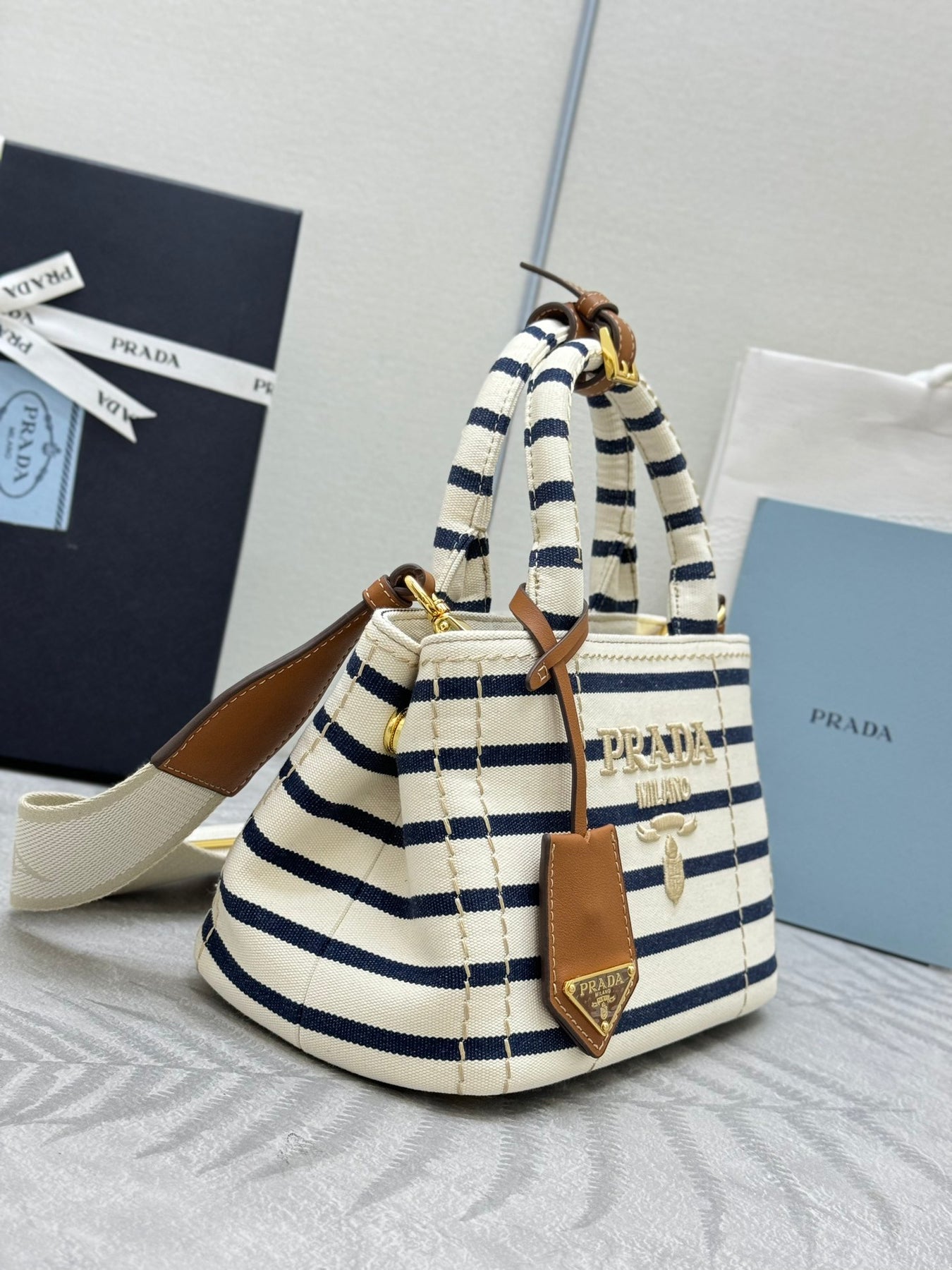 Prada Striped Cotton Canvas Mini Gardener Bag - Iconic Nautical Style