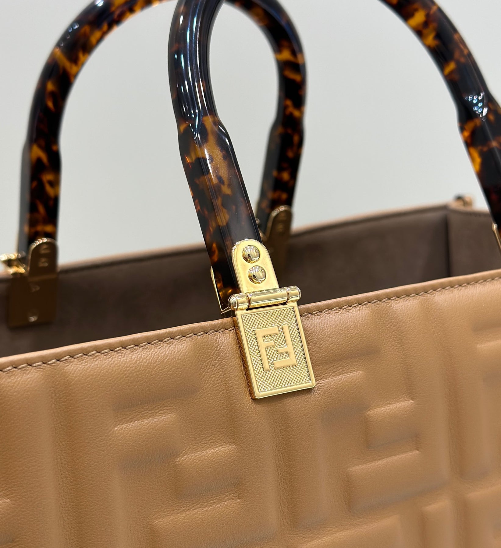 Premium Leather Embossed Tote Bag with Amber Handles