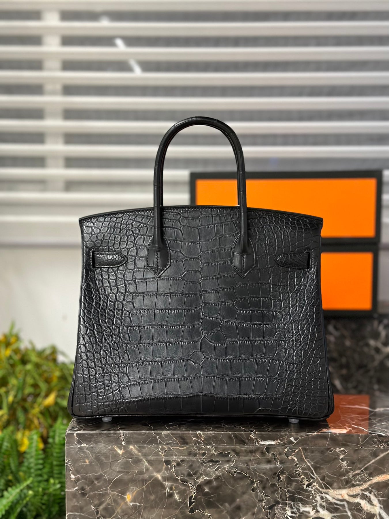 Premium Platinum 30 Black Silver Matte Leather Handbag